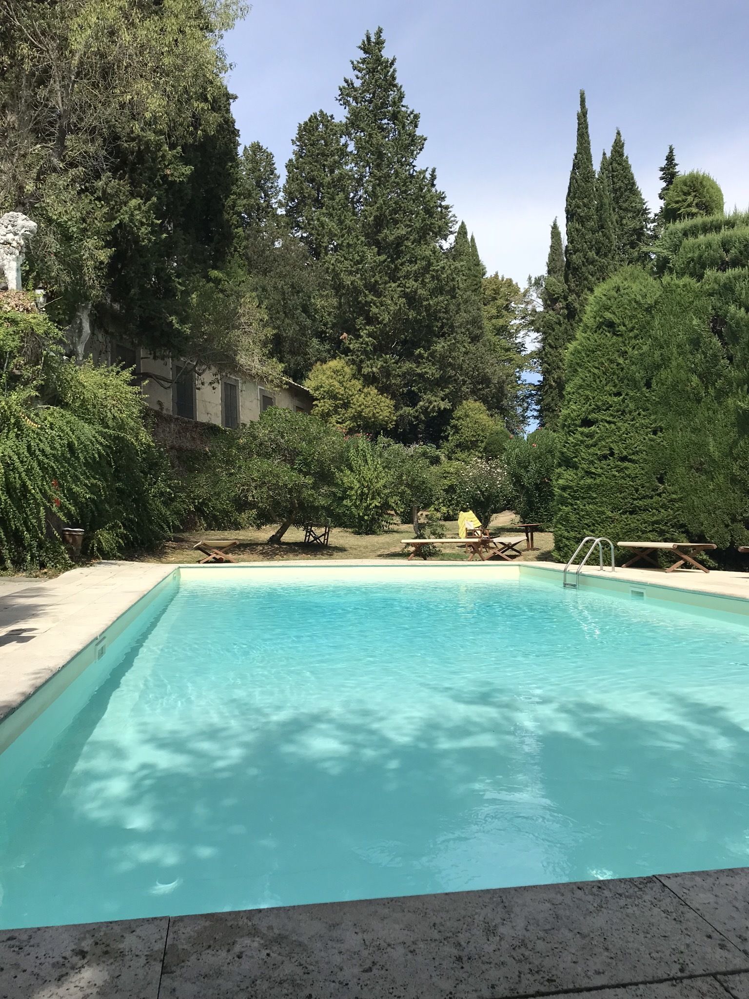 Beautiful and historical castle with spectacular views of the countryside around. Our accommodation was part of some buildings adjacent to the castle which had been very sympathetically decorated in a rustic shabby chic style, with lovely views from all sides. However, it was situatedin a shady spot which was a shame as we were unable to sit outside and enjoy the Tuscan sunshine. The amenities in the kitchen had also seen better days with a couple of the appliances perhaps needing to be renewed and utensils a bit thin on the ground. Lovely towels and bedding were supplied however and the bathrooms and bedrooms very nice. The staff in reception were very helpful and the grounds of the castle and the swimming pool were in a lovely setting. Just one major fly in the ointment - the weekend after we arrived a huge group of about 60 Swedish guests arrived who seem to think it was their right to take the whole place over. They told us that we were unable to use the pool as they had hired it for the weekend for themselves but as we were also paying guests and had not been told otherwise by the staff, we stayed in the pool but did in the end feel bullied out of it especially when they took the one sunbed that was available for us to use and put their things on it over the top of our things. That night and the following night they had a disco set up with very loud music that went on until well after 1 in the morning and could be heard from where our accommodation was. They also had a huge dinner in the courtyard of the castle and when we wanted to get to the restaurant the gates were locked around the outside and the only way through was by walking through their dinner and speeches and we didn’t feel that we wanted to do that. Thankfully they had all left by Monday morning and we were able to continue enjoying our holiday. We do feel that if the Castle wishes to take these large parties of people, then in fairness to other guests, they should close the rest of the Castle and not take any bookings for other people until the large group has departed. We did hear other guests who were staying near us complaining about the loud music to each other, so we know it wasn’t just us. EasyReserve as a company dealt with our booking well, although when I emailed them a couple of times with a couple of queries they were very slow in replying, so one time I telephoned using the number for the local rate, to find that I had been charged £7! If I had had a reply to my email I would not have got this charge. With the moans over, I would say that Castle Montegufoni is a lovely place to stay in Tuscany with a couple of of small villages nearby for basic shopping needs, and not too far from Pisa airport or Florence.