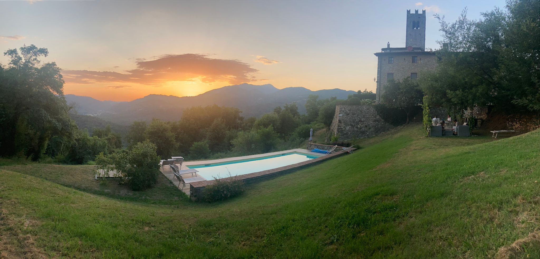 [English translation courtesy of Easy Reserve] Beautiful house, spacious and complete + tastefully decorated. Unique, quiet location on a mountain with fantastic views and lovely pool. Owner Elisa lives next to the house and is nice and helpful. We rented the whole house for 10 people and absolutely recommend it that way. Instead of air conditioning there are fans, the upstairs bedrooms did get very hot (around 28 degrees in July). A car is essential and the road to the house is challenging.