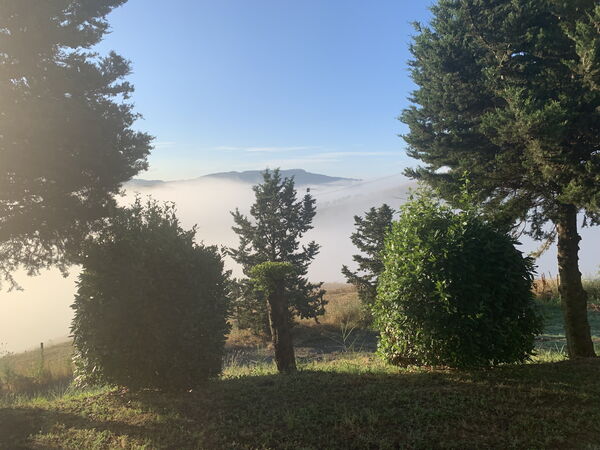 Maison bien équipée (bonne literie) avec terrasses et une vue incroyable au milieu des vignes, cypres et végétation.