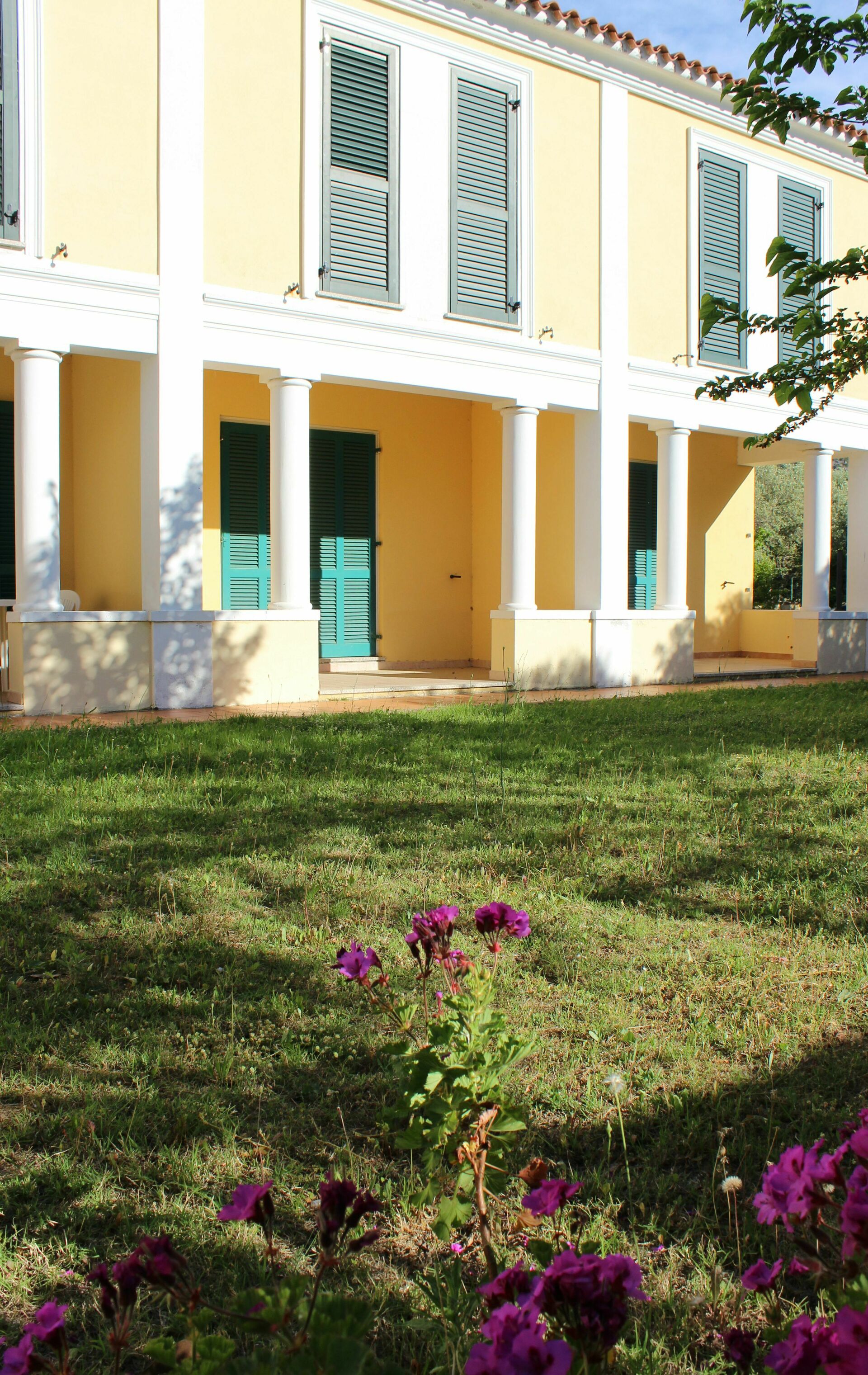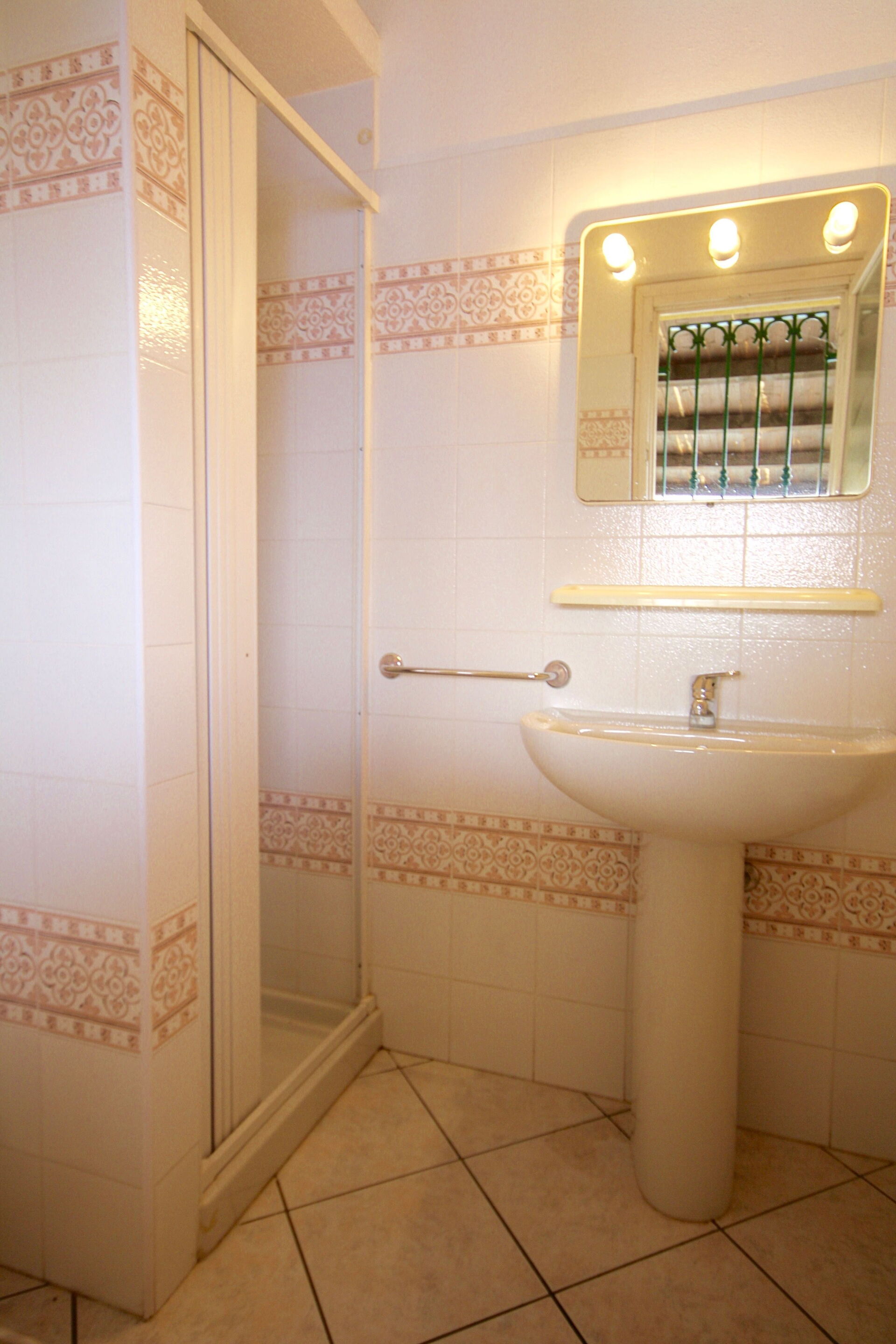 en el dormitorio hay una cama doble y dos camas individuales, cuarto de baño, pequeño patio y plaza de aparcamiento.