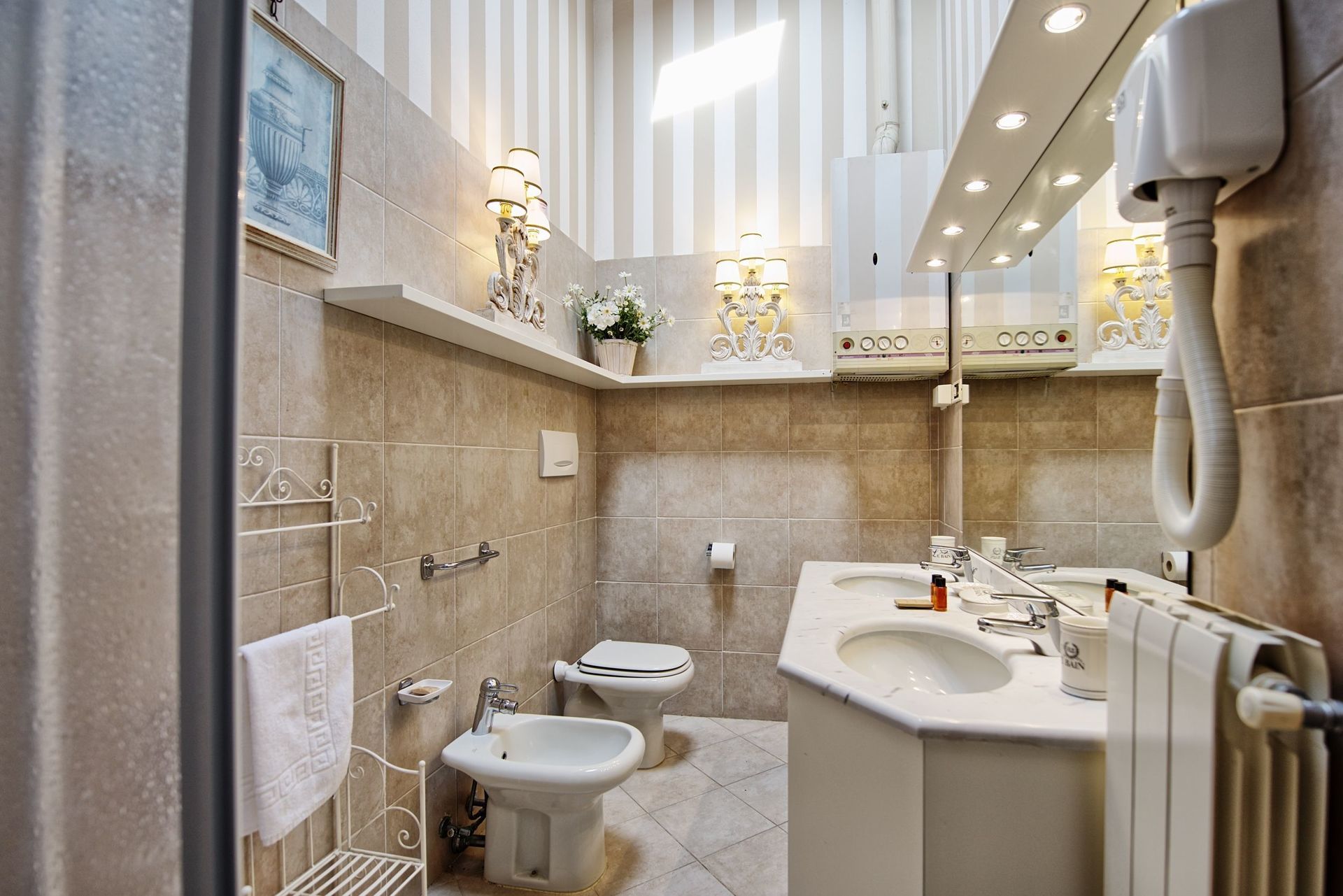 First floor: living area (ceiling fan) with sofa bed (double size) and dining area with kitchenette (dishwasher, oven, fridge-freezer, espresso maker), twin bedroom (ceiling fan), bathroom with shower, double bedroom (with air conditioning).