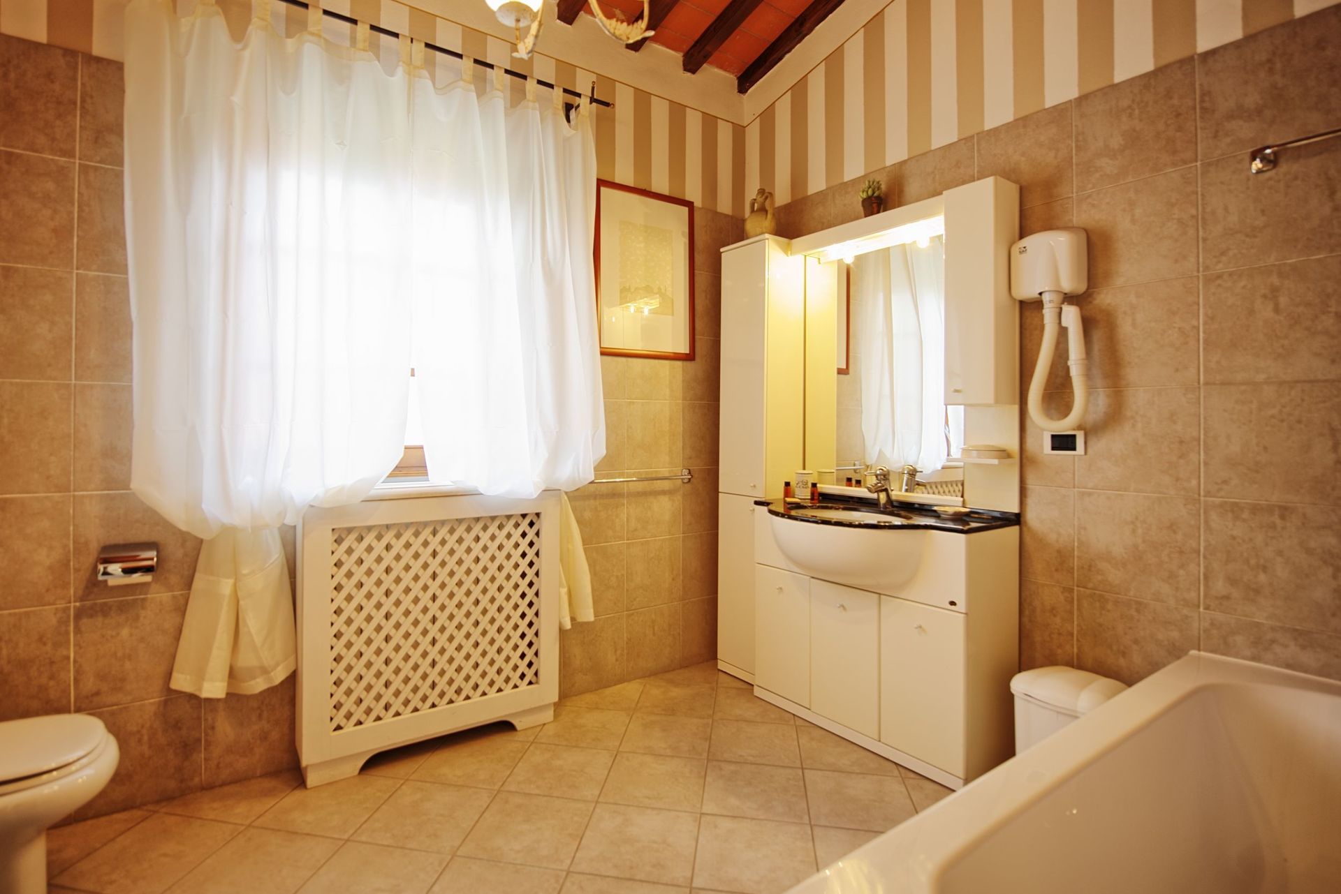 Raised ground floor (6 steps): living area with with sofa bed (double size), dining area and kitchenette (oven, fridge-freezer, dishwasher, espresso maker), twin bedroom (ceiling fan), double bedroom (ceiling fan), bathroom with bathtub.