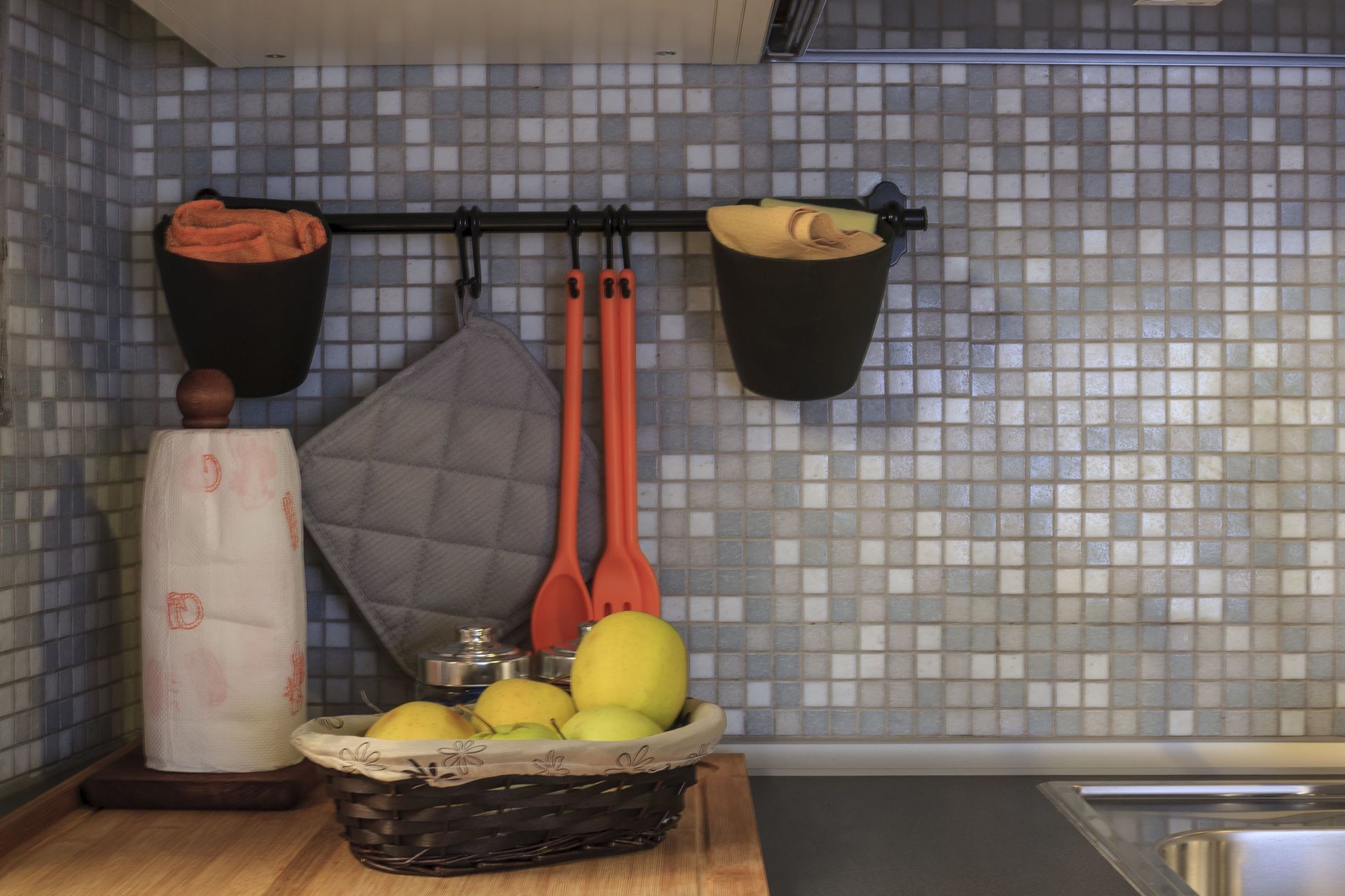 Una de las dos camas dobles se encuentra en el espacio abierto, dividido de la cocina por una cortina.