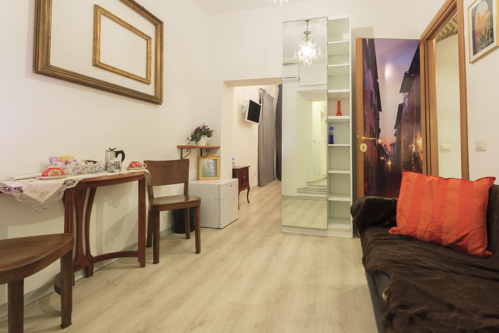 Espacio abierto: mesa de comedor, cama doble, WIFI internet, aire acondicionado, frigorífico, cocina de gas, plancha, máquina de café italiana.