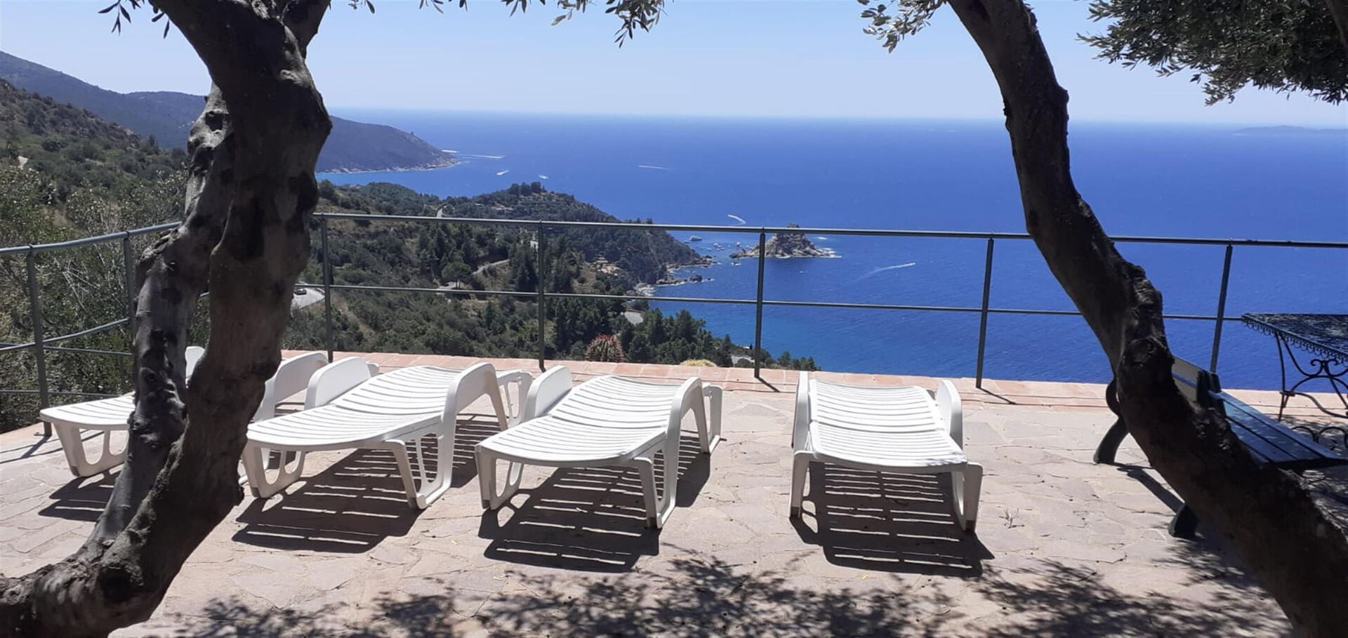 La villa está a unos 200 metros sobre el nivel del mar. Las calas de roca/gu ijarros y las de arena están a 3,5 km y se pueden alcanzar fácilmente en coche. También es posible llegar a pie, y el descenso no presenta problemas, pero el ascenso es un poco más laborioso.