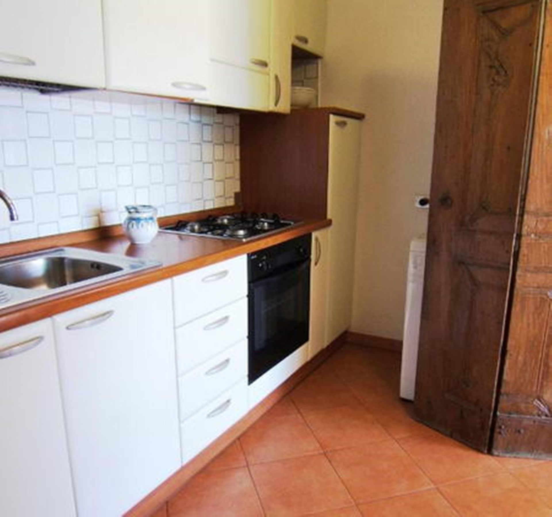 Cocina-salón: cocina bien equipada, mesa de comedor, lavavajillas, congelador, cocina de gas, chimenea, sofá cama de matrimonio, aire acondicionado, tv vía satélite, televisión, acceso al jardín.