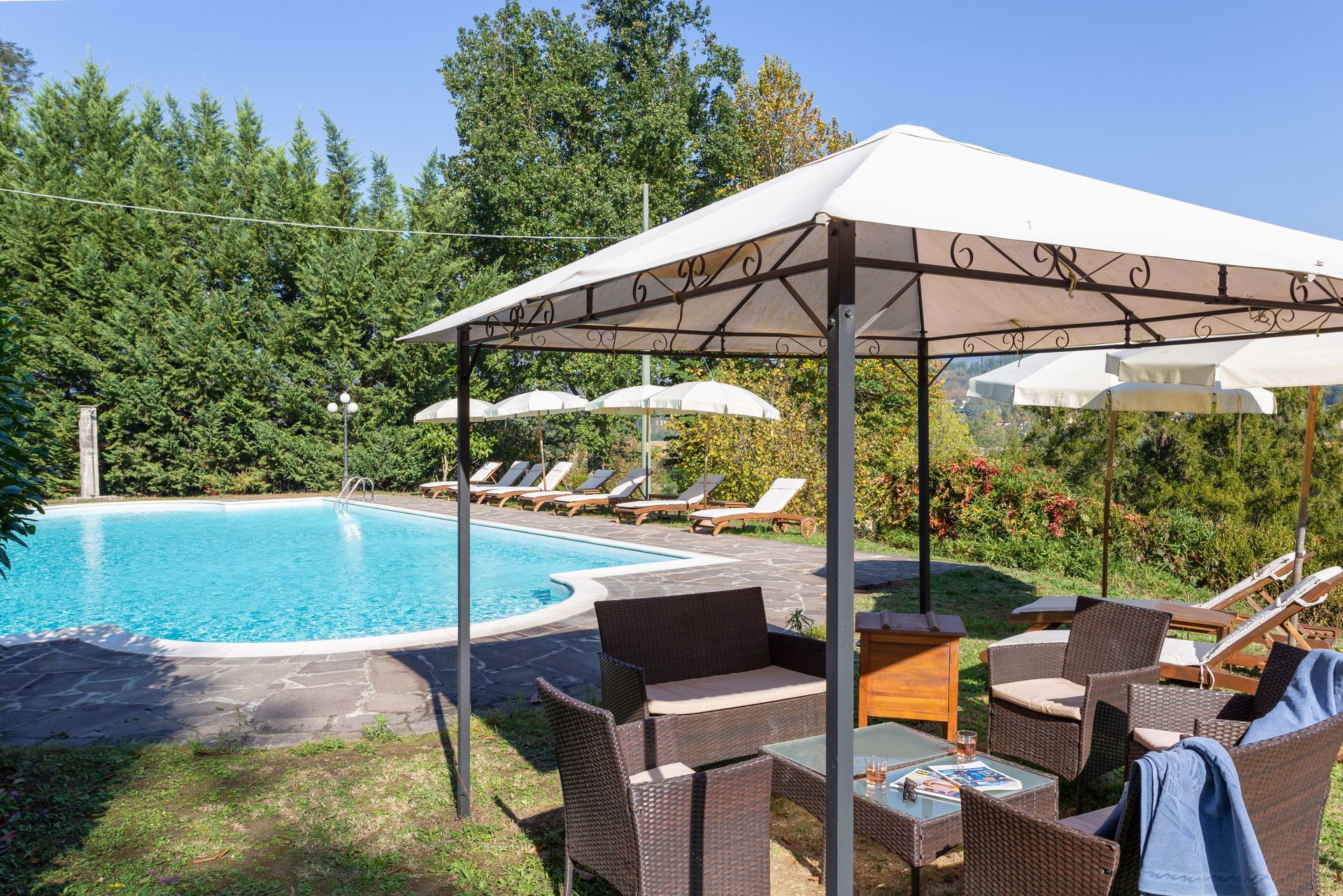 Tras llegar a Villa Francesca encontraras una estupenda propiedad limpia y acogedora con vista sobre las colinas ideal para unas vacaciones tranquilas en Toscana. Después un día pasado visitando museos, disfrute de una buena copa de vino con sus amigos y su familia al lado de la piscina - lo mejor para descansar después de un largo día. Otras comodidades disponibles al aire libre son parrilla y patio. Comer con familia y amigos es un aspecto de gran importancia en la cultura toscana. Aproveche de una cocina bien equipada para preparar comidas utilizando productos locales durante sus vacaciones. La cocina incluye cafetera, microondas, toaster, estufas y nevera, además de, muchas vajillas y cubiertos para hasta 20 personas. Come 'al fresco' como un local, la veranda es el lugar ideal para disfrutar de la comida, la compañía y el hermoso clima toscano.