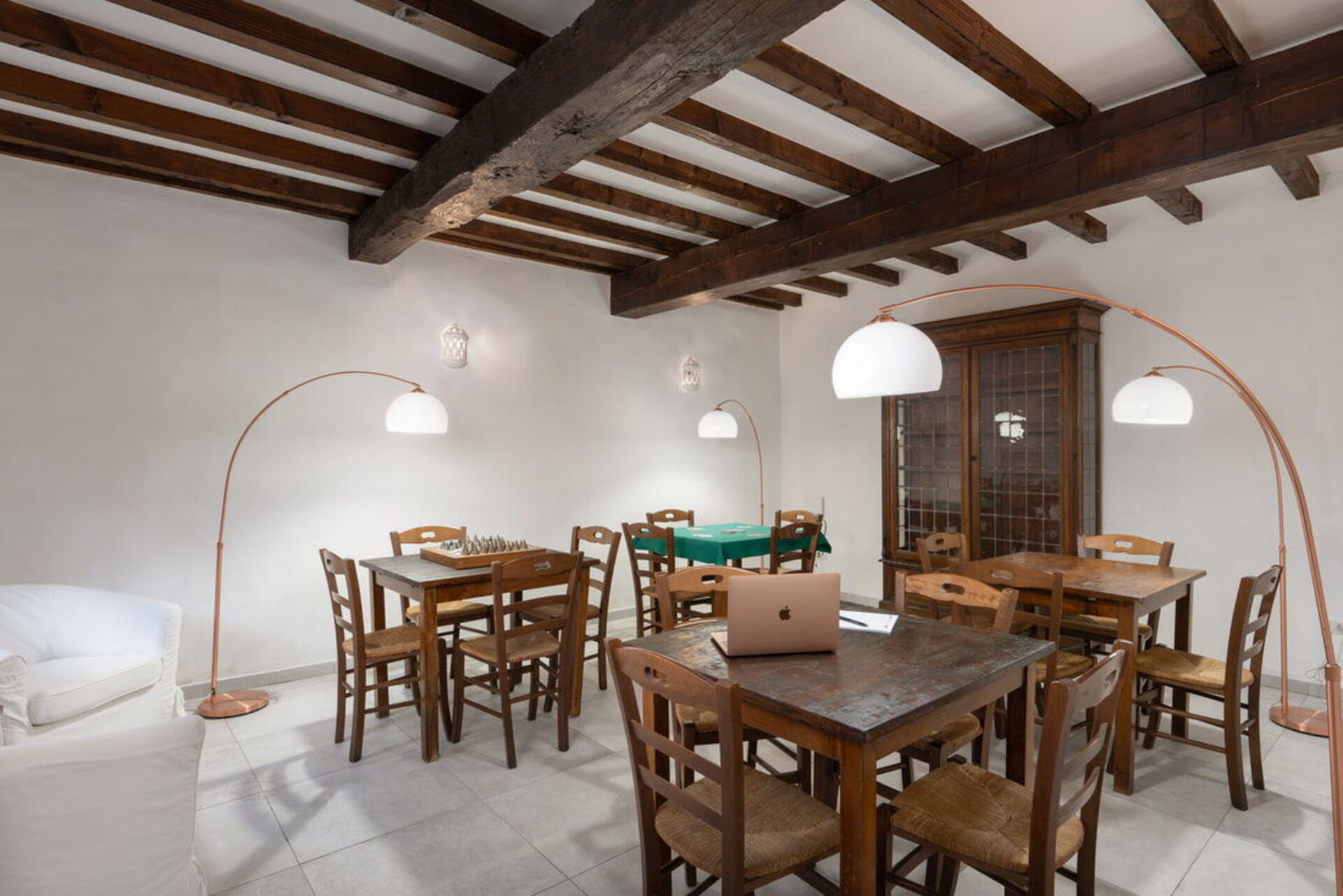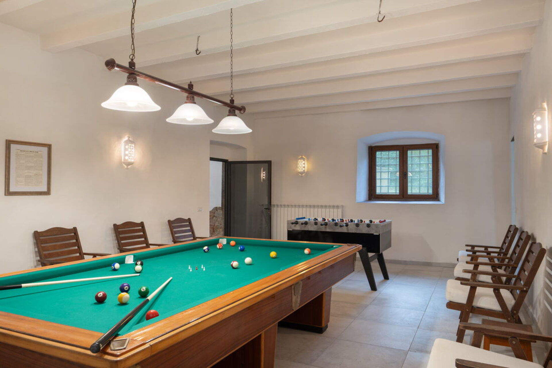 Habitación 1: mesa de billar, futbolín, diez sillones.