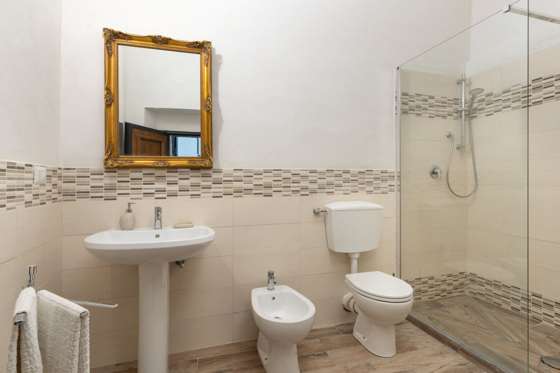 Baño: lavabo, baño, bidé, ducha.