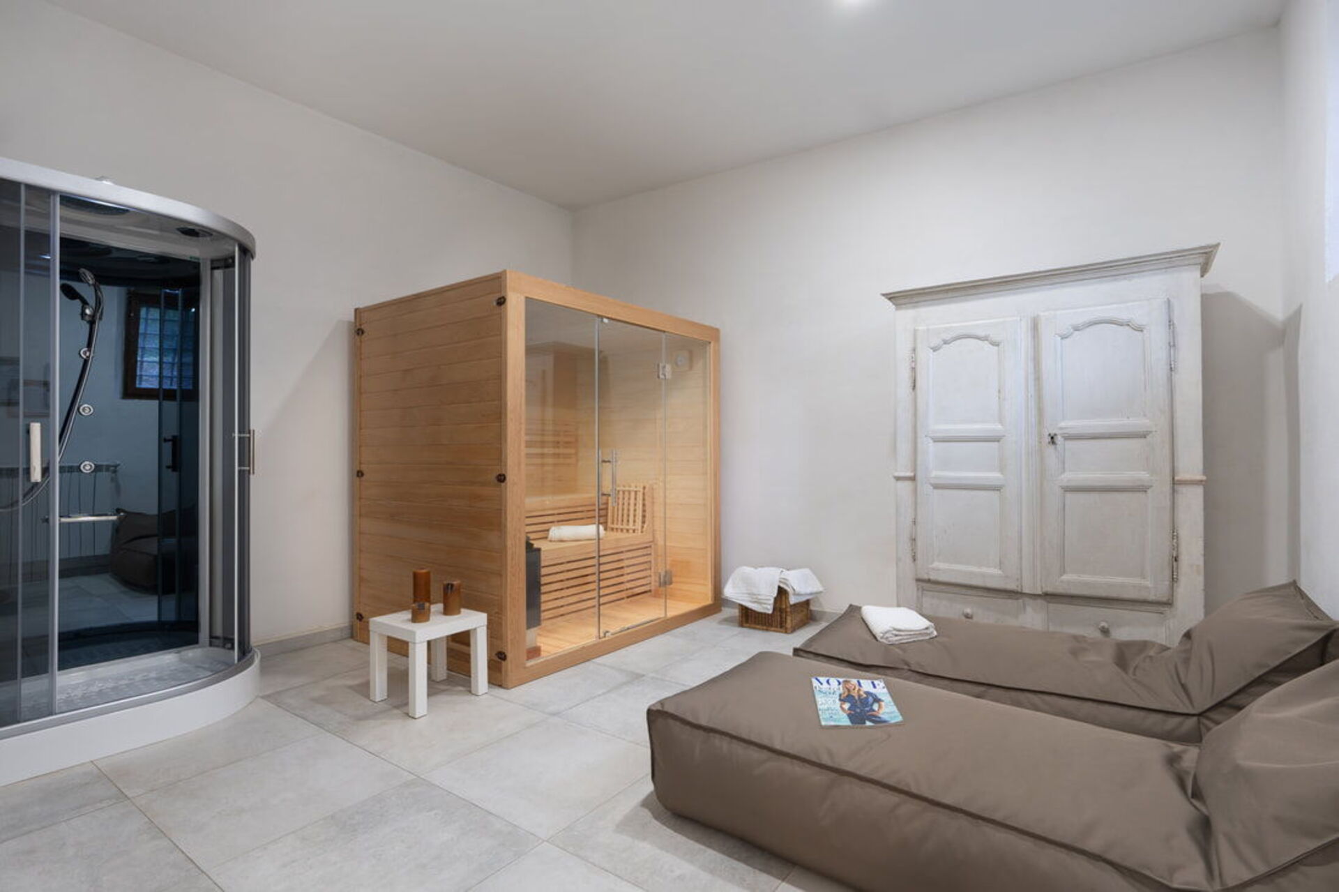 SPA: ducha, sauna, dos tumbonas.