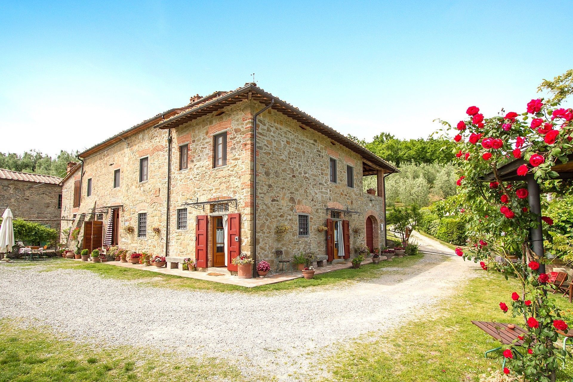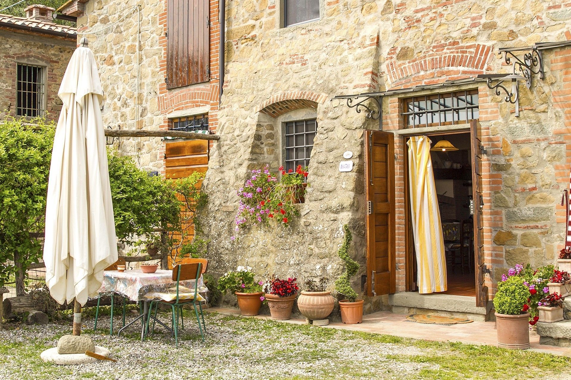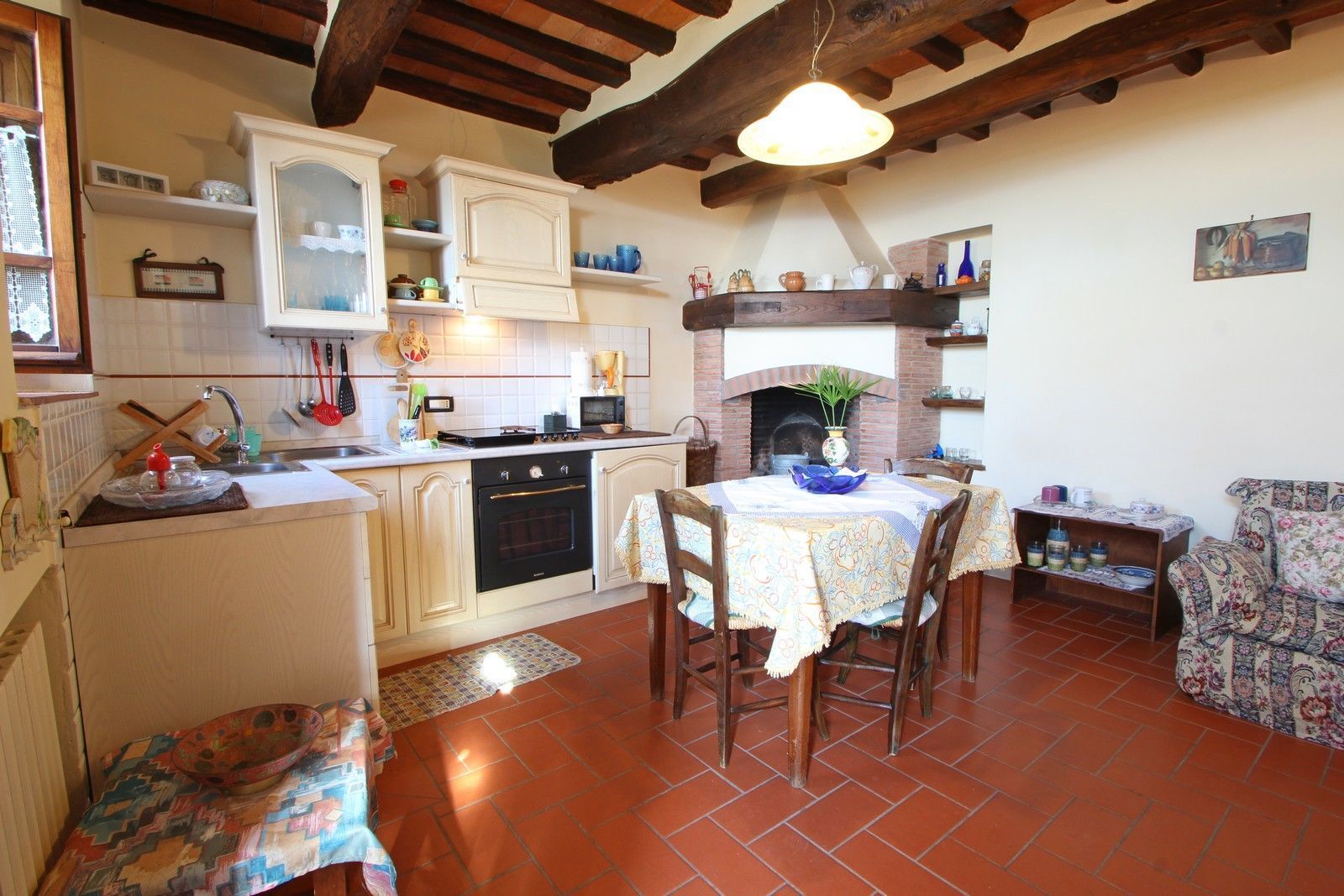 From the outside entrance you enter the living room with fireplace, bedroom with double bed and possibility to add a single bed, a bathroom with shower. Tuscan terracotta floors and wooden beam ceilings.