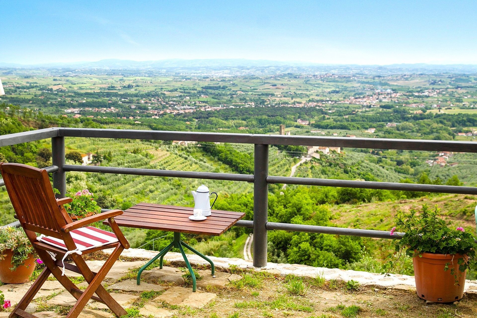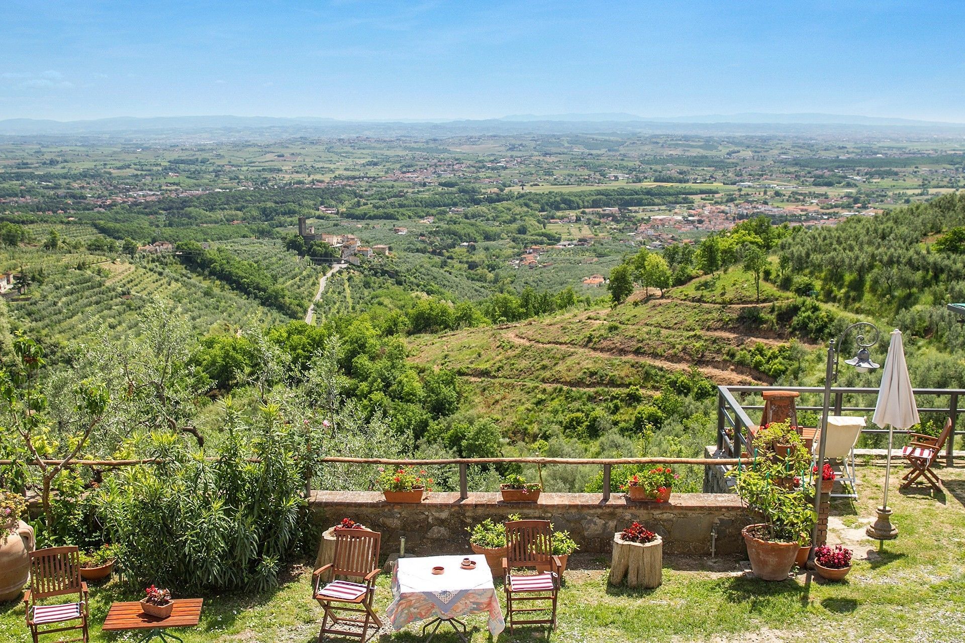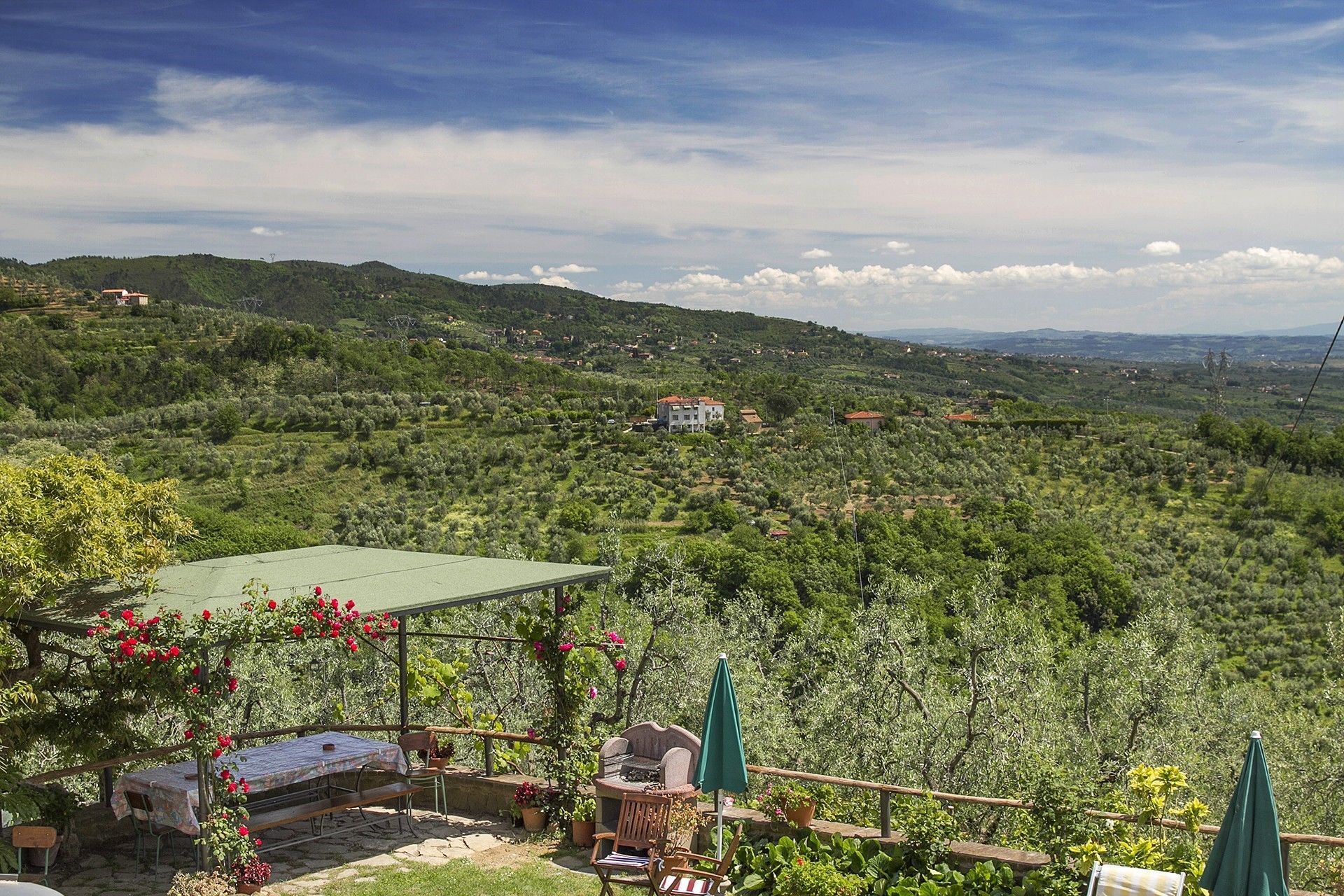 From the outside entrance you enter the living room with fireplace, bedroom with double bed and possibility to add a single bed, a bathroom with shower. Tuscan terracotta floors and wooden beam ceilings.