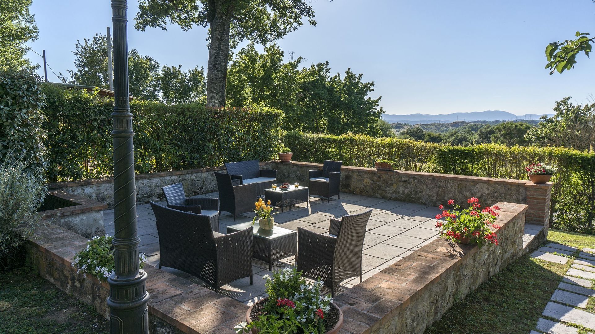 Tras llegar encontrará una hermosa propiedad limpia y acogedora con vista las colinas ideal para unas vacaciones relajadas en Toscana. Después un día pasado haciendo compras, disfrute de una buena copa de vino con sus amigos y su familia al lado de la piscina - lo mejor para relajarse después de un largo día. Al aire libre encontrará patio de recreo y barbacoa. Comer con familia y amigos es un aspecto de gran importancia en la cultura toscana. Aproveche de una cocina bien equipada para preparar comidas utilizando productos locales durante sus vacaciones. La cocina incluye cafetera, microondas, toaster y nevera, además de, muchas vajillas y cubiertos para hasta 12 personas. Come 'al fresco' como un local, el jardín es el lugar perfecta para disfrutar de la comida, la compañía y el estupendo clima toscano.