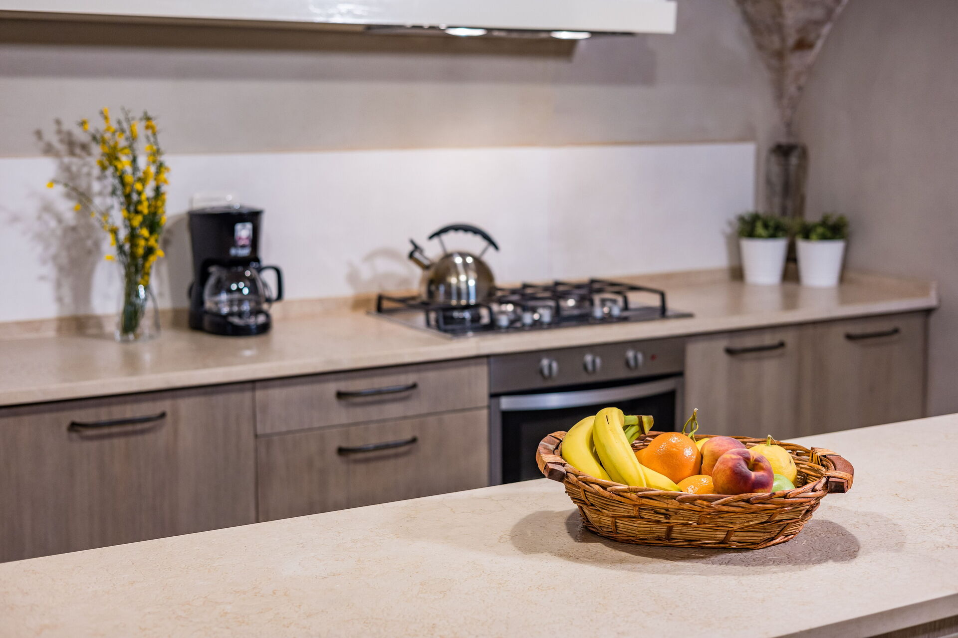 Cocina-salón: cocina bien equipada, mesa de comedor, lavavajillas, frigorífico, congelador, microondas, cocina de gas, horno, tostadora, máquina de café italiana, máquina de café americana, WIFI internet, aire acondicionado, tv vía satélite.
