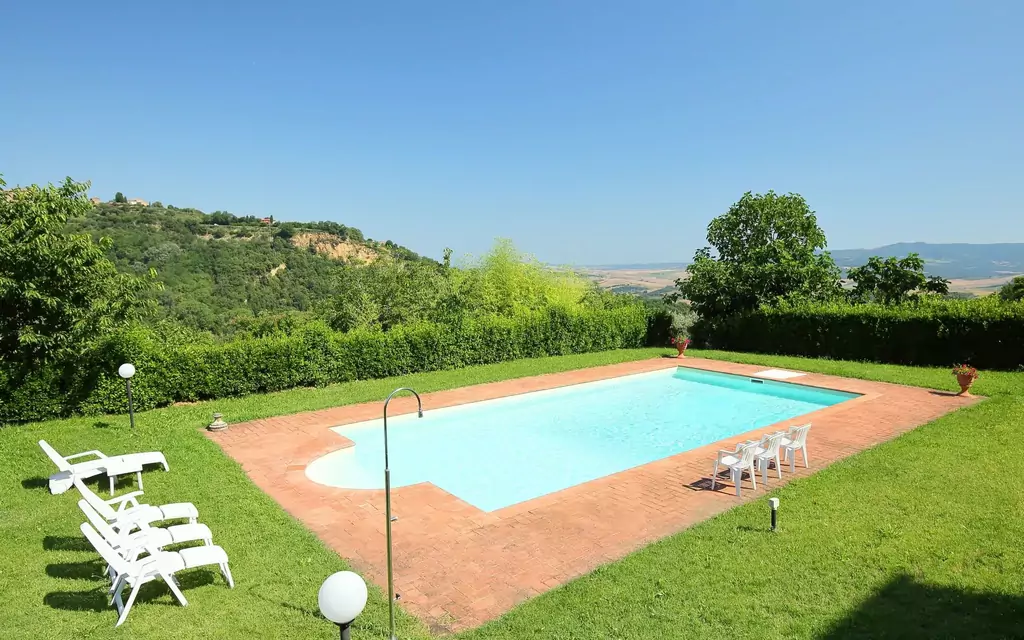 Esta casa, apenas acabada de reestructurar, constituye la parte más antigua del edificio, probablemente en otro tiempo casa señorial o "casino di caccia". Incluso algunos trazos de la decoración y pinturas han sido sacados a la luz y restaurados en la zona del salón-comedor, utilizado antiguamente como establo, testimoniando que tuvo originalemente una función más noble. La fecha de 1850 que hay en en interior reporta probablemente a la época de la transformación del edificio en rural. Además de está unidad están presentes 2 apartamentos, uno del guarda y uno del propietario, que ocupa y usa la piscina ocasionalmente. Granja grande "Podere Valle di Sotto", muy antigua. A 2 km del centro de Volterra, a 30 km del centro de San Gimignano, a 40 km del centro de Pisa, lugar tranquilo en una colina, en el campo. Privado: jardín, piscina (6 x 12 m, 120 - 200 cm de profundidad, Disponible por temporada: 15.May. - 27.Sep.) con escalera interior y sistema de limpieza por electrolysis de sal. Tenis de mesa, muebles de jardín, barbacoa, parque infantil. En el inmueble: con TV, acceso a internet, lavadora. Posibilidad de limpieza (extra). Acceso (camino de tierra). Aparcamiento junto a la casa. Tienda 2 km, restaurante 2 km, parada autobús 2 km, estación de tren 10 km.