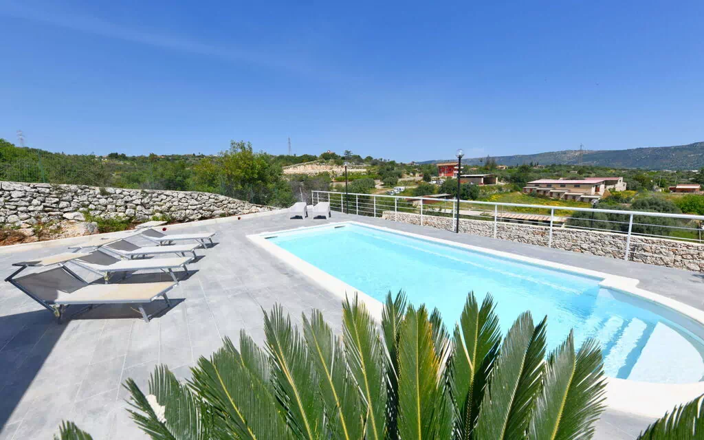 Villa "Panorama", 200 m s.n. m.. A 4 km del centro de Floridia, a 16 km del centro de Siracusa, lugar tranquilo, soleado en una pendiente, a 17 km del mar, orientación este. Privado: terreno 1'800 m2 (vallada), piscina (8 x 4 m, 130 cm de profundidad, Disponible por temporada: 01.Abr. - 31.Oct.). Ducha exterior, muebles de jardín, barbacoa, mantenimiento de la piscina a través del propietario/jardinero. Acceso brusco durante 200 m. Supermercado 1.5 km, restaurante 1.5 km, bar 1.5 km, parada autobús 4 km, estación de tren "Siracusa" 17 km, playa de arena "Fontane Bianche" 22 km. Atracciones en los alrededores: Necropoli di Pantalica 38 km, Noto 45 km, Marzamemi 54 km, Catania 65 km, Modica 68 km, Ragusa 98 km. Zonas de esquí populares fácilmente accesibles: Rifugio Sapienza Escursioni per l'Etna 97 km. Lagos conocidos fácilmente accesibles: Riserva Naturale Laghetti del Cassibile 38 m. Zona de senderismo Riserva Naturale Faunistica Vendicari 48 km. A tener en cuenta: coche recomendable.