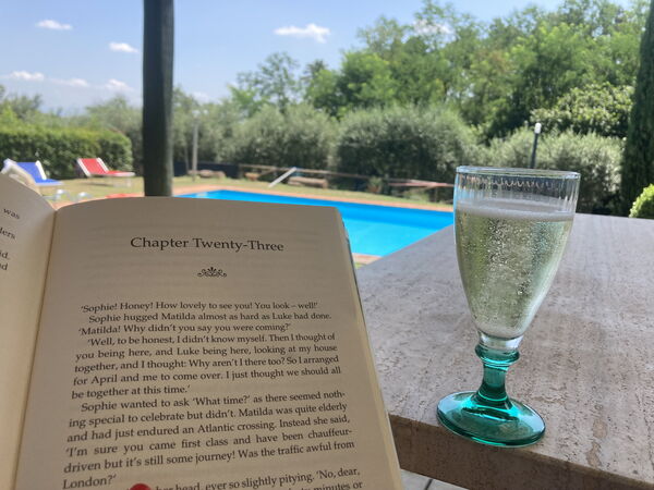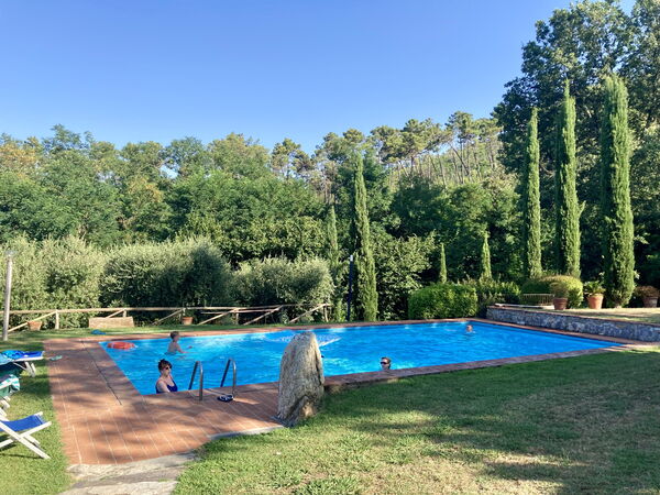 This is a lovely villa, where a group of 5 adults and 1 child spent a week in the sunshine. The villa and pool were better than we expected and the owner was helpful and attentive. The villa was cool and accommodating and the pool was large and clean. We would have liked to stay all summer! Through the booking agents we arranged for a chef to cook a meal for us one evening. This was the highlight of the week. In the large garden there was a pizza oven which we used for perfecting our pizza making techniques. We also visited the goats and chickens which were in a separate part of the garden. Would recommend this villa for an authentic Tuscan experience. The villa was cleaned for us twice during our stay and on our departure. There were Hoopa birds flying around. Lucca is a very interesting place to visit with restaurants, icecream shops and bike hire all available.