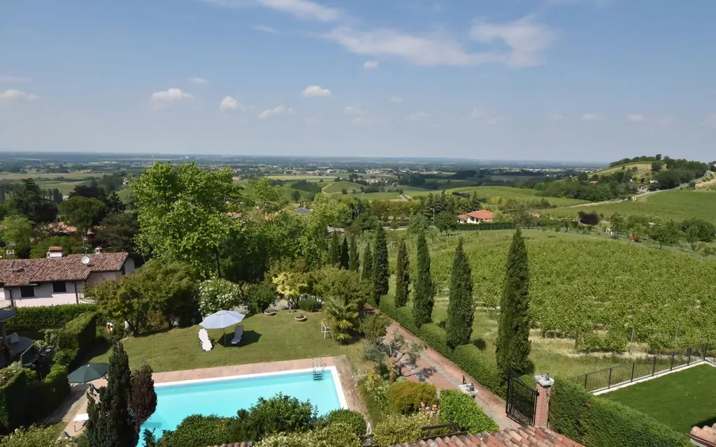 Villa "Ca' del Vento", 300 m s.n. m., amplia, bonita, individual del siglo 19°, reformada, rodeada de campos y viñedos. En el aldea Orzola, a 1 km del centro de Zenevredo, a 24 km del centro de Pavia, a 70 km del centro de Milano, lugar soleado en una colina, area residencial (villas), a 120 km del mar, en el campo. Privado: terreno 2'000 m2, jardín en diferentes niveles (no está vallado) con césped y árboles, terreno con hierba, piscina occulta desde el exterior (11 x 5 m, 150 - 300 cm de profundidad, Disponible por temporada: 16.May. - 15.Oct.). Ducha exterior, porche, muebles de jardín, barbacoa, mantenimiento de la piscina a través del propietario/jardinero. Acceso durante 50 m (camino de tierra). Aparcamiento (para 4 coches) junto a la casa. Supermercado 7 km, restaurante 1.8 km, bar 1.2 km, estación de tren "Stradella" 3 km, piscina termal "Salice Terme" 42 km. Campo de golf (18 hoyos) 27 km. A tener en cuenta: adecuado para familias. El propietario no acepta grupos de adolescentes/jóvenes.