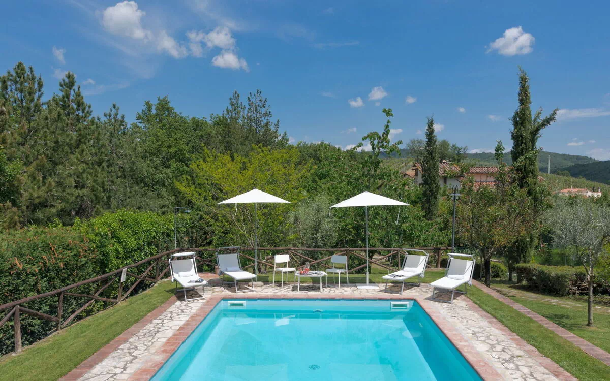 Casa unifamiliar "Villa del Poggio", muy bonita, agradable, rústica, rodeada de árboles y viñedos. A 2 km del centro de Radda in Chianti, a 12 km del centro de Castellina in Chianti, a 23 km del centro de Montevarchi, en un barrio residencial, en el campo. Privado: jardín bonito, cuidado 5'000 m2 (vallado) con césped y árboles, terreno con árboles frutales, terreno con hierba, piscina (12 x 5 m, Disponible por temporada: 02.May. - 14.Oct.). Tenis de mesa, cenador, terraza, muebles de jardín. A disposición: bicicletas (6). Aparcamiento (para 3 coches) en el mismo terreno. Tienda de comestibles 2 km, supermercado 3 km, parada autobús 2 km, estación de tren "Montevarchi" 23 km, piscina 12 km, piscina cubierta 23 km. A tener en cuenta: coche recomendable. Posibilidad de reservar cursos de cocina bajo petición. El propietario vive en el mismo terreno.