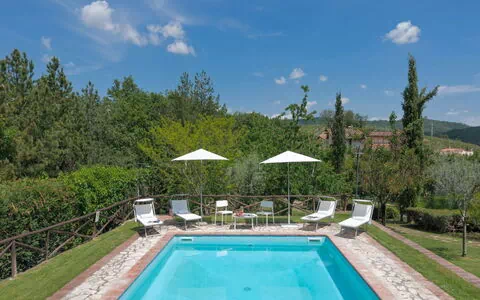 "Villa del Poggio", casa 4 estancias 95 m2 en 2 plantas. Con mobiliario bonito y de buen gusto: salón-dormitorio con 1 sofá-cama doble, chimenea, TV satélite, radio, CD y DVD. Salida a la terraza. 1 dorm. con 1 cama de matrimonio (160 cm), ducha/bidet/WC. Salida al jardín. 1 dorm. con 2 camas y ducha/WC. Salida al jardín. Cocina abierta (horno, lavavajillas, 5 fuegos, tostadora, hervidor de agua eléctrico, microondas, congelador, cafetera eléctrica) con mesa de comedor. Salida al jardín. Planta superior: 1 dorm., abuhardillado con 1 cama de matrimonio (160 cm). Ducha/WC. Calefacción de gas, aire acondicionado. Mobiliario confortable de estilo rural. 2 terrazas, cenador. Muebles de terraza, barbacoa, tumbonas, trastero. Vista bonita al jardín, al paisaje y al bosque. El alojamiento dispone de: lavadora, caja fuerte, plancha, mosquitera, trona, cuna. Internet (Wifi, gratis). A tener en cuenta: apartamento para no fumadores. Permitido máximo 2 mascotas pequeñas / perros. IT052023C2ZT7IXE8D