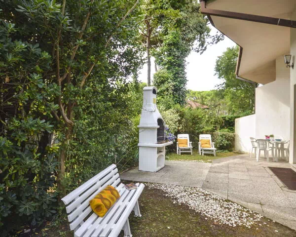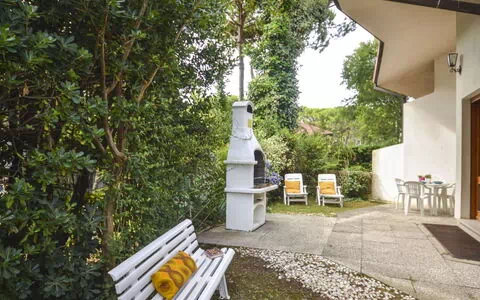 El patio ofrece un espacio exterior agradable para descansar y disfrutar del clima cálido italiano. La playa de arena se encuentra a 700 metros de la propiedad. Durante la estancia, se incluye un servicio de playa desde aproximadamente principios de mayo hasta mediados de septiembre, durante el cual se proporcionan 1 tumbona, 1 hamaca y 1 sombrilla por unidad de alojamiento.