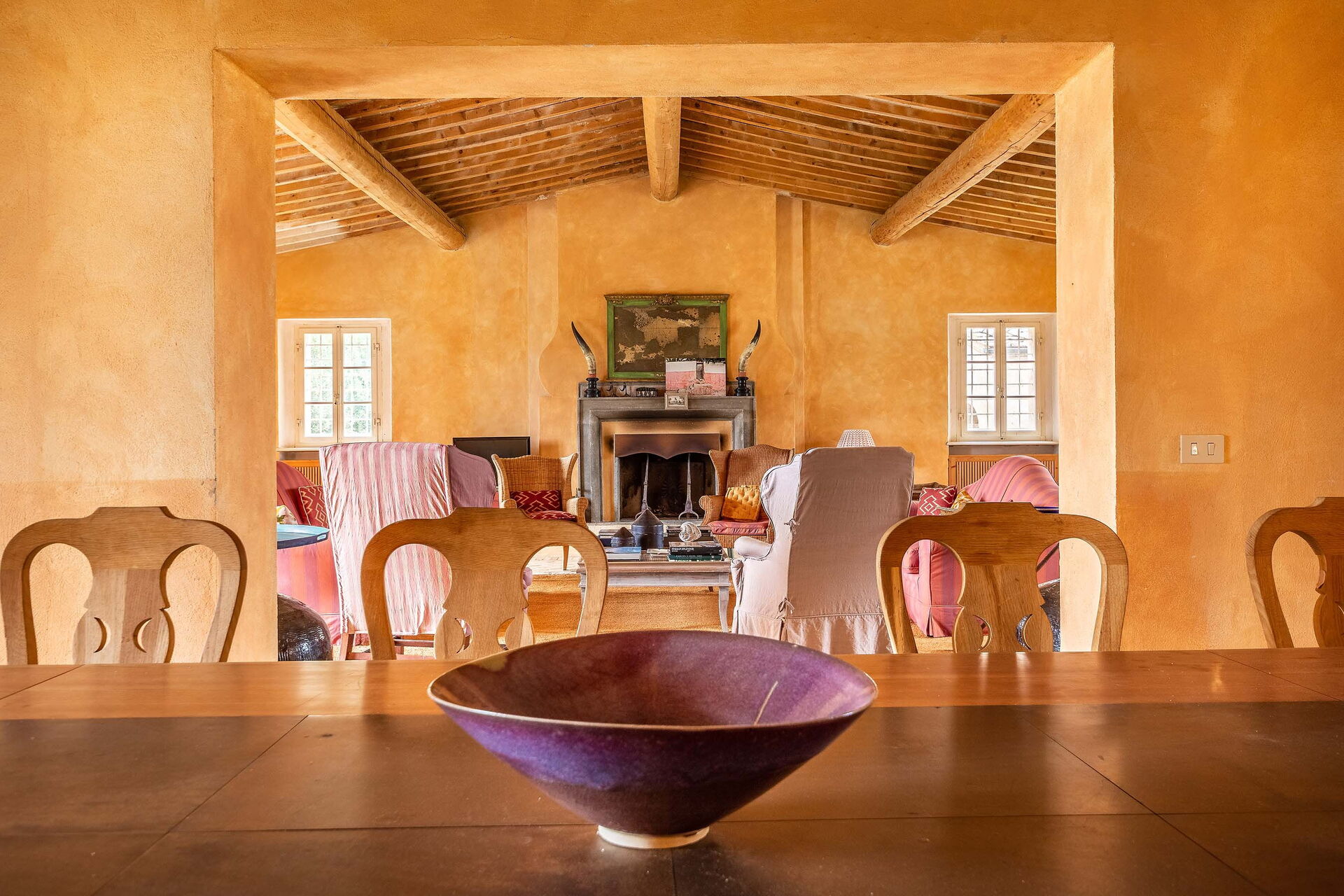 Comedor: mesa de comedor (gente: 16), WIFI internet, chimenea, acceso al jardín, acceso a la terraza.