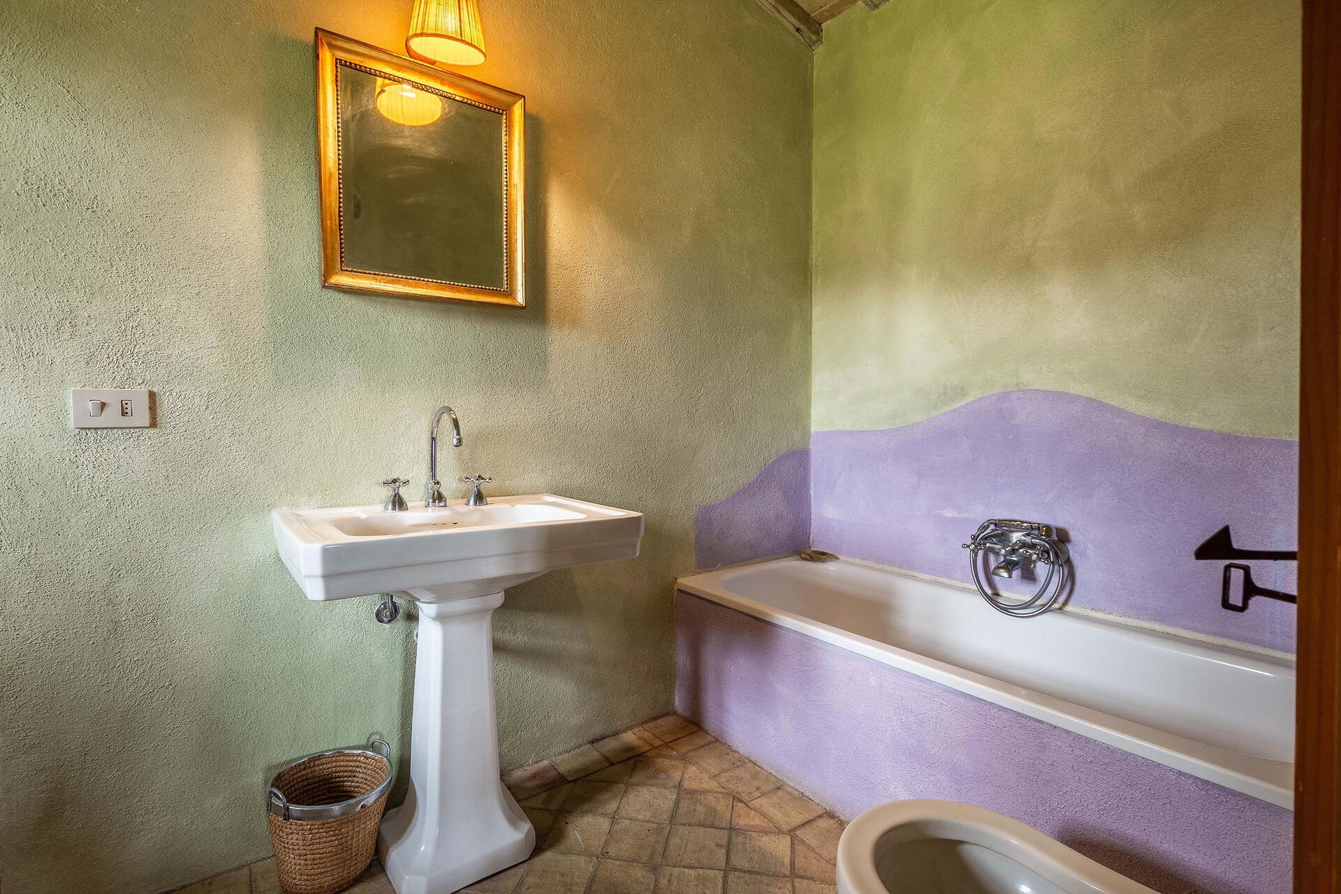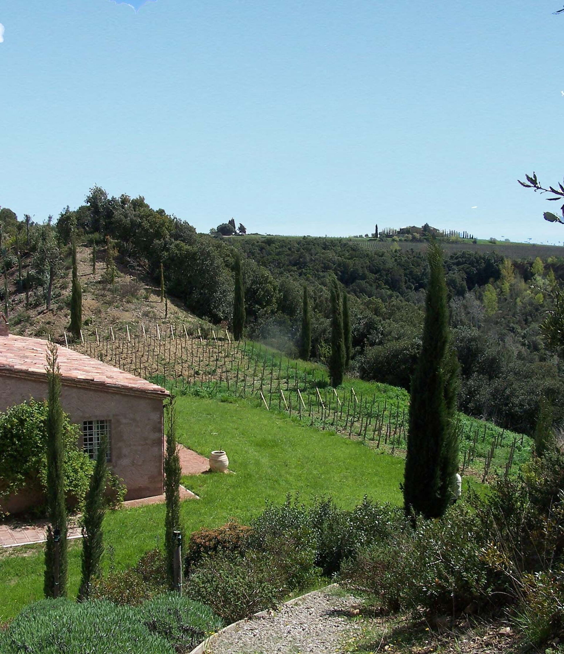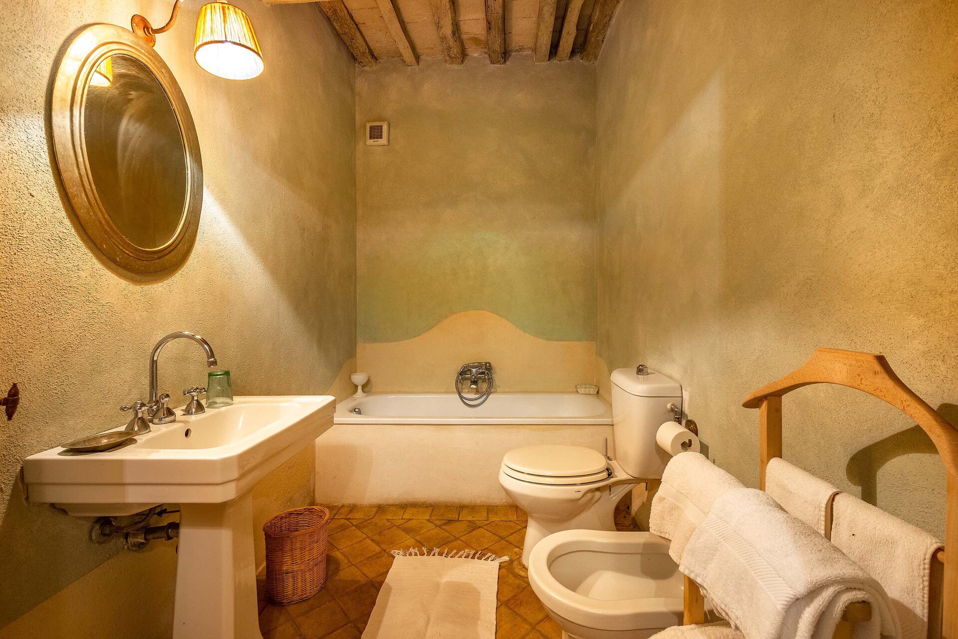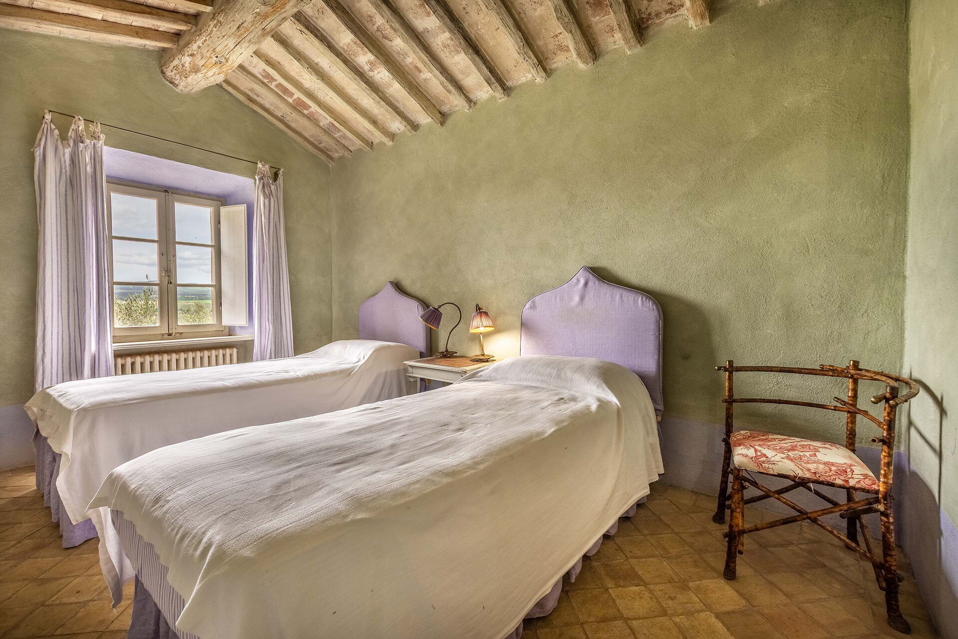The views from the house are outstanding taking in the Val d’Orcia and Crete Senesi, considered by many as the most beautiful areas of Tuscany. The owner a renowned Italian Architect and Interior Designer restored the villa in total respect to the Tuscan tradition and furnished it with an impressive combination of furniture personally designed and some antiques ones. The property comprises the main Tuscan stone-built farmhouse and a bedroom with en-suite bathroom in the guesthouse. Other bedrooms with en-suite bathroom can be rented at extra cost sleeping up to 18 people. Lavacchio has been restored and furnished to high standard all the first floor bedrooms have air-conditioning and two other portable units are available on request.