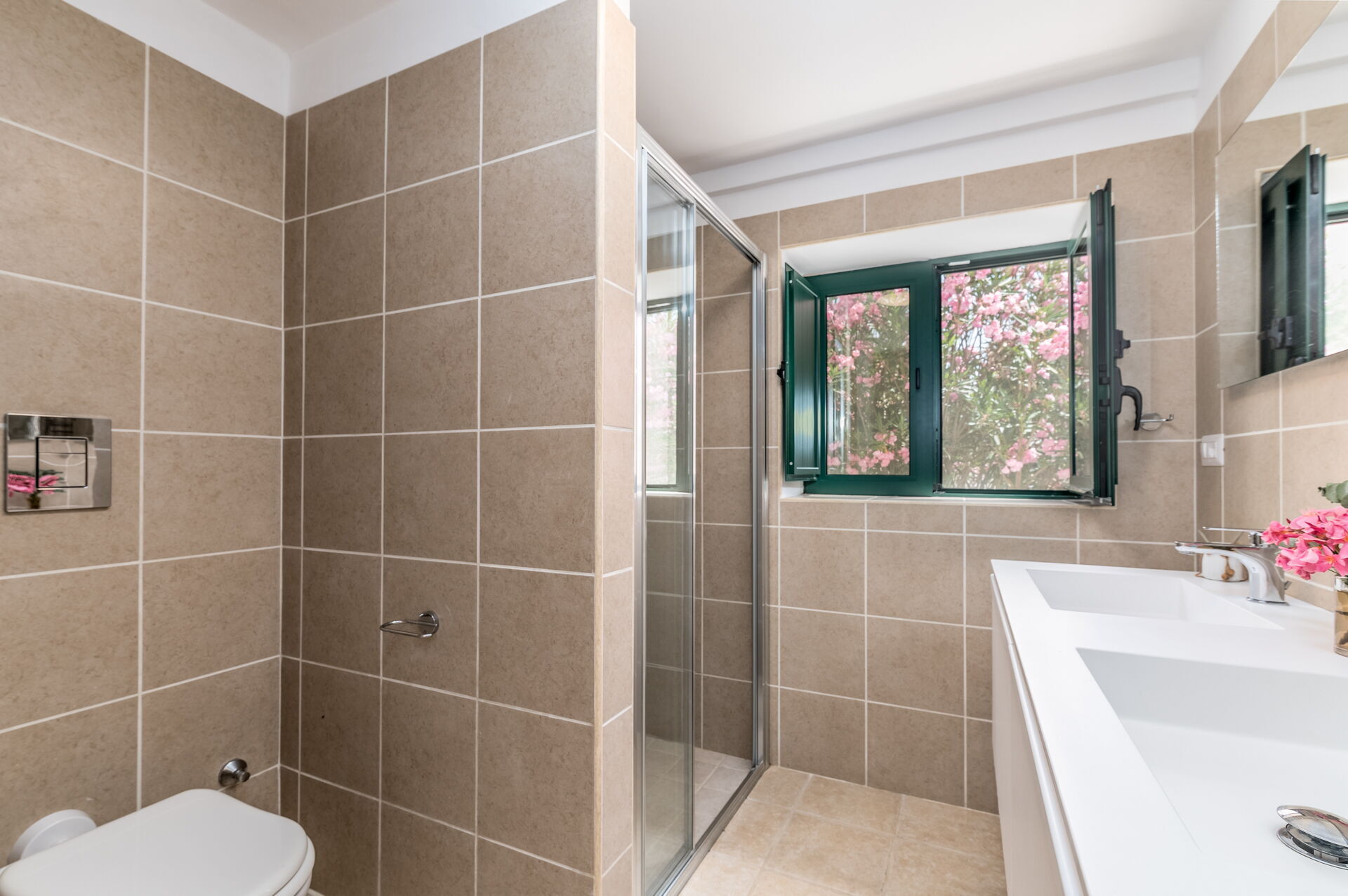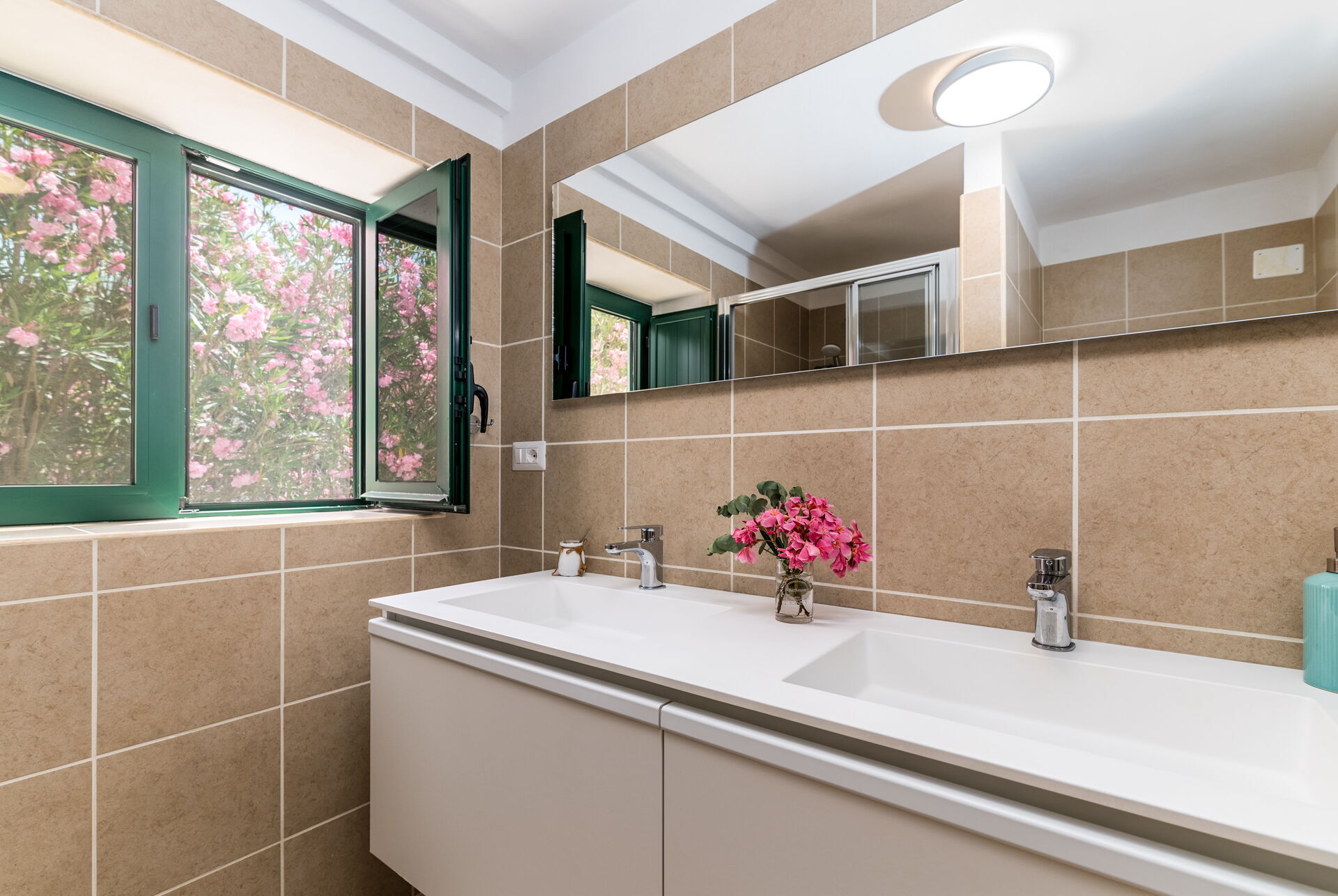 Habitación con baño 1: cama doble, WIFI internet, internet, aire acondicionado, lavabo, lavabo doble, baño, bidé, ducha, secador, acceso al jardín.