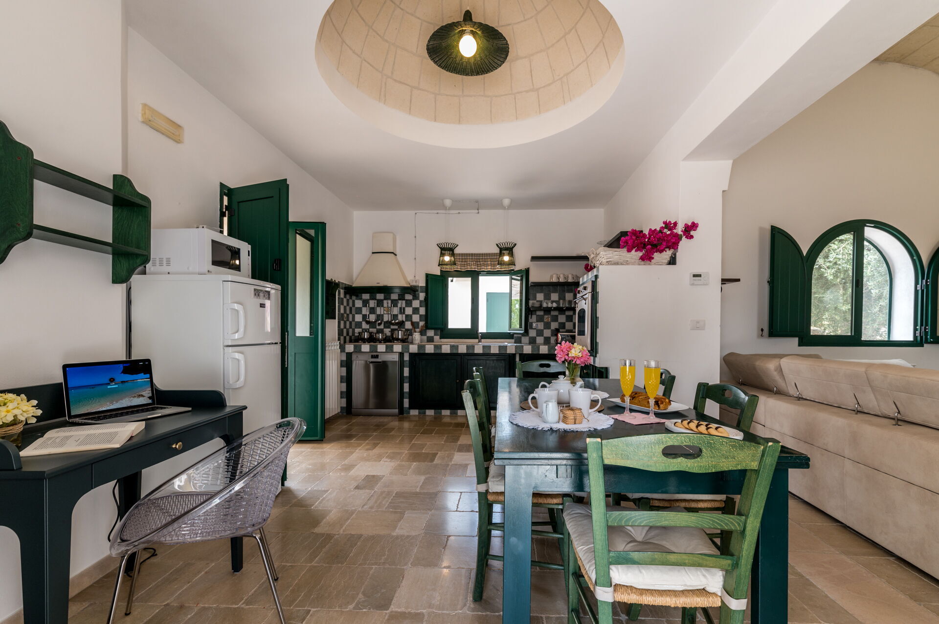 Después de llegar a Borgo Marianna encontraras una hermosa propiedad limpia y acogedora ideal para unas vacaciones relajantes en Apulia. Para su disfrute encontrará una piscina privada donde puede descansar disfutando de un buen refresco después de un día pasado visitando museos. Para su placer, afuera hay parrilla y patio de recreo. Cenar con familia y amigos es un aspecto de gran importancia en la cultura italiana. Aproveche de una cocina bien equipada para preparar comidas utilizando productos locales durante sus vacaciones. La cocina incluye cafetera, microondas, toaster, estufas y nevera, además de, muchas vajillas y cubiertos para hasta diez personas. Come 'al fresco' como un local, la veranda es el lugar perfecta para disfrutar de la comida, la compañía y el estupendo clima italiano.