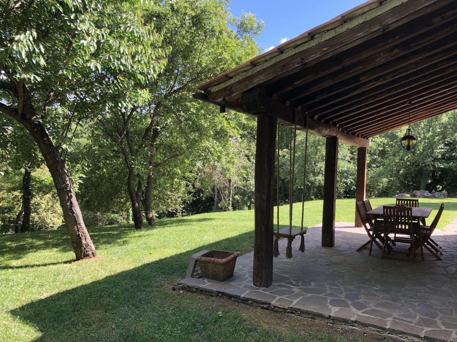 Tras llegar será bienvenido por el propietario u ama de llaves y encontrará una estupenda propiedad limpia y acogedora with views of las colinas ideal para unas vacaciones relajadas en Lacio. Independientemente de como pasa sus días - excursiones, shopping, museos o simplemente visitando y descubriendo el paisaje, cuando llega a casa puede descansar con amigos y familia cerca de la piscina para un final de día perfecto en Lacio. Si le gusta cocinar para su familia y amigos hay una cocina bien equipada incluso máquina de café, microondas, tostador y nevera, así como , muchas vajillas y cubiertos para hasta ocho personas. Si prefiere comer afuera 'al fresco', hay el jardín, un espacio bien equipado donde puede disfrutar el buen clima comiendo afuera.