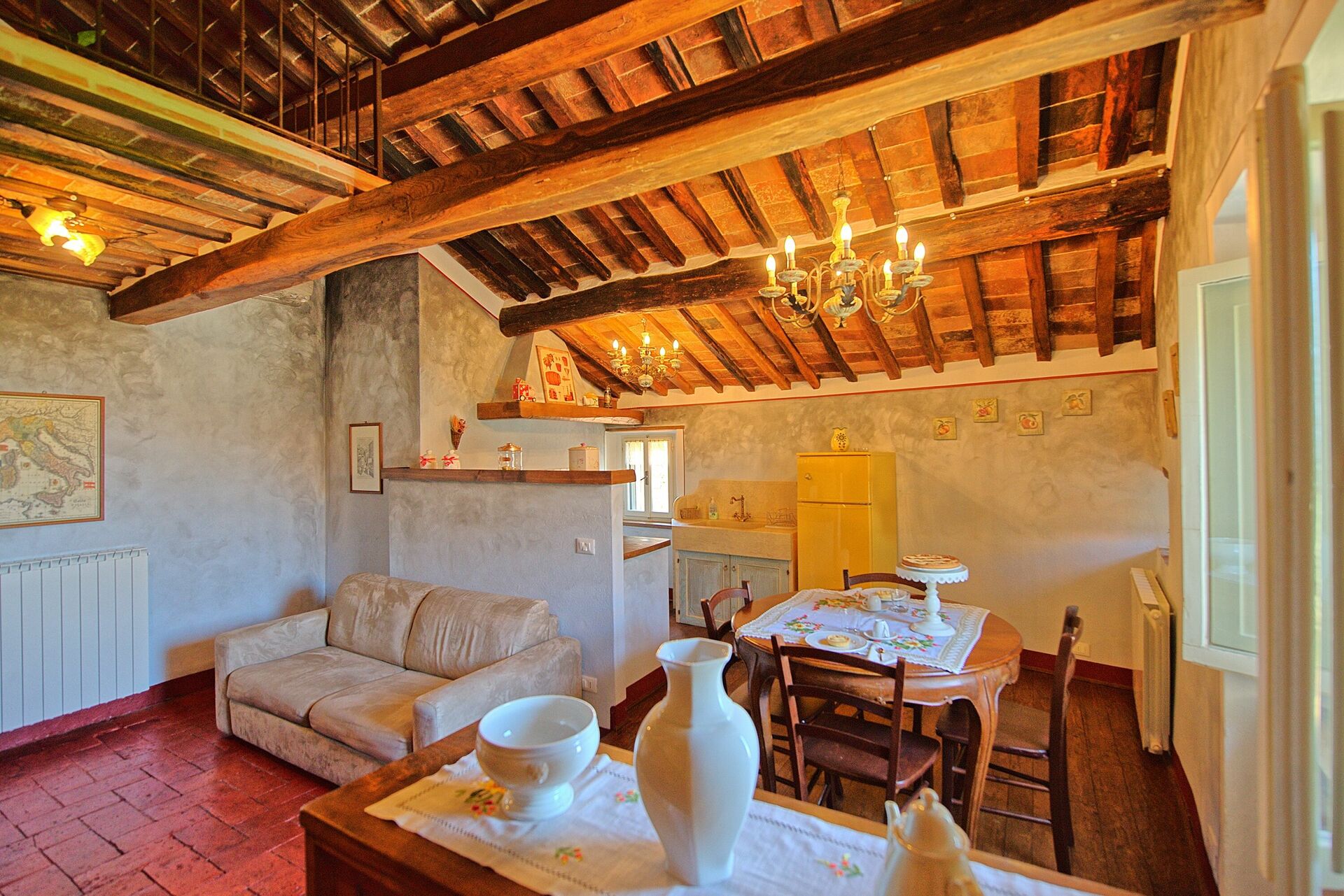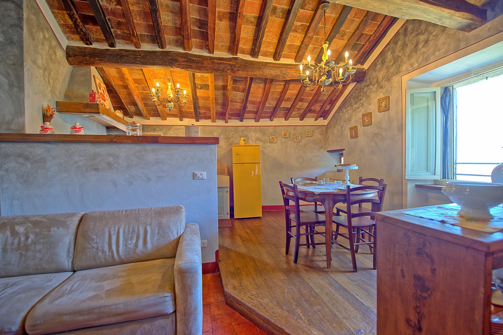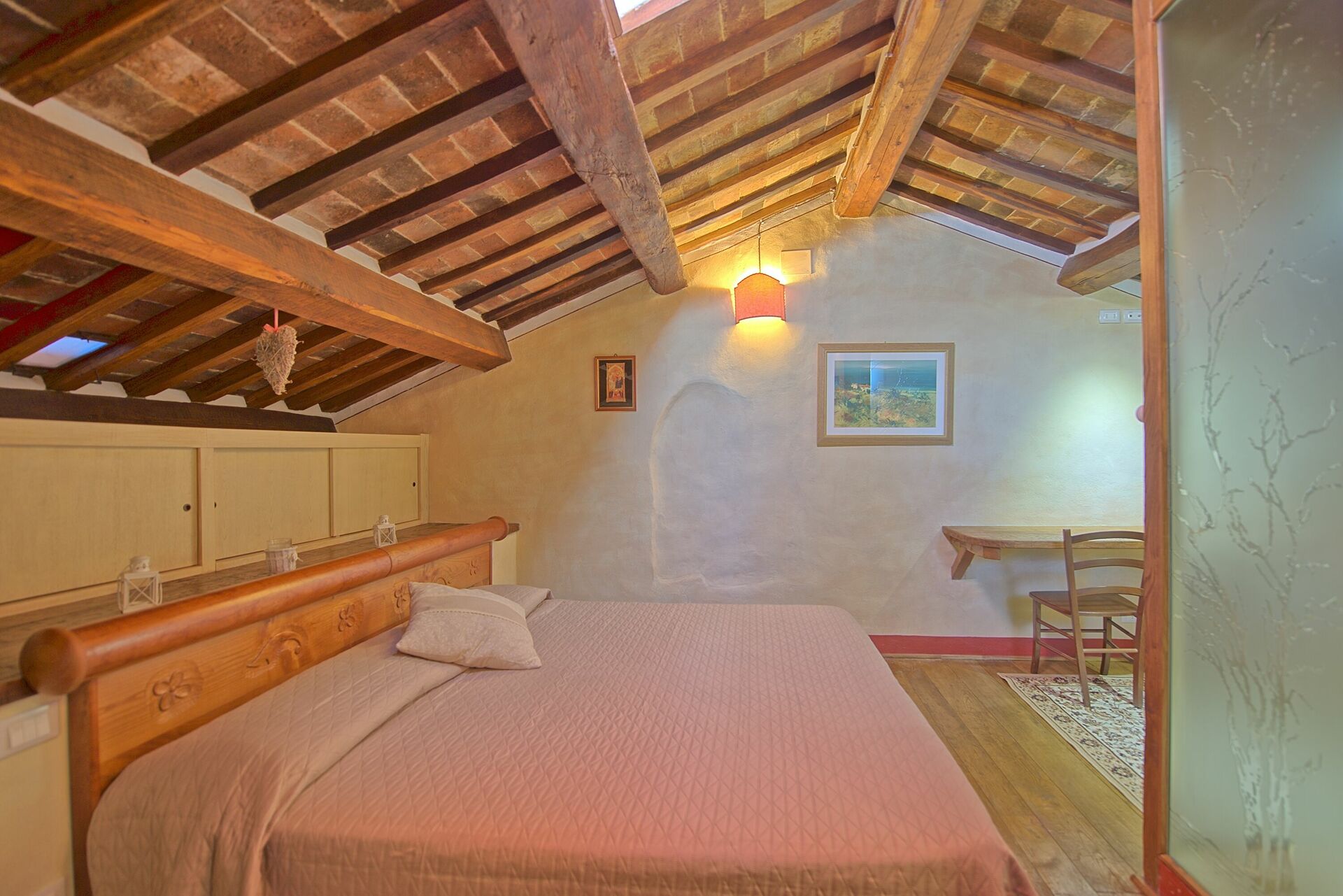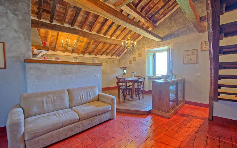 From the living room customers will appreciate a suggestive view of Cortona, one of the most beautiful and fascinating medieval village in Tuscany. The position is ideal to visit all the characteristic villages and famous cities in Tuscany, Umbria and on the Trasimeno Lake.