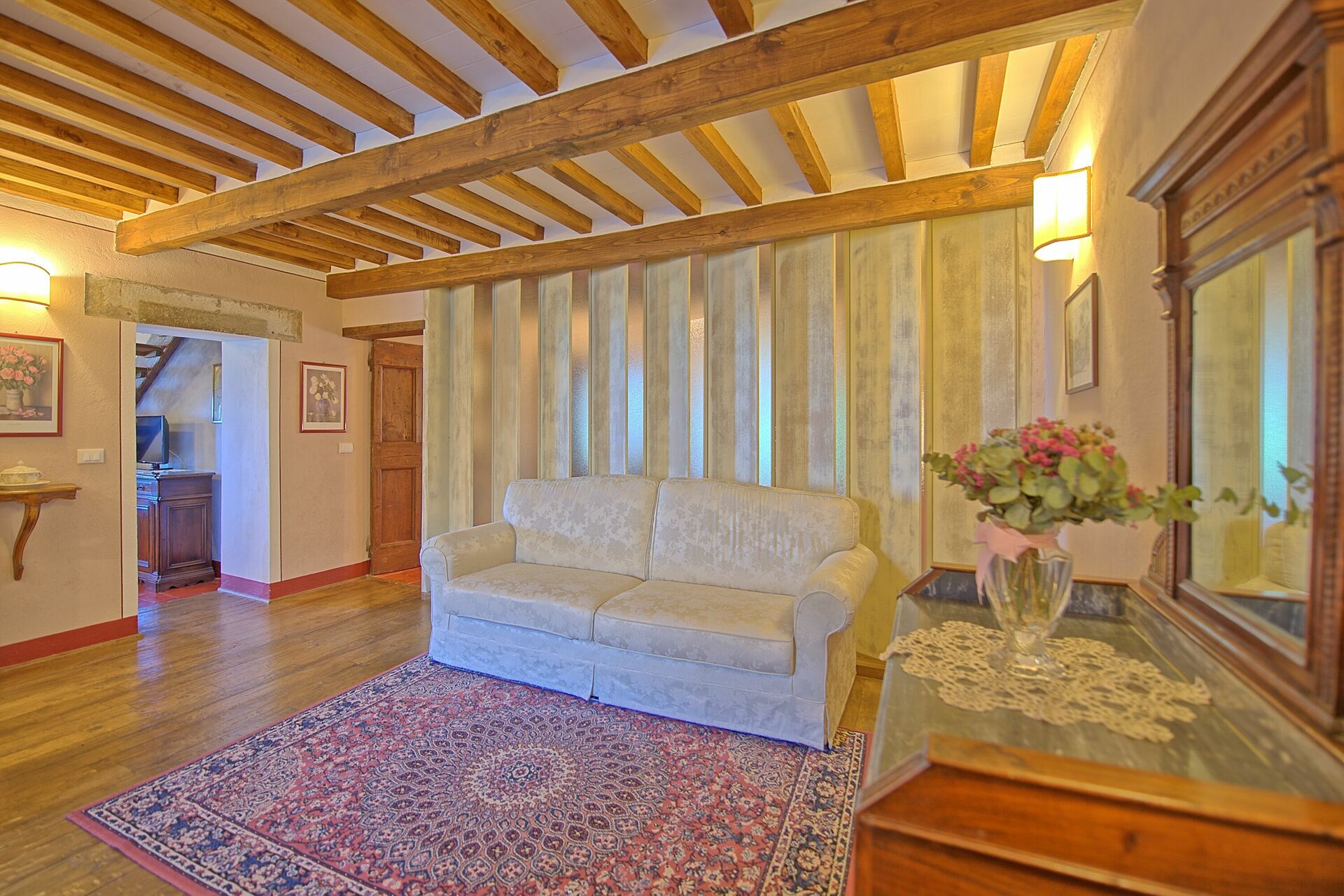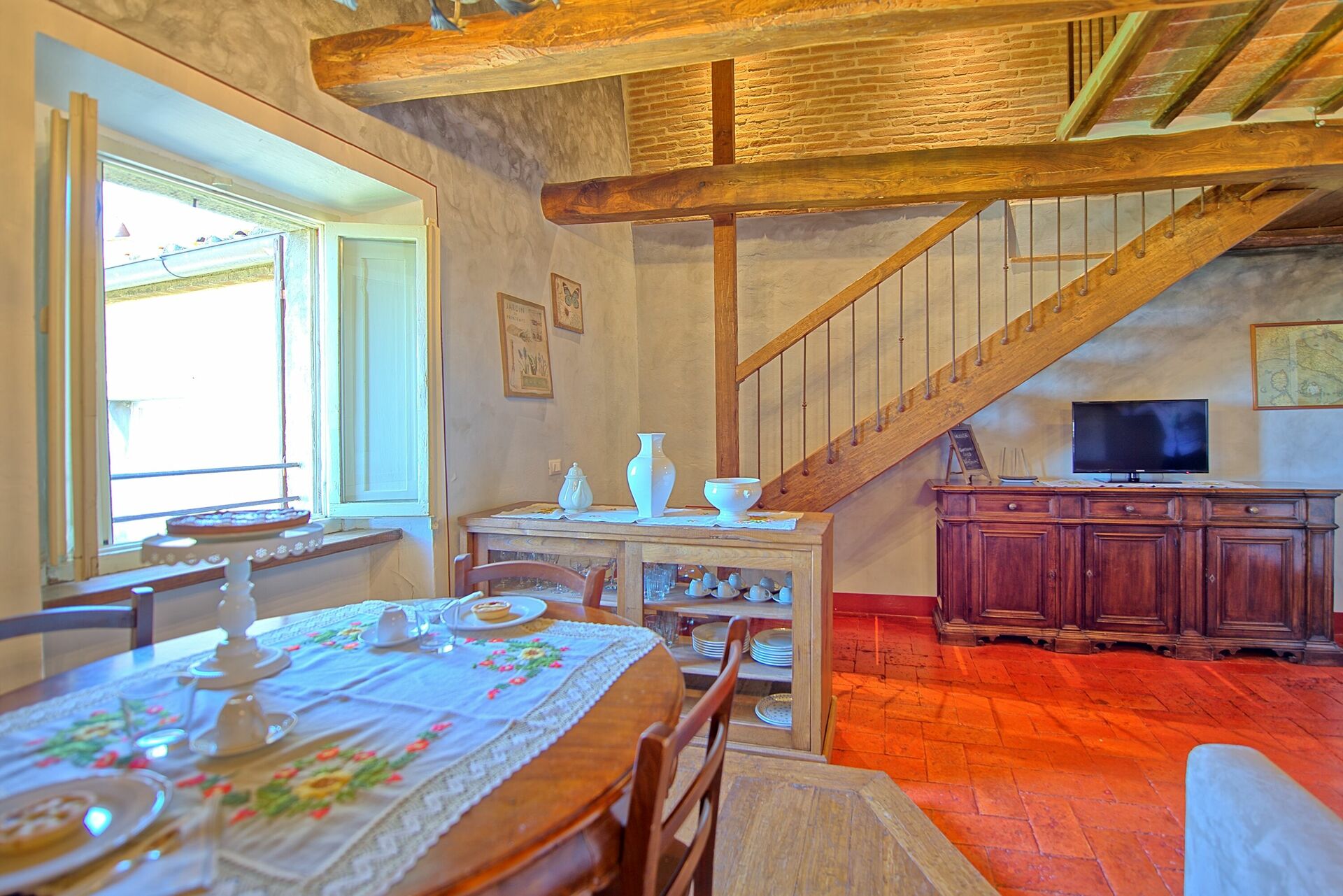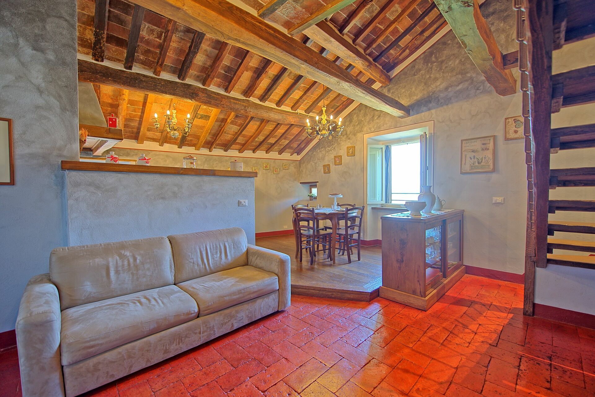 From the living room customers will appreciate a suggestive view of Cortona, one of the most beautiful and fascinating medieval village in Tuscany. The position is ideal to visit all the characteristic villages and famous cities in Tuscany, Umbria and on the Trasimeno Lake.