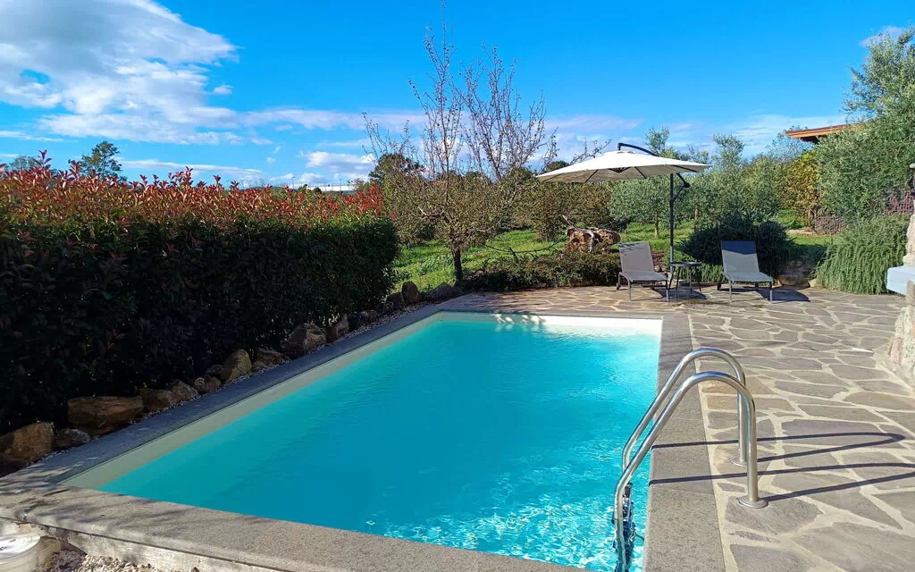 Chalet tipo suizo "Melograno", moderno, confortable, individual. 2 casas en el complejo. A 3 km del centro de Sutri, a 50 km del centro de Roma, a 45 km del mar, a 12 km de un lago. Comunitario: parque 3 ha (vallada). Privado: jardín 500 m2, piscina (6 x 3 m, 130 cm de profundidad, Disponible por temporada: 16.May. - 03.Oct.). Ducha exterior, muebles de jardín, barbacoa, mantenimiento de la piscina a través del propietario/jardinero. En el inmueble: recepción, habitación relax. Aparcamiento (cubierto) en el mismo terreno. Estación de carga eléctrica. Supermercado 2 km, parada autobús 1.2 km, playa de arena "Santa Severa" 45 km, lago "Lago Di Vico" 12 km. Campo de golf (18 hoyos) 7 km. Atracciones en los alrededores: Viterbo 30 km, Civita di Bagno Regio 45 km, Trevignano Romano 13 km, Tuscania 30 km, Parco Città di Sutri 1 km, Acquapark Fontevivola 1 km. Lagos conocidos fácilmente accesibles: Lago di Bracciano 13 km, Lago di Bolsena 45 km. Zona de senderismo Via Francigena 1 km, Parco Martignano 13 km, Riserva Naturale lago di Vico 5 km. Venta local de productos de granja. Residencia con puertas de cierre eléctrico.