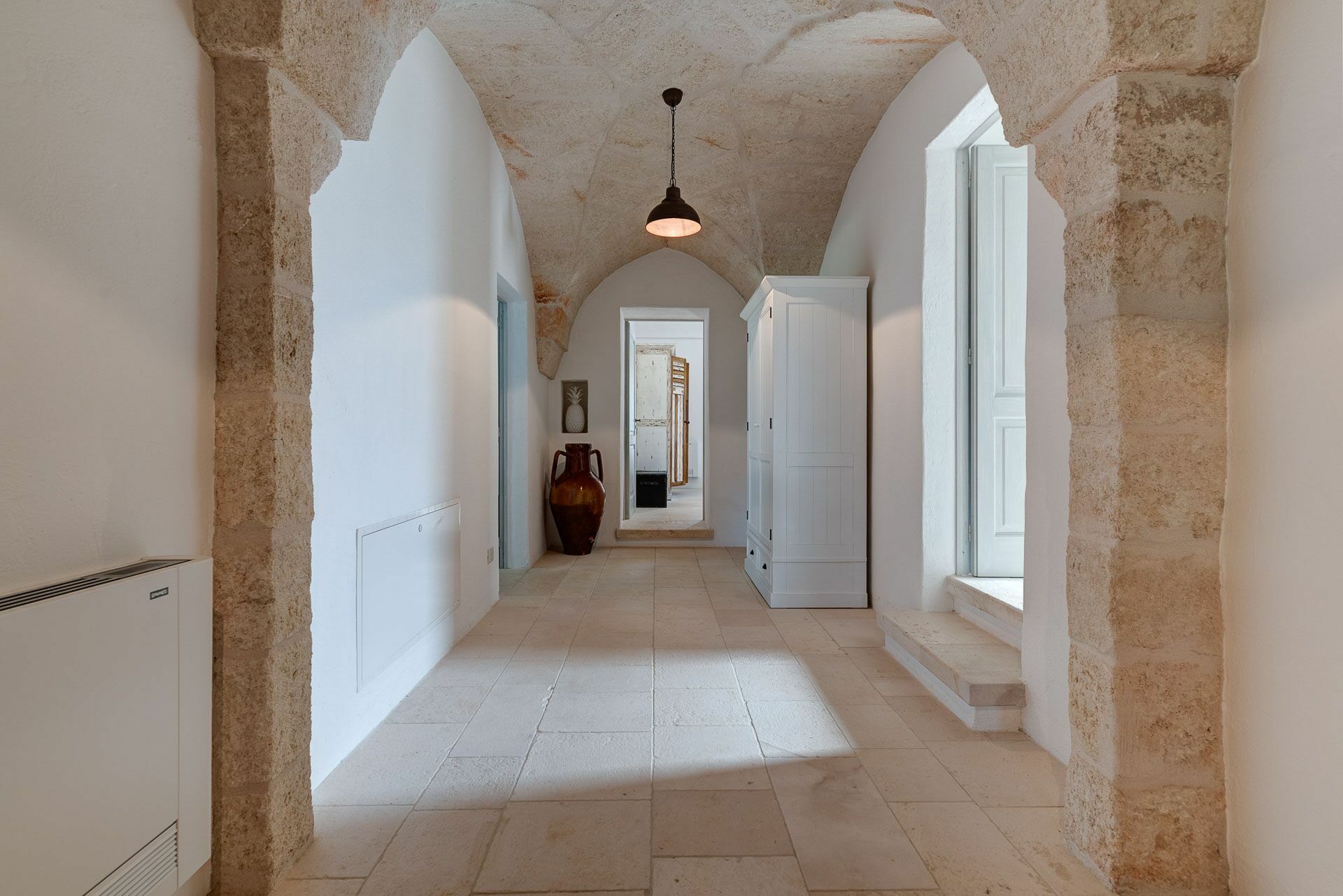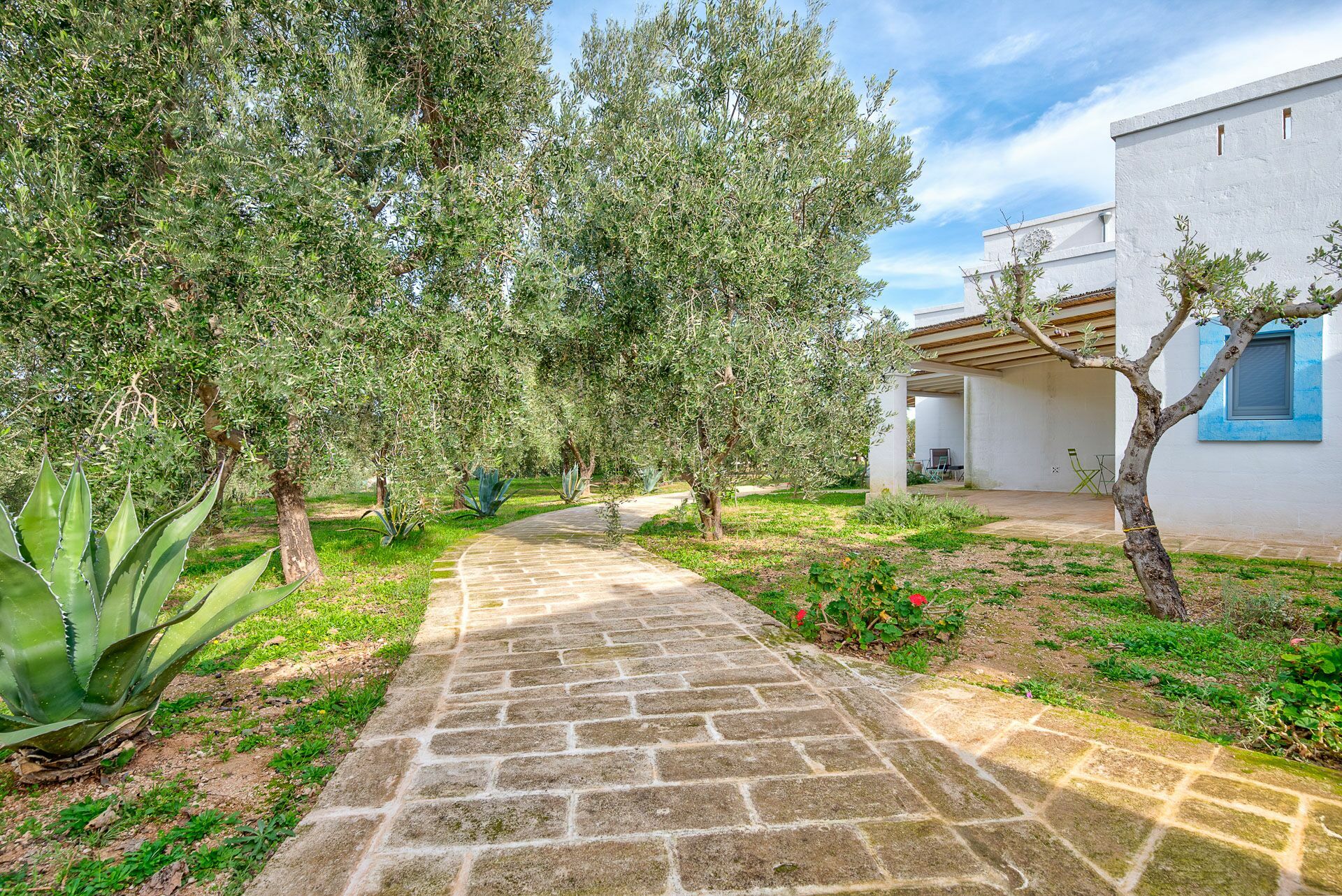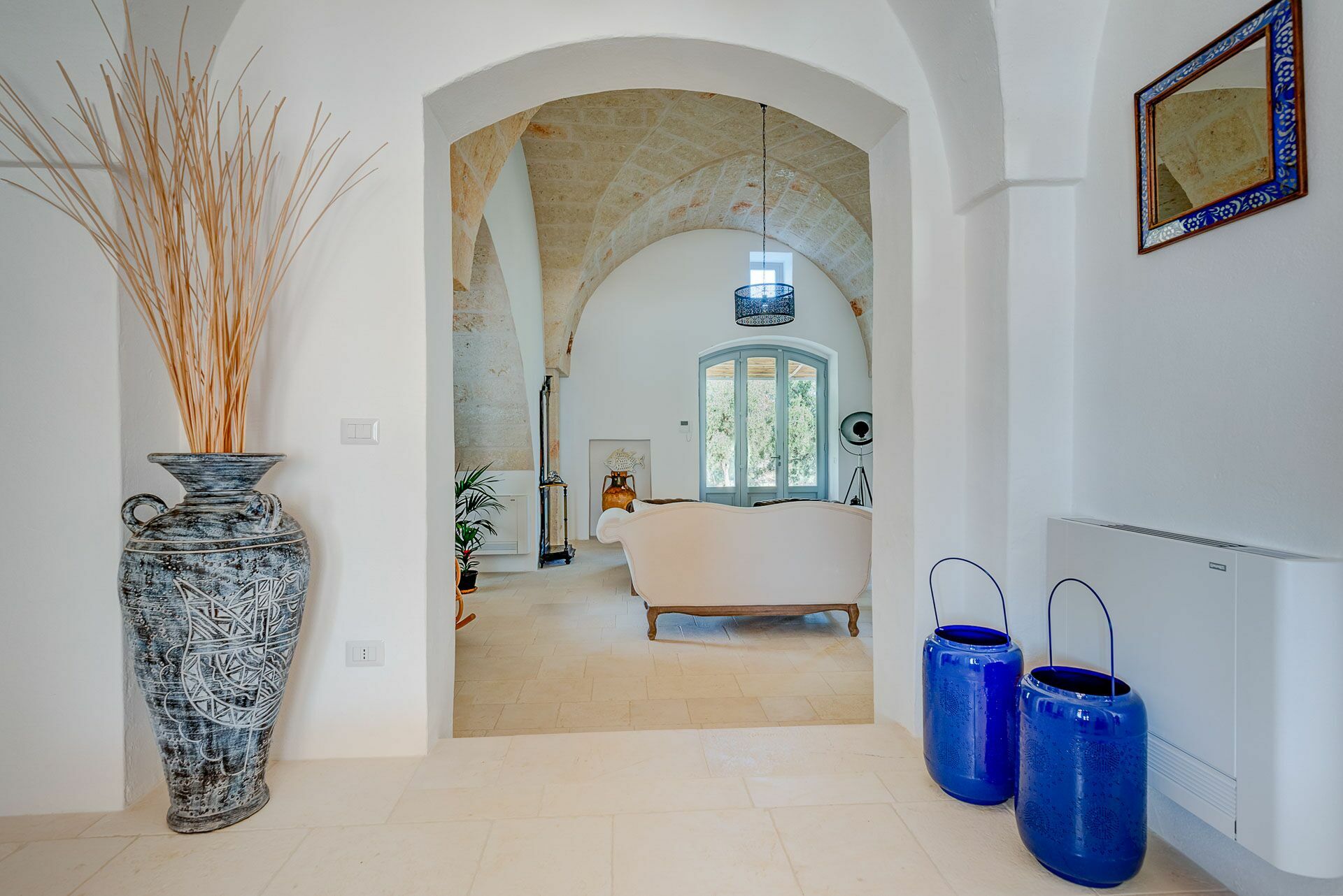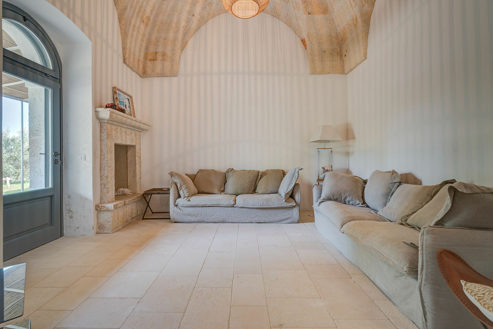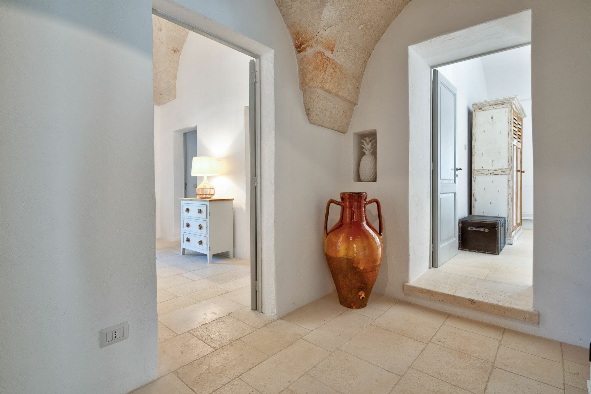 When you arrive at the historic villa for rent, Masseria Tufo Bianco, after crossing the short country road, lined with dry stone walls and olive trees, you will find yourself in front of the electric gate. You can choose to park the car in the large dirt area or bring it to the access at the back to conveniently store your suitcases.