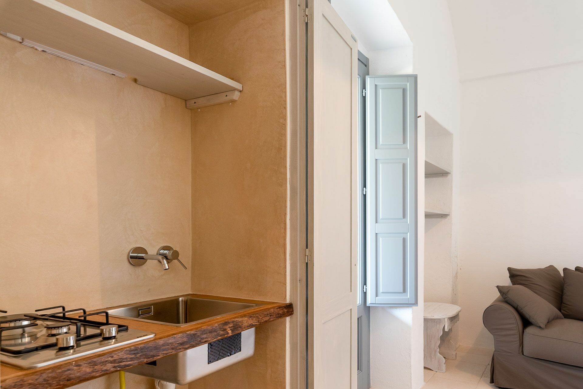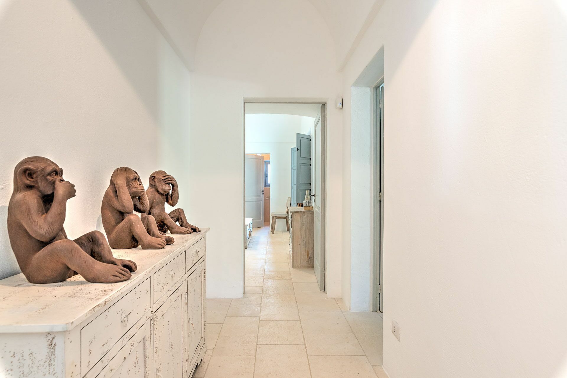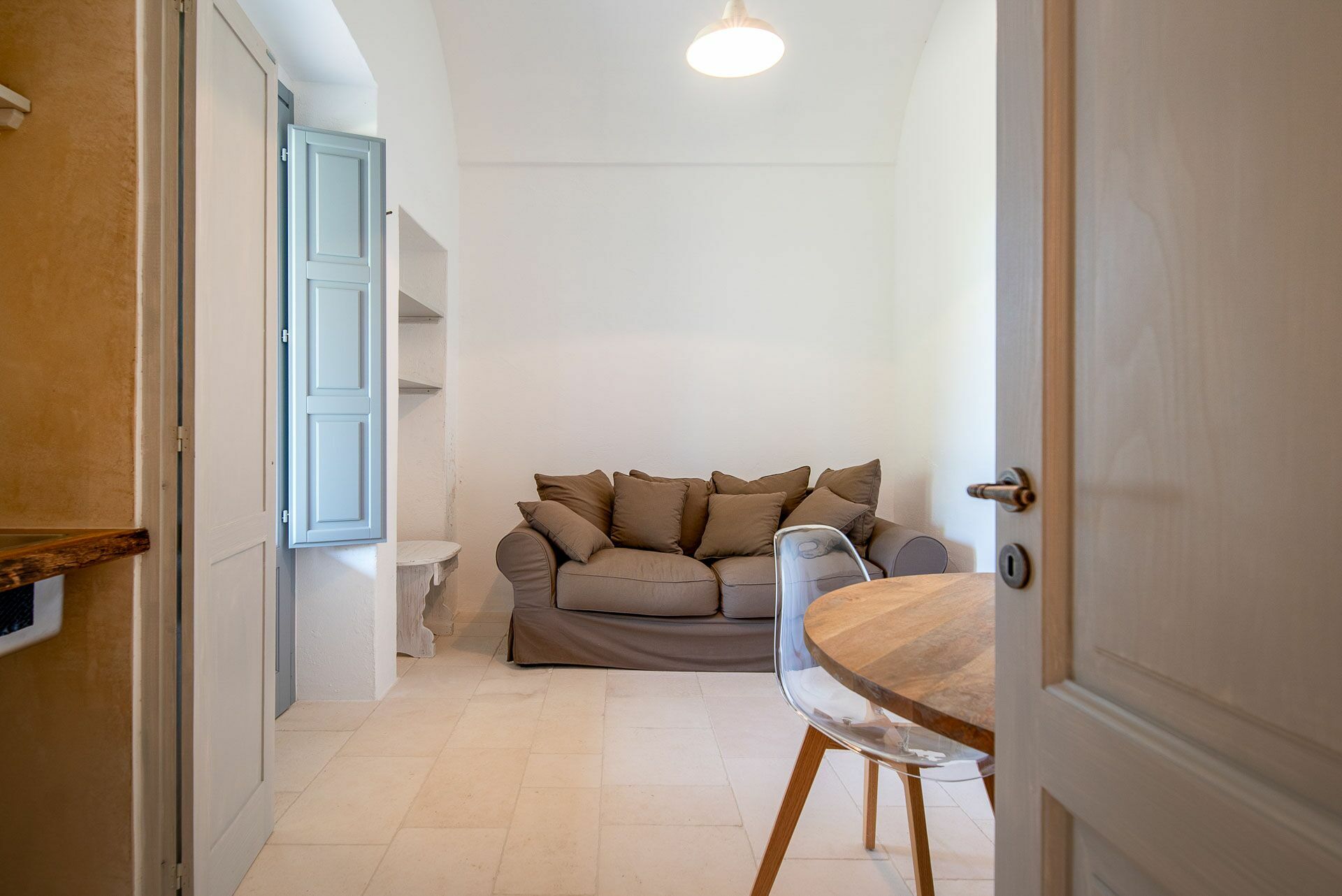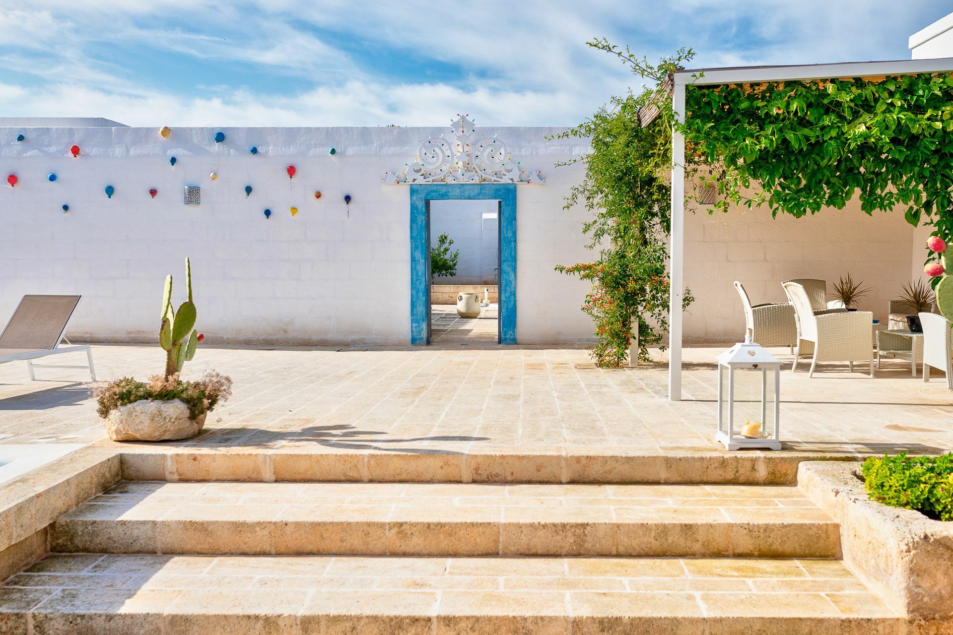 When you arrive at the historic villa for rent, Masseria Tufo Bianco, after crossing the short country road, lined with dry stone walls and olive trees, you will find yourself in front of the electric gate. You can choose to park the car in the large dirt area or bring it to the access at the back to conveniently store your suitcases.
