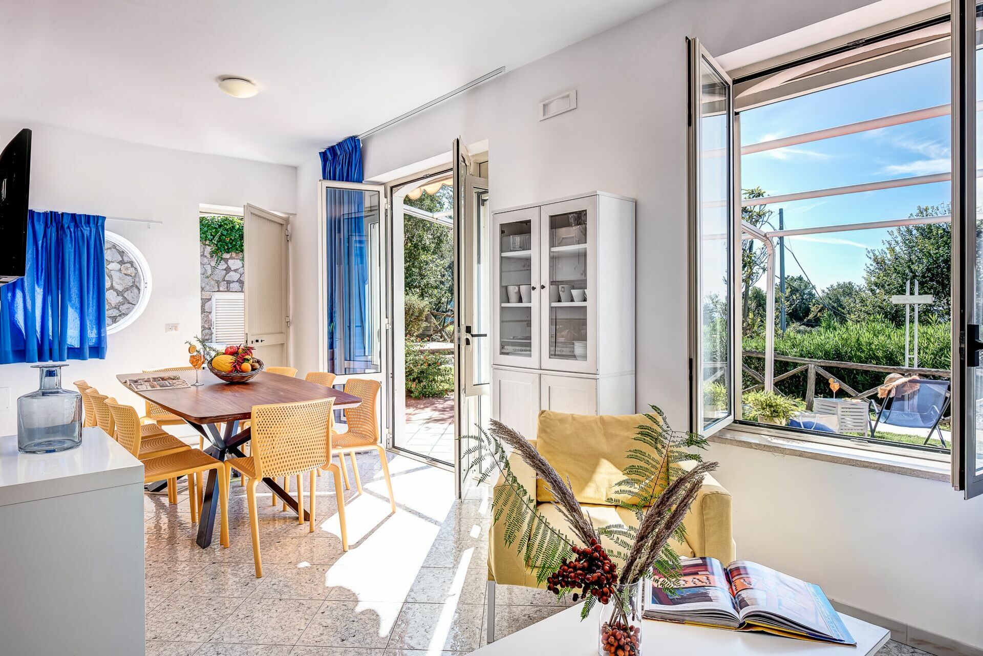 Cocina-salón: cocina bien equipada, mesa de comedor, frigorífico, congelador, microondas, horno, tostadora, máquina de café italiana, sofá cama de matrimonio, WIFI internet, aire acondicionado, tv vía satélite, acceso a la terraza.