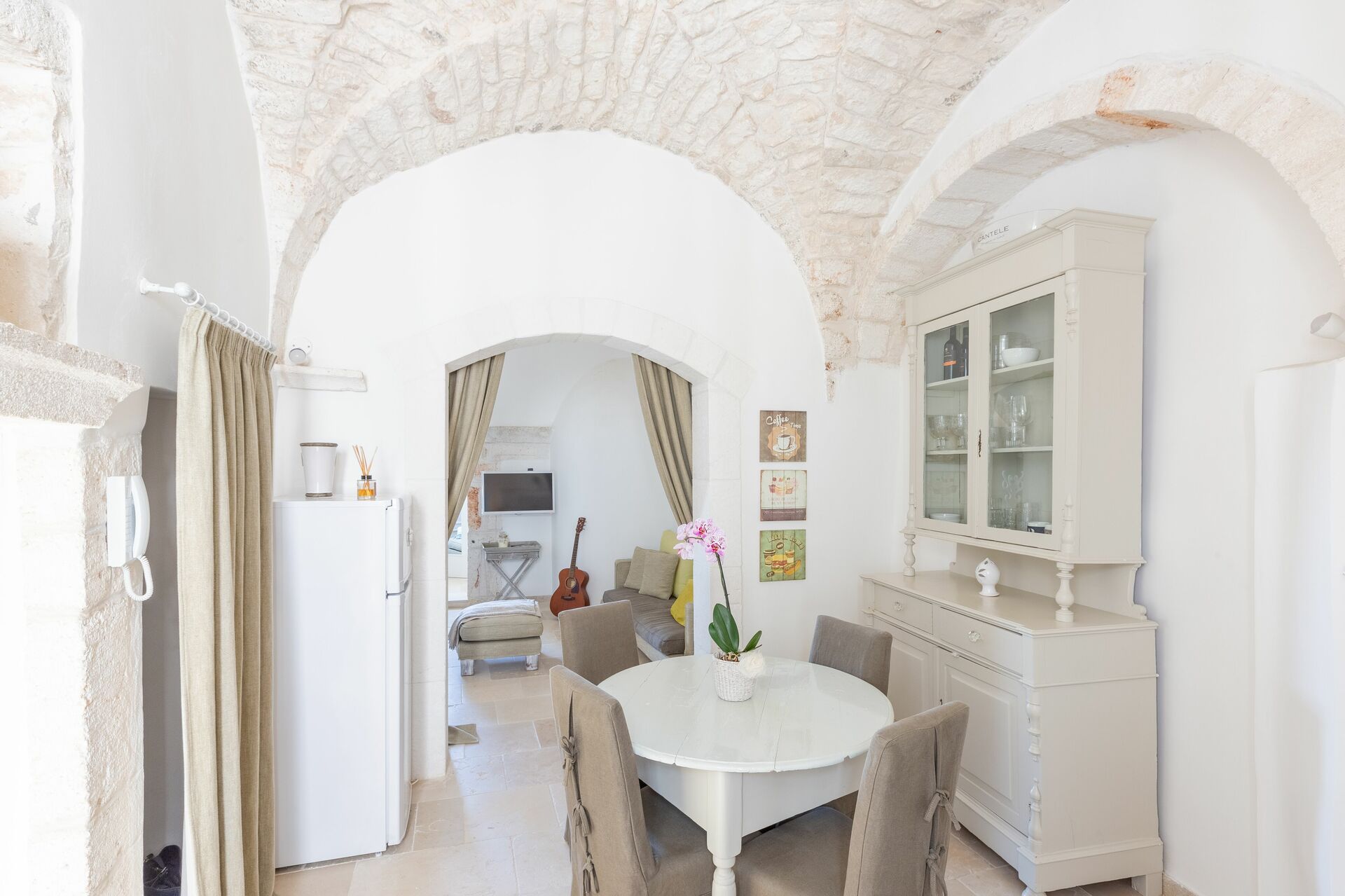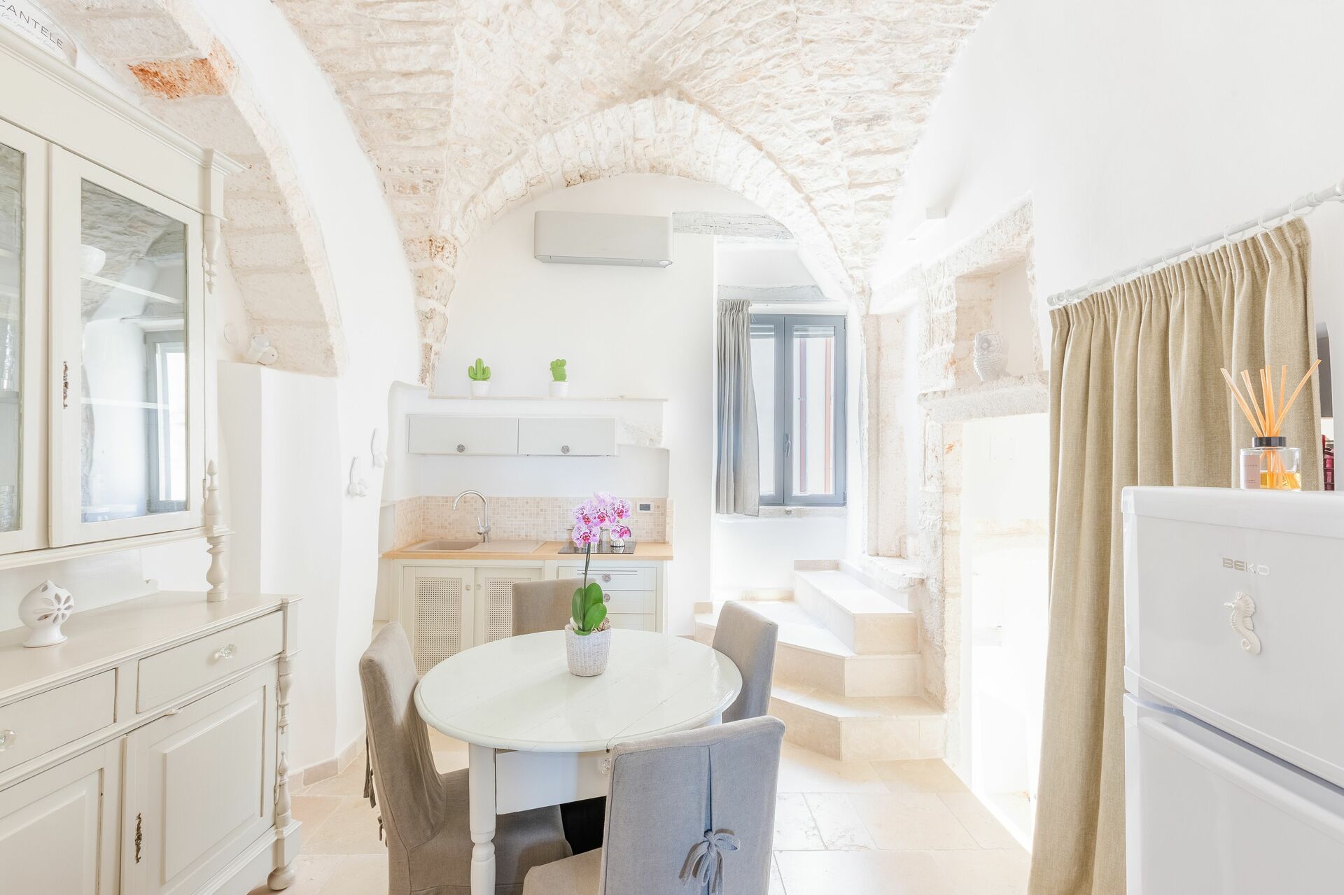 Tras llegar encontrará una hermosa propiedad limpia y acogedora con vista ciudad y el mar perfecta para unas vacaciones relajantes en Apulia. Uno de los beneficios de estar en una casa de vacaciones sino que en hoteles, es la posibilidad de relajarse tras un largo día de visitas con la familia y los amigos. Al anochecer sigue disfrutando con una buena comida y un buen vino local. Hay una cocina incluso estufa y nevera, así como , muchas vajillas y cubiertos para hasta cuatro personas. Si prefiere comer afuera 'al fresco', hay la veranda, un espacio bien equipado donde puede disfrutar el buen clima comiendo afuera.