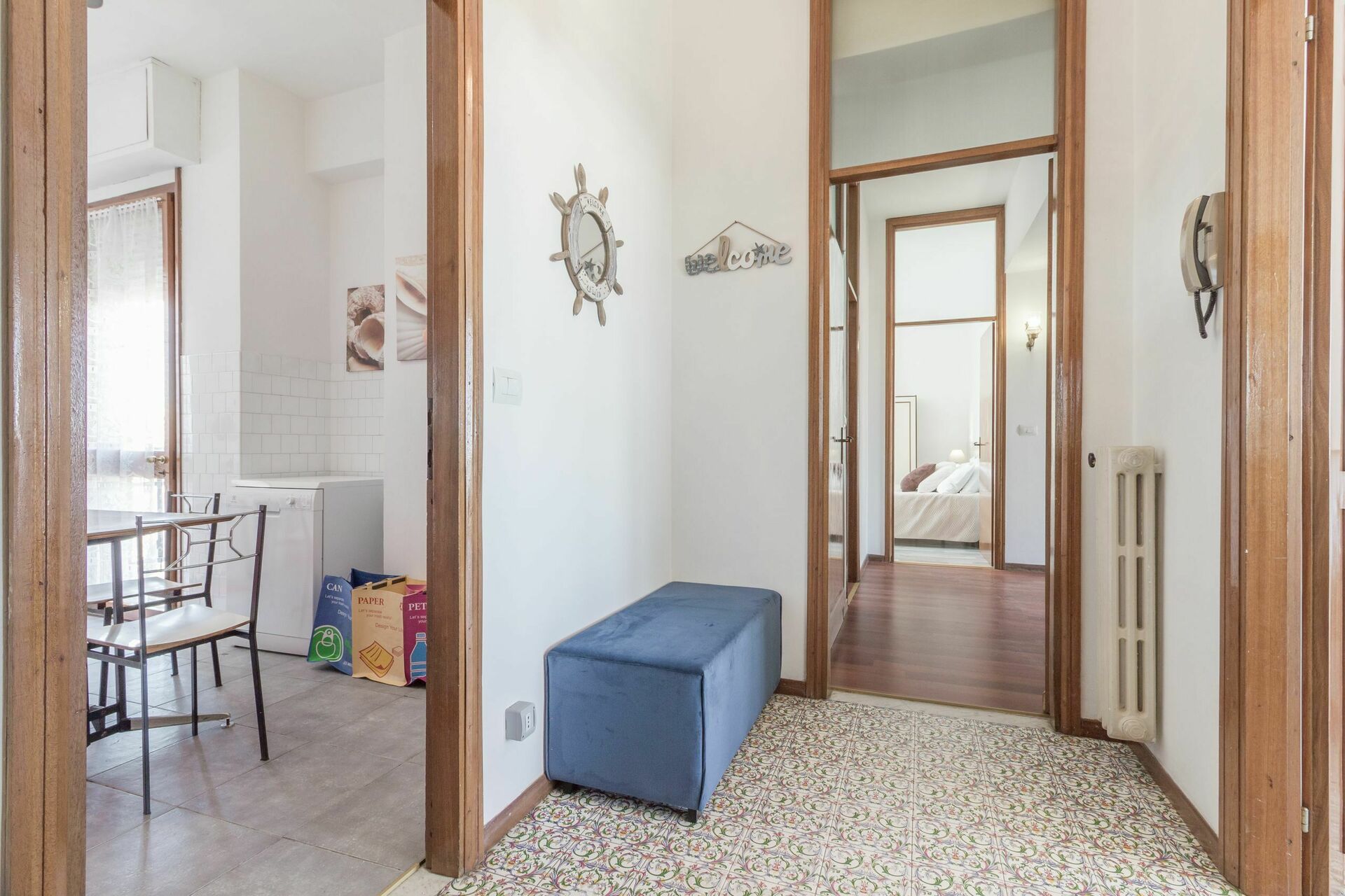 Después de llegar será acogido por el propietario u ama de llaves y encontrará una hermosa propiedad limpia y acogedora with views of el mar and ciudad ideal para unas vacaciones tranquilas en Emilia-romaña. Uno de los beneficios de estar en una casa de vacaciones sino que en hoteles, es la posibilidad de relajarse tras un largo día de visitas con la familia y los amigos. Al anochecer sigue disfrutando con una buena comida y un buen vino local. Cenar con familia y amigos es un aspecto de gran importancia en la cultura italiana. Aproveche de una cocina bien equipada para preparar comidas utilizando productos locales durante sus vacaciones. La cocina incluye cafetera, toaster, estufas y nevera, además de, muchas vajillas y cubiertos para hasta ocho personas. Come 'al fresco' como un local, la terraza es el lugar perfecta para disfrutar de la comida, la compañía y el hermoso clima italiano.