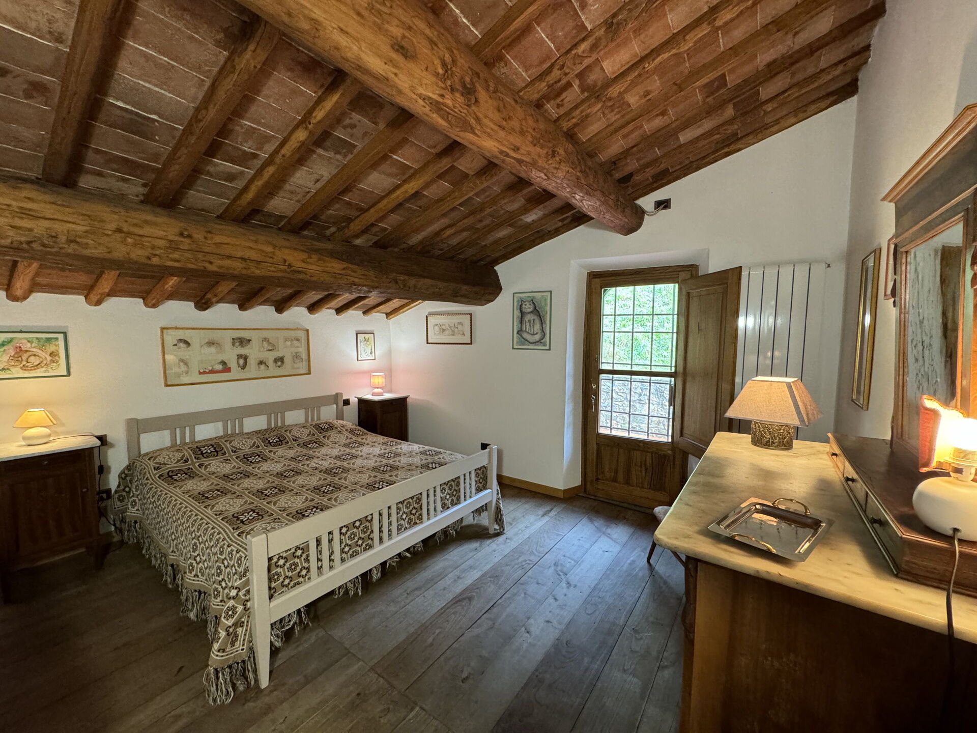 Habitación: cama doble, acceso a la terraza.