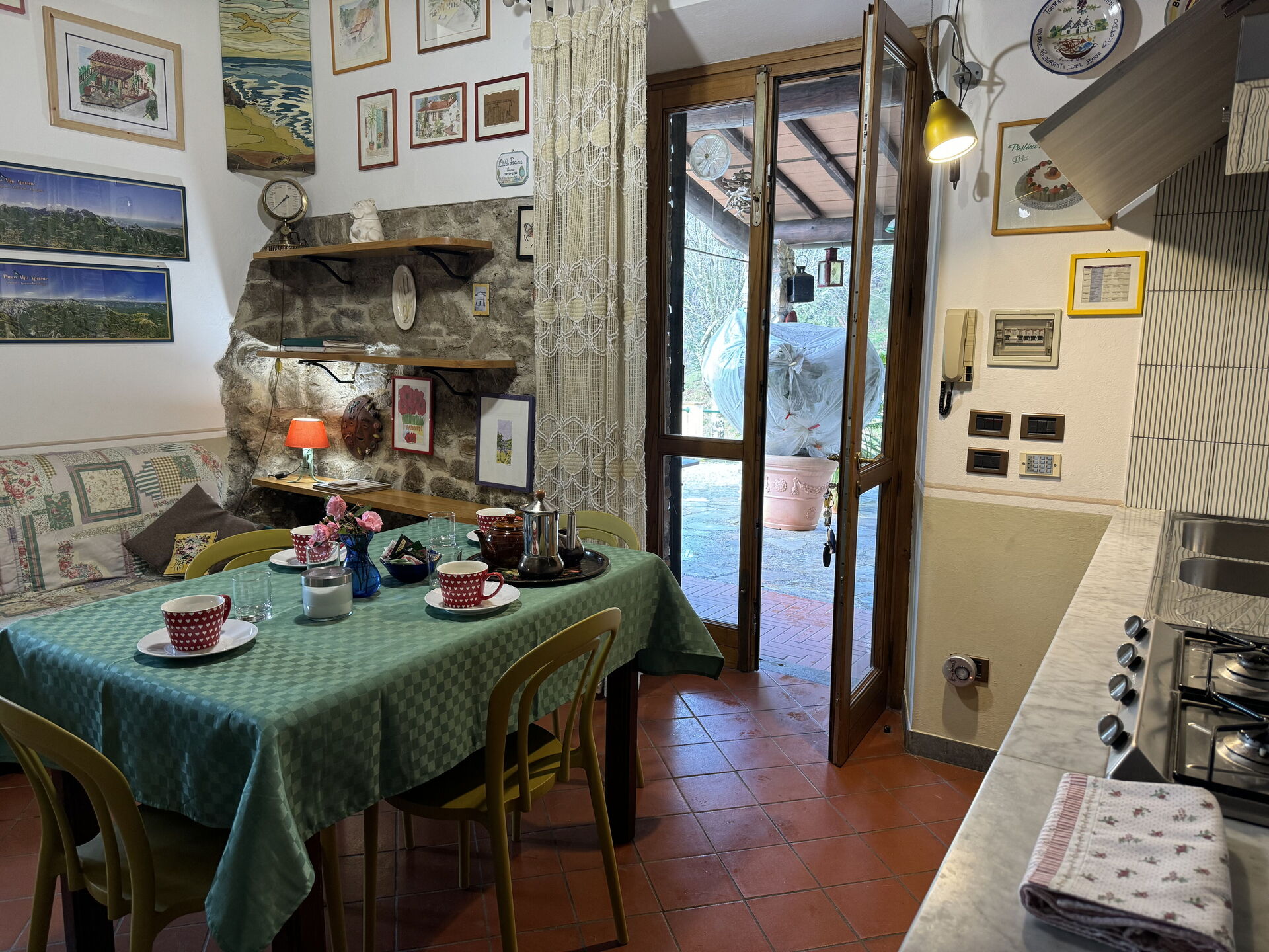 Los propietarios viven en la parte trasera de la casa de vacaciones Le Piane; con una entrada independiente y disponen de su zona exterior privada.
