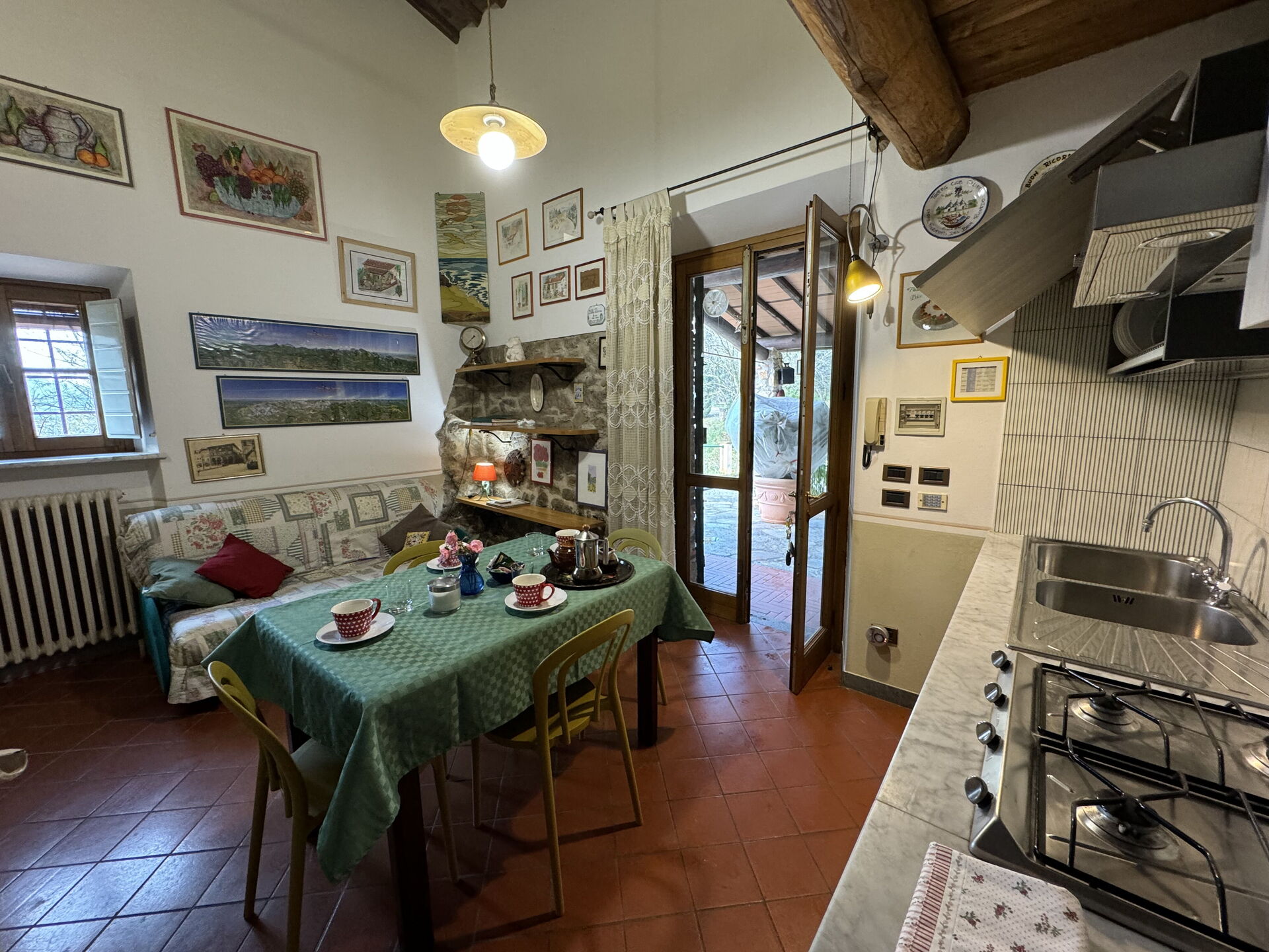 Después de llegar será recibido por el propietario u ama de llaves y encontrará una estupenda propiedad limpia y acogedora ideal para unas vacaciones relajadas en Toscana. Para su disfrute encontrará una piscina privada donde puede relajarse disfutando de un buen refresco después de un día pasado a visitar lugares turísticos. Al aire libre encontrará parrilla y patio de recreo. Cenar con familia y amigos es un aspecto de gran importancia en la cultura toscana. Aproveche de una cocina para preparar comidas utilizando productos locales durante sus vacaciones. La cocina incluye cafetera y nevera, además de, muchas vajillas y cubiertos para hasta cuatro personas. Come 'al fresco' como un local, la veranda es el lugar ideal para disfrutar de la comida, la compañía y el estupendo clima toscano.