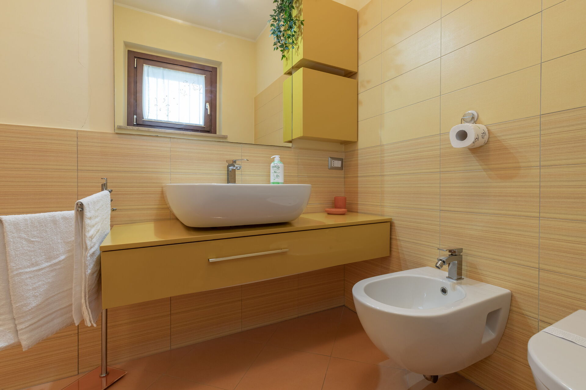 Baño: lavabo, baño, bidé, ducha, secador, WIFI internet.
