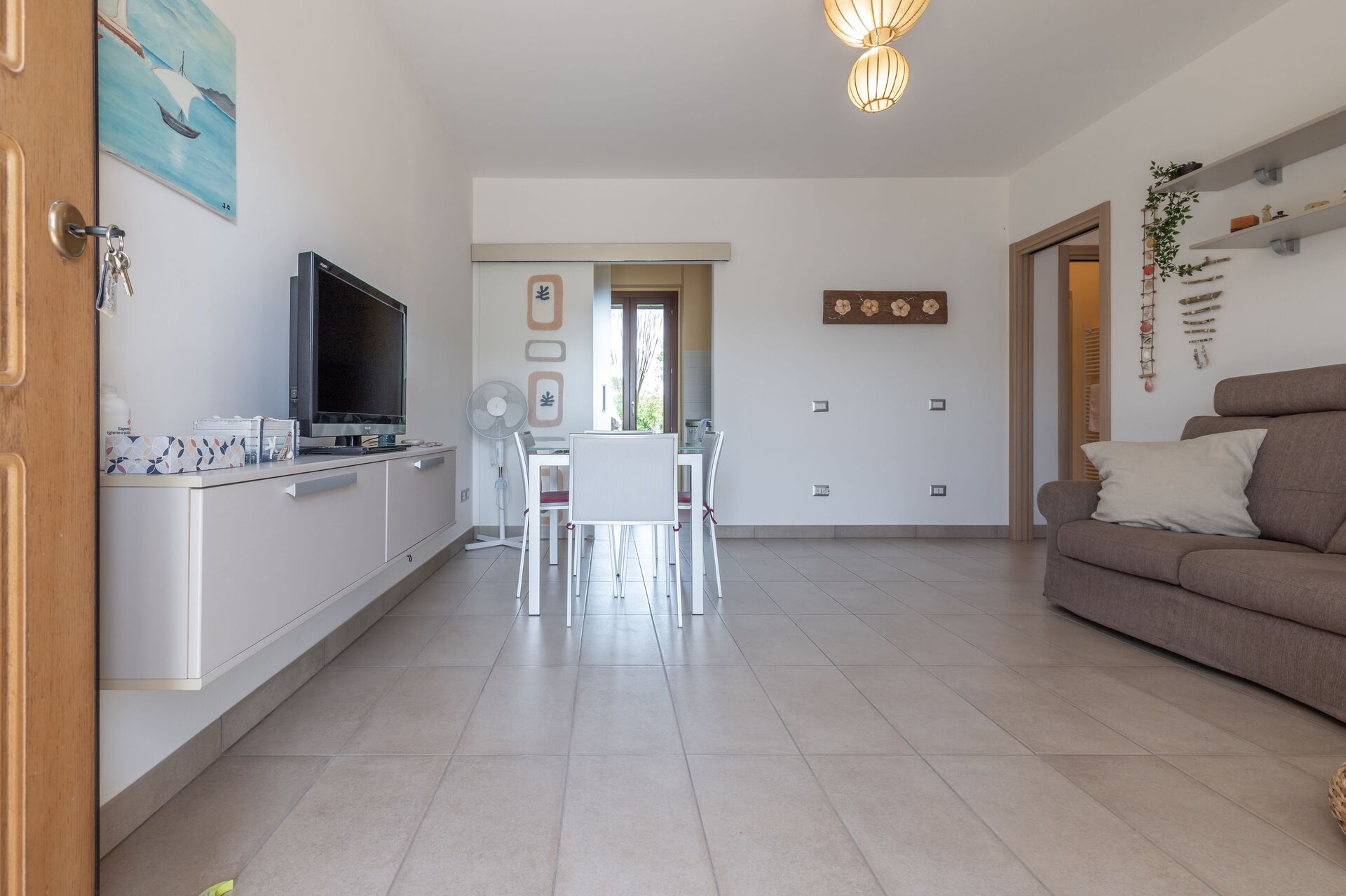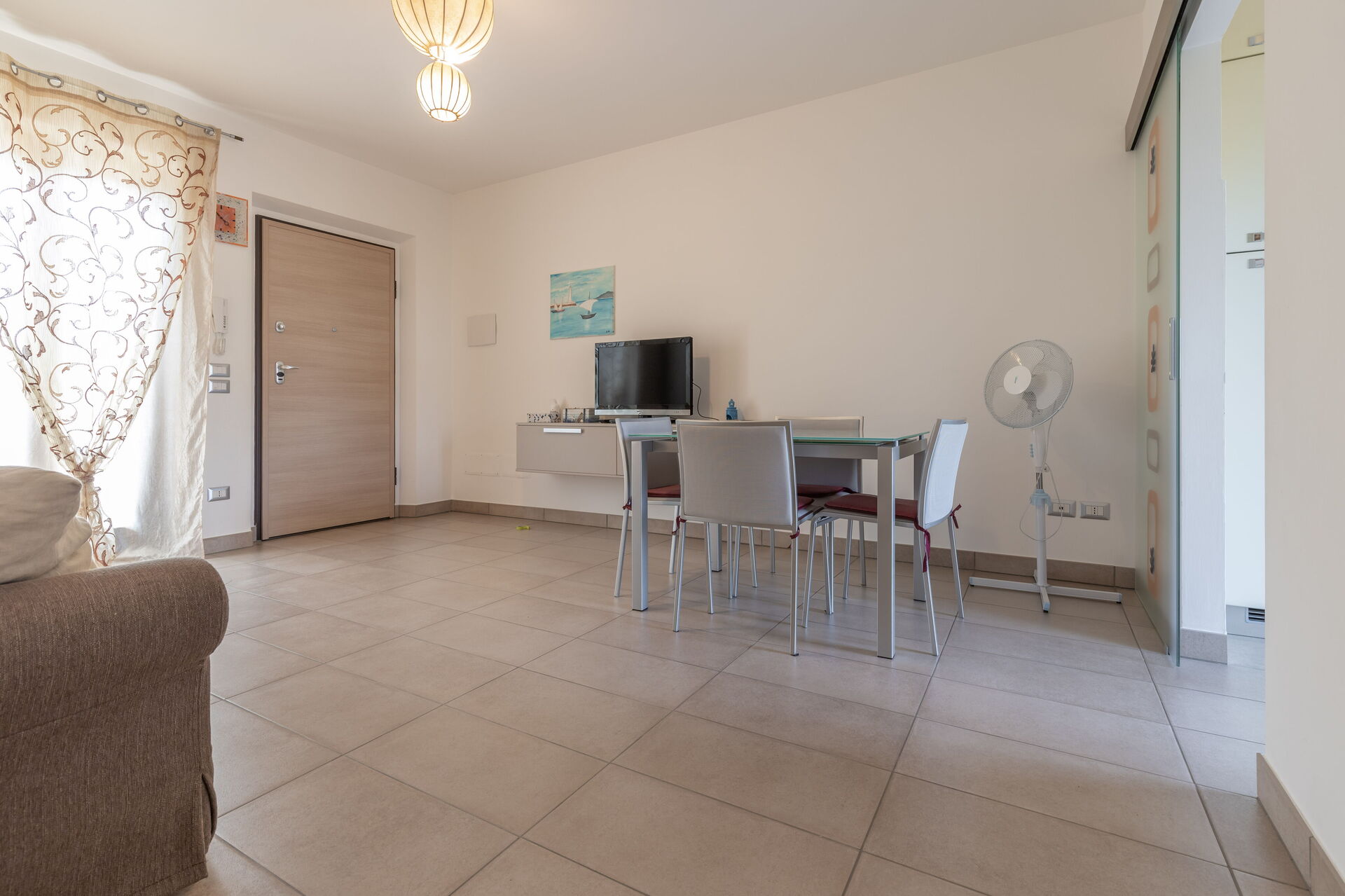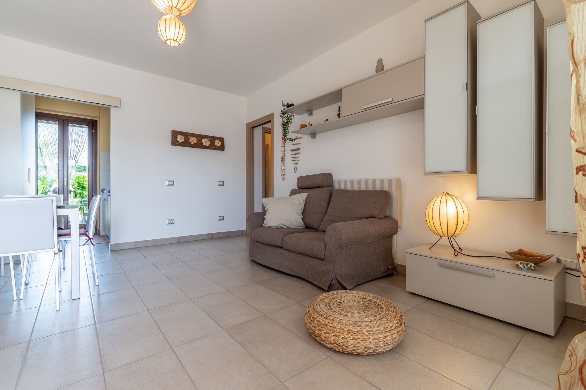 Salón: sofa, sillón, escritorio, mesa de comedor, WIFI internet, tv vía satélite, mosquitero, acceso al jardín.