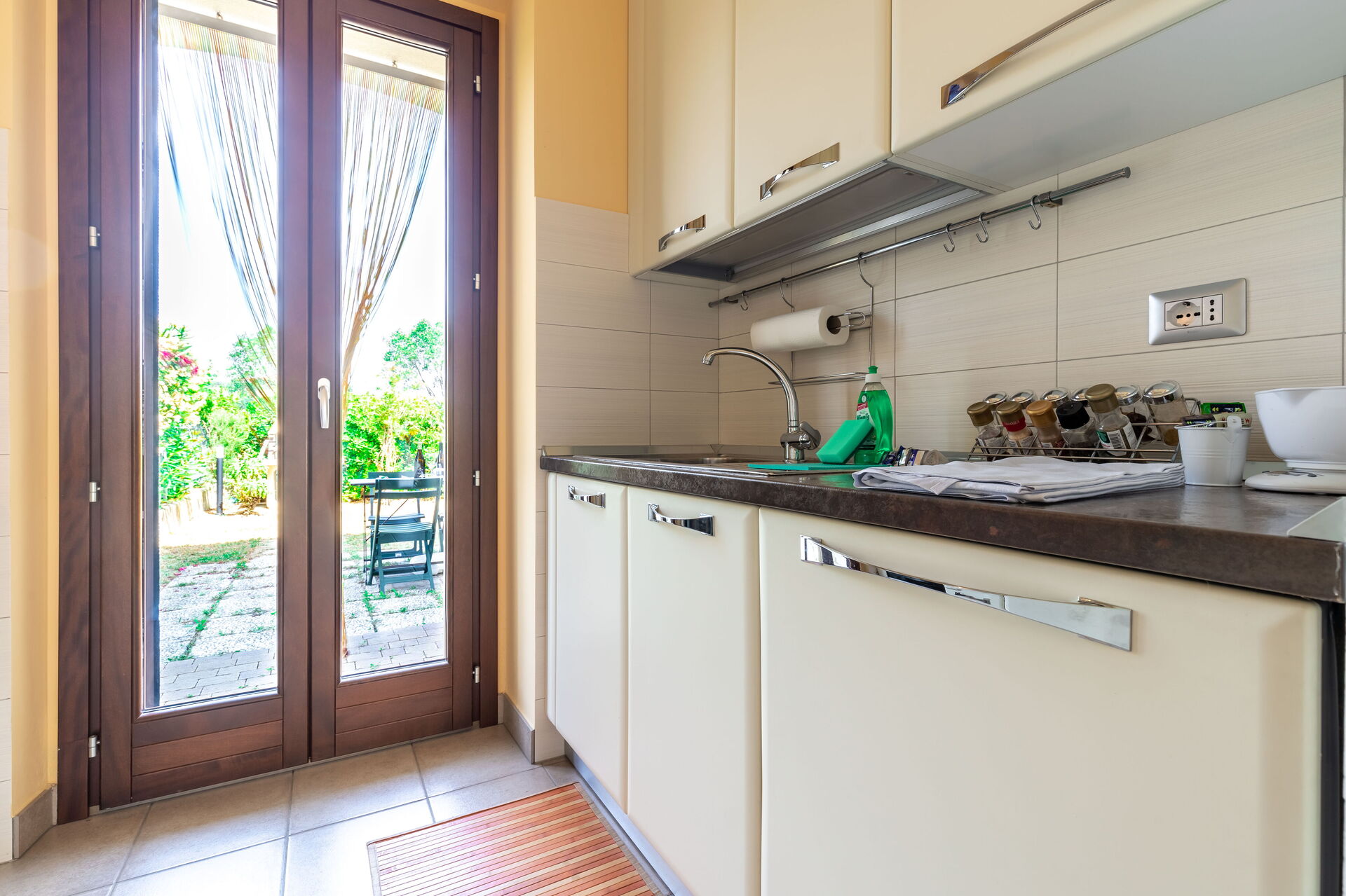 Cocina: cocina bien equipada, frigorífico, congelador, horno, tostadora, máquina de café italiana, máquina de café americana, WIFI internet, mosquitero, acceso al jardín.