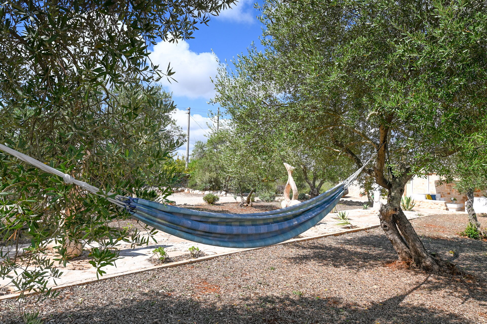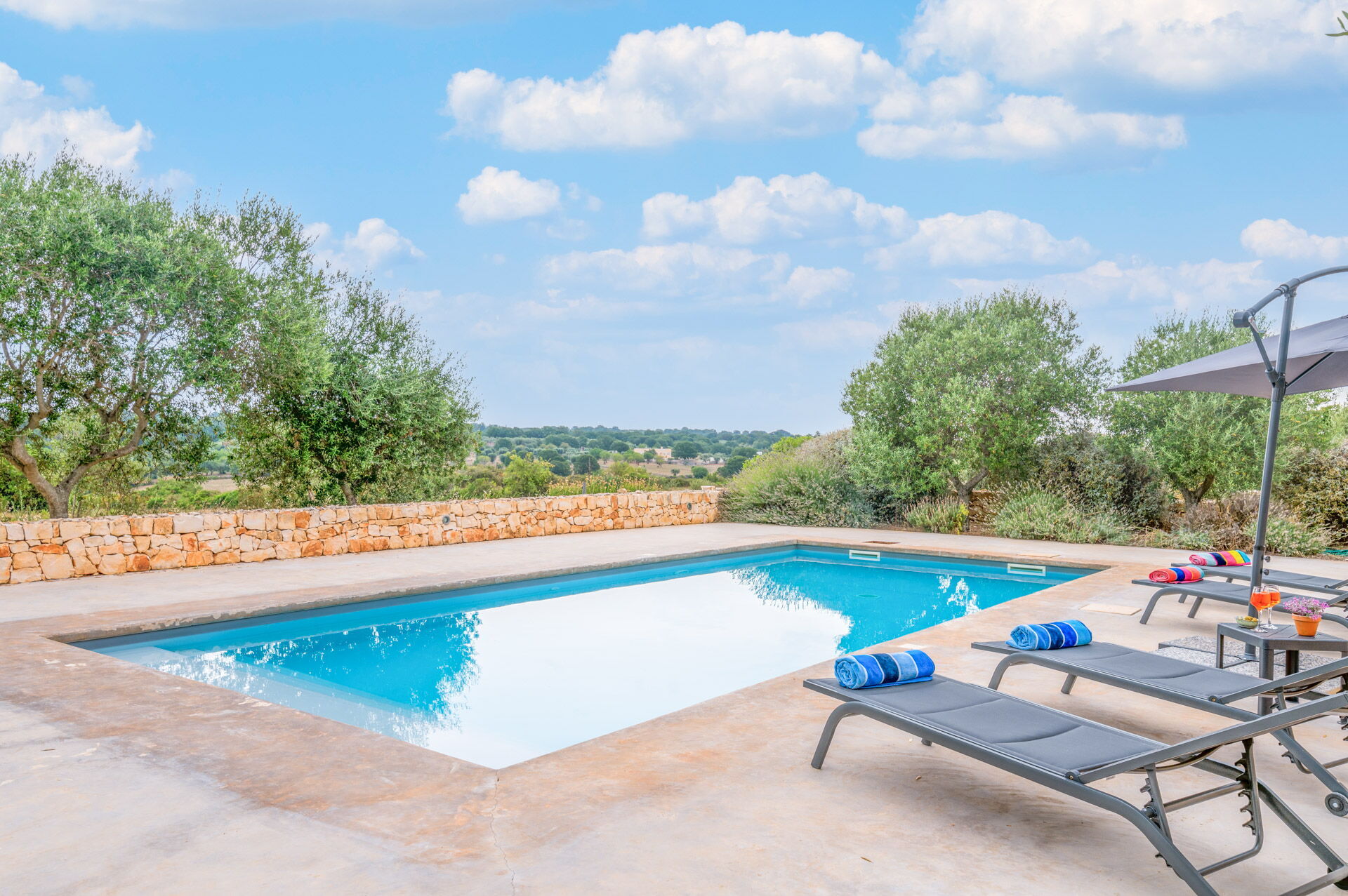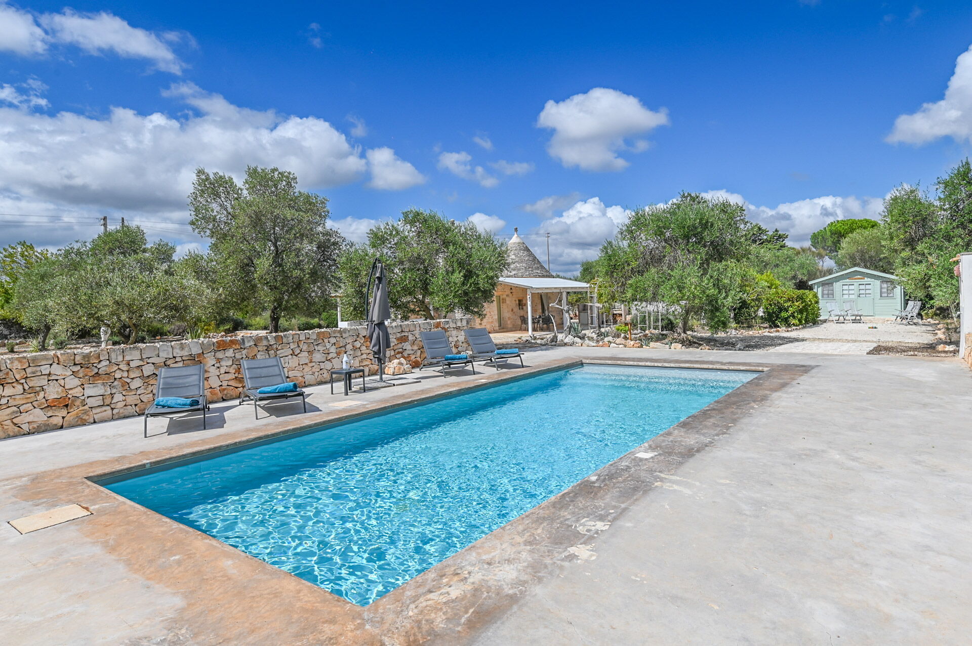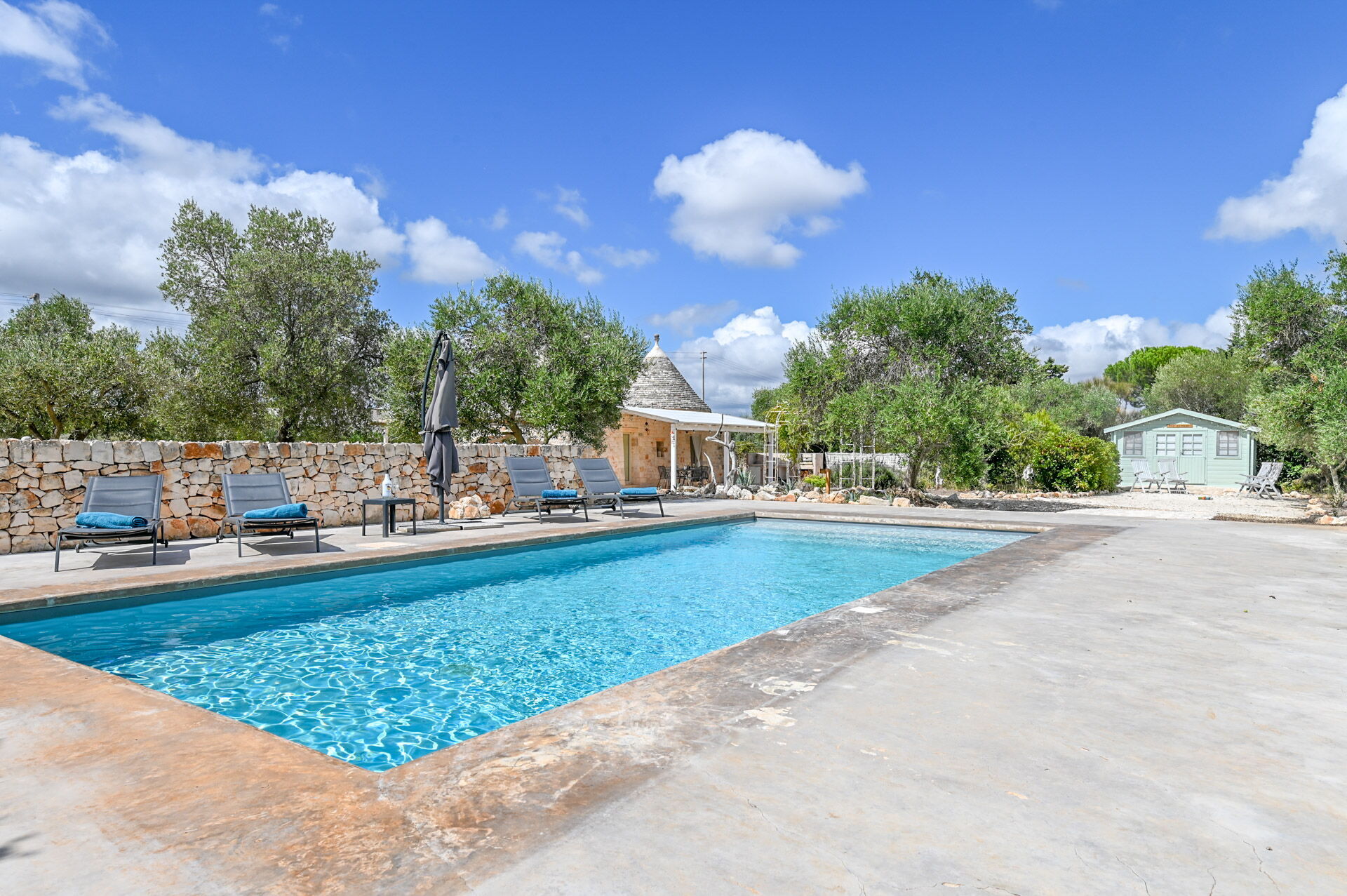 Outside there is a Mediterranean scrub garden with olive trees that frame the skimmer pool measuring 10x4x1.50 m for the exclusive use of guests. Around the guests' disposal, there are four sun loungers.