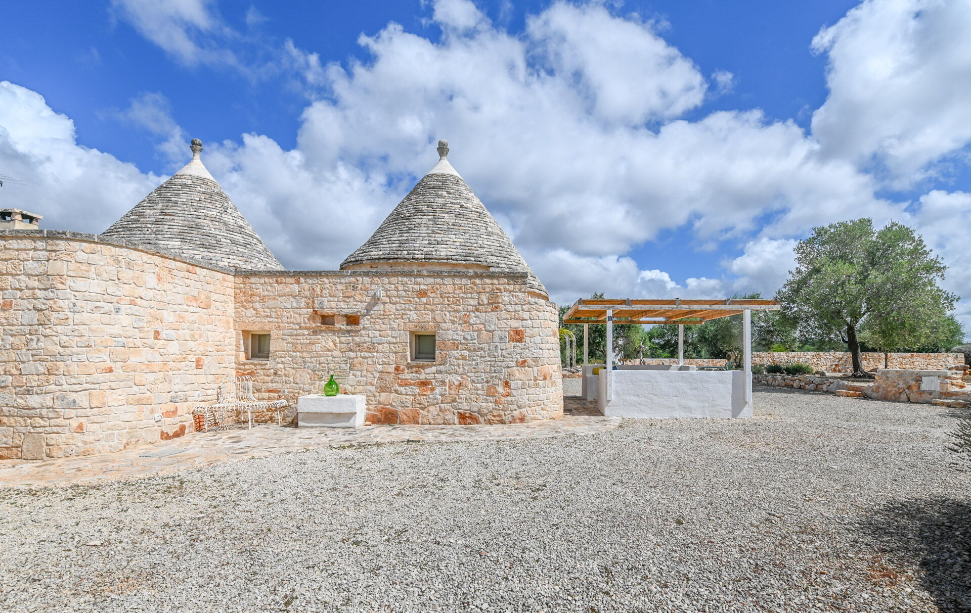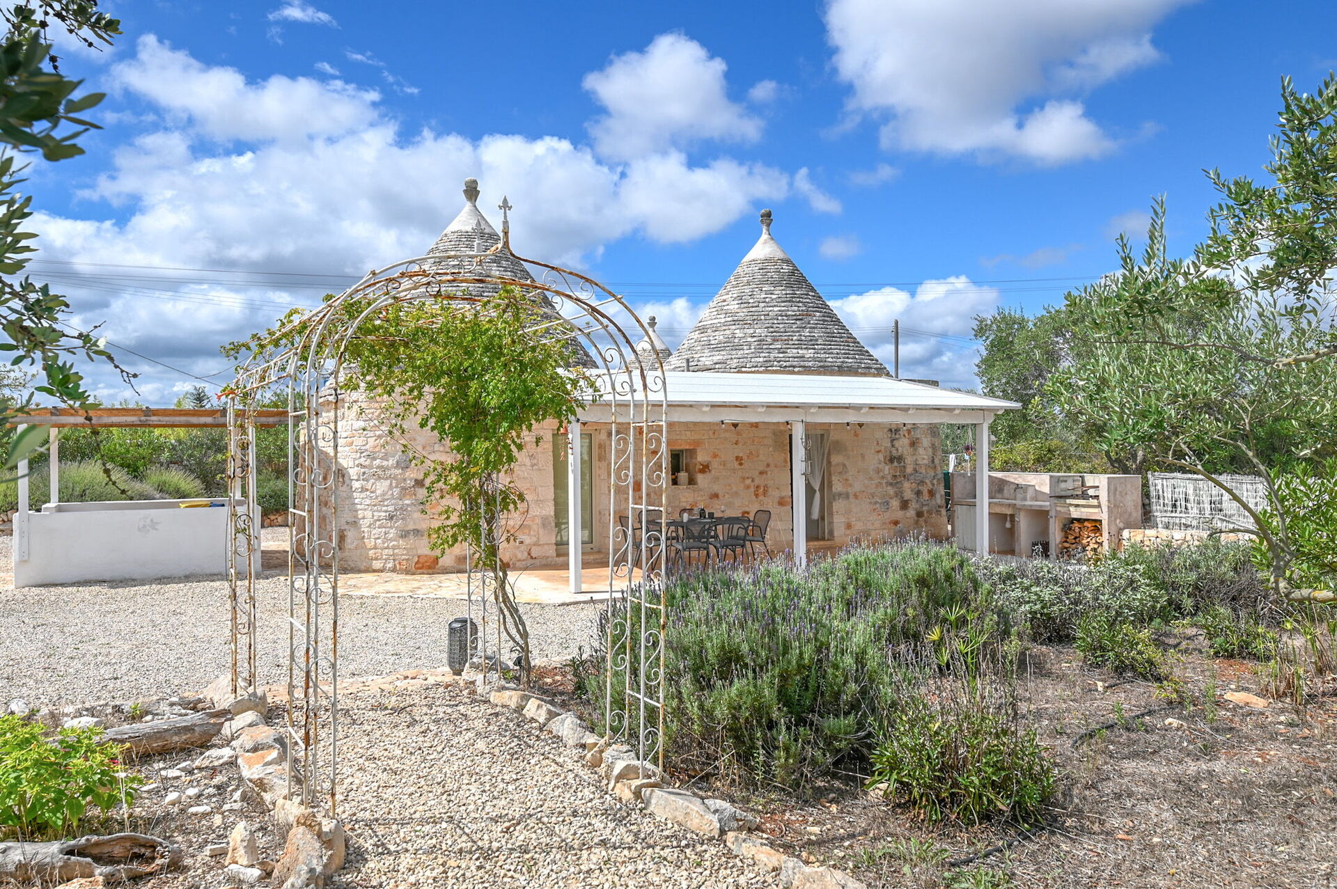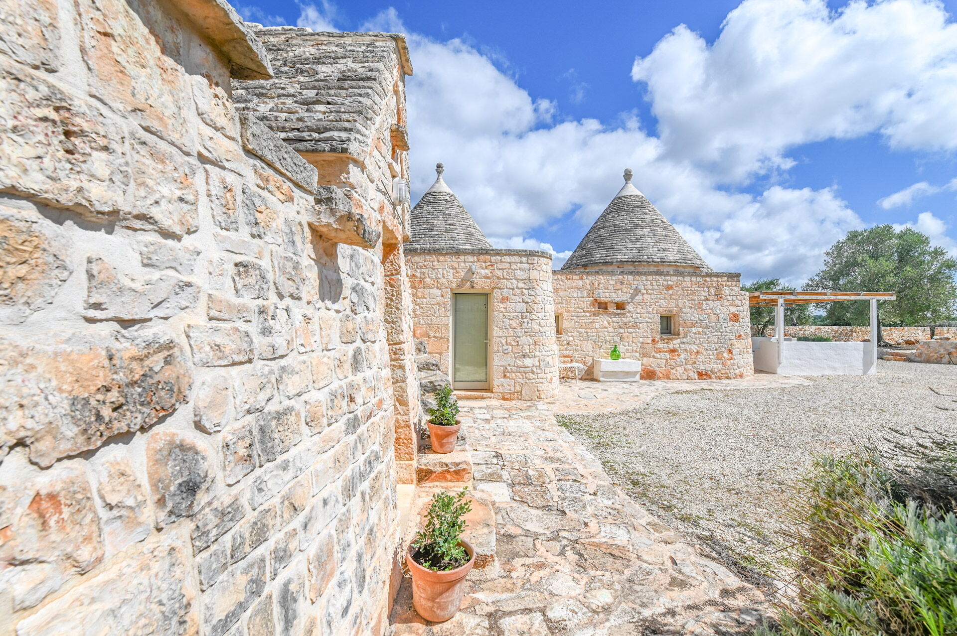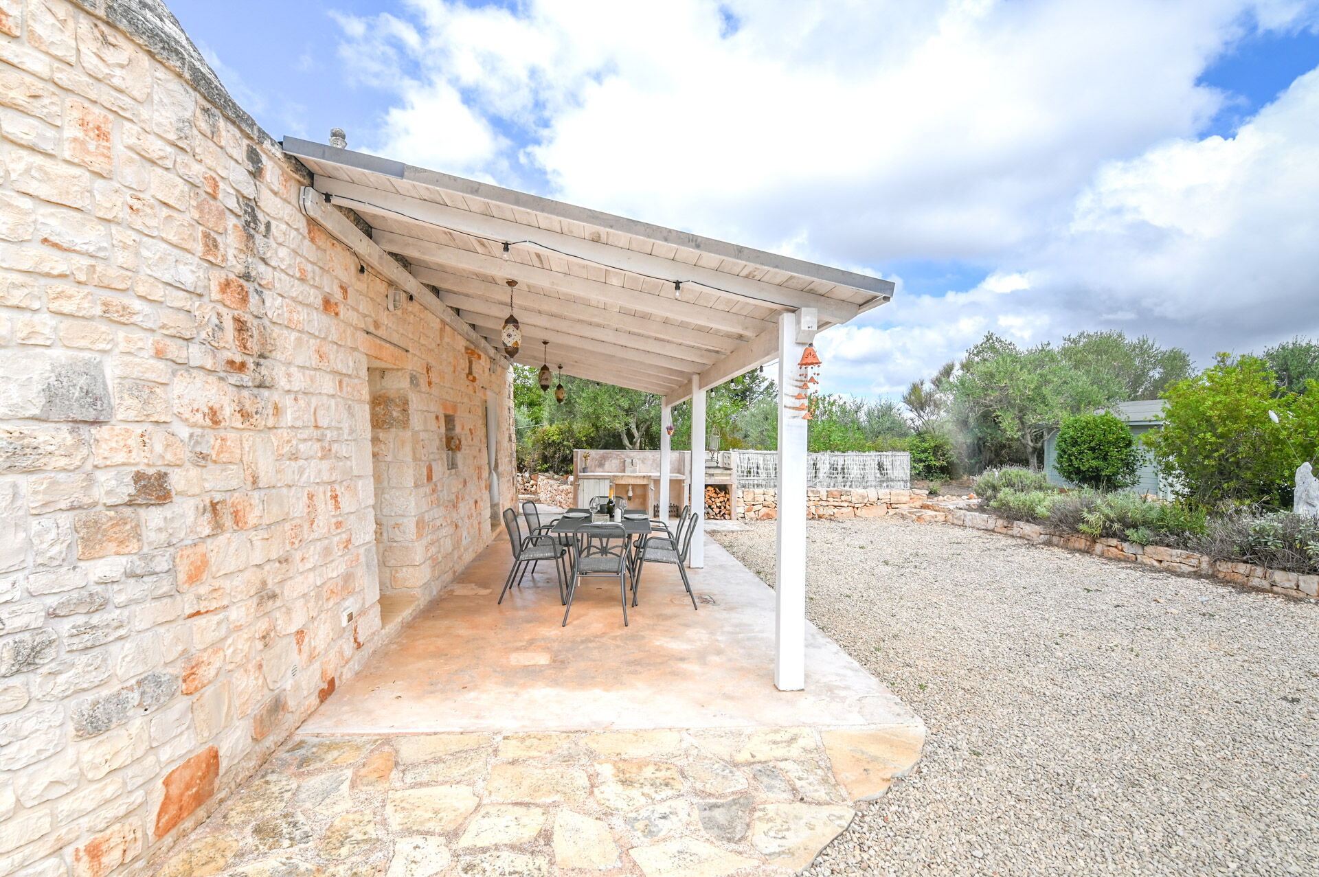 The access by car to the Trullo is via the electric. The property is fancy with authentic Apulian stone walls.