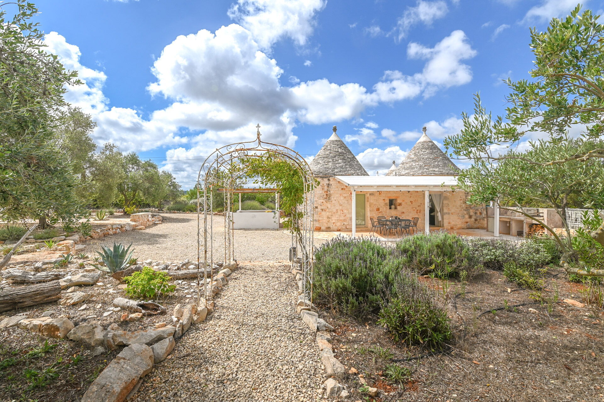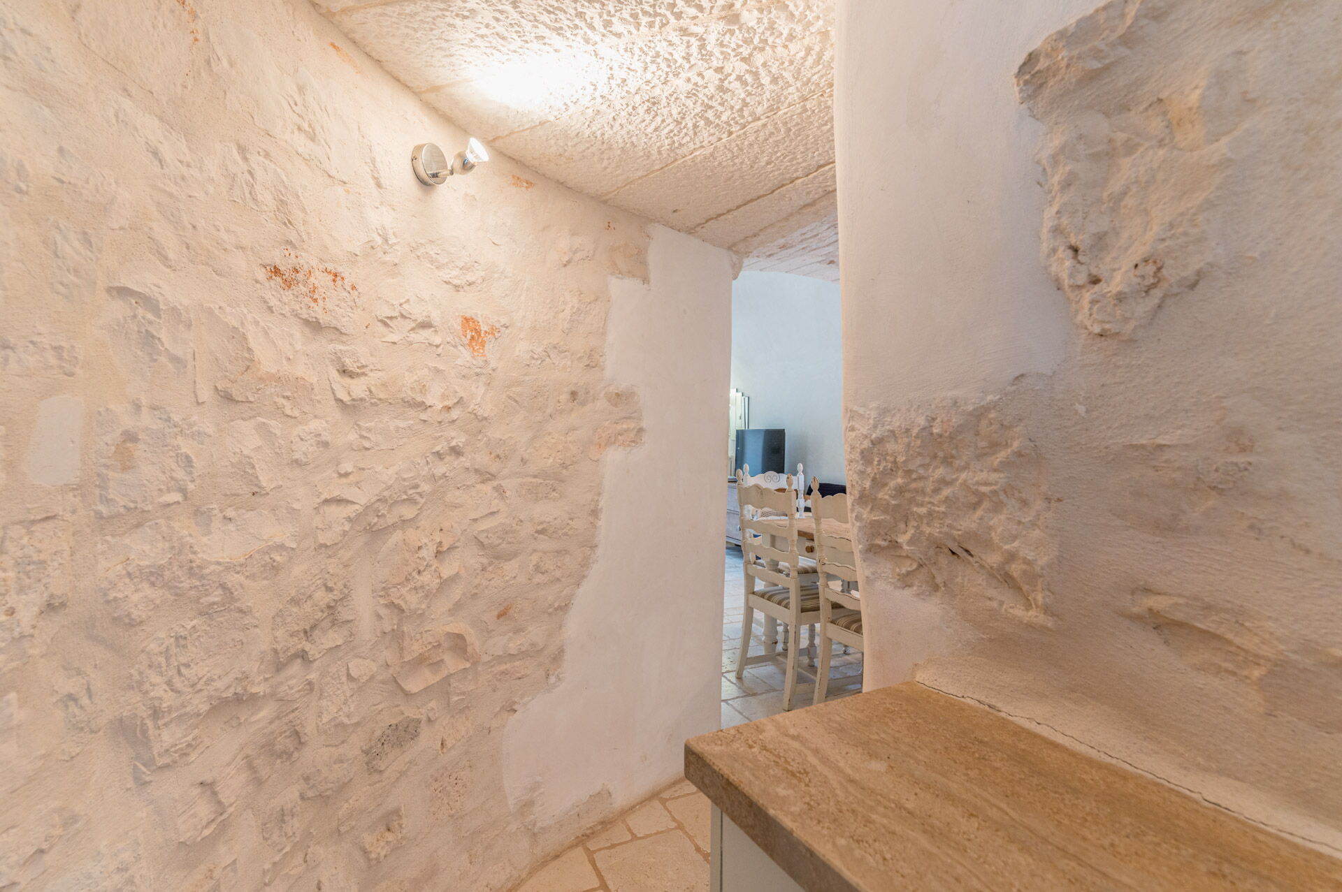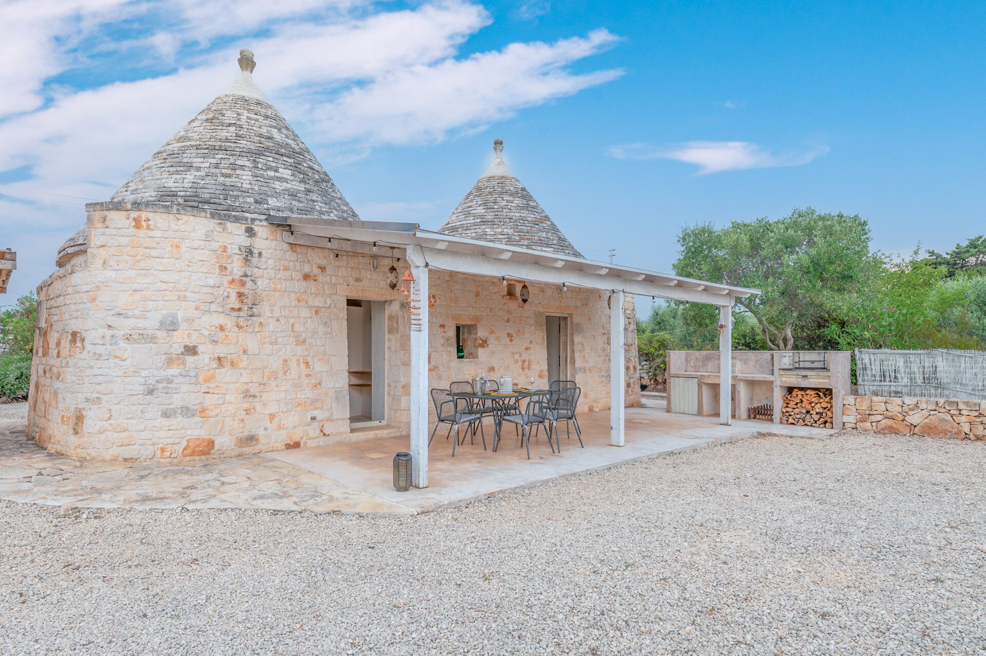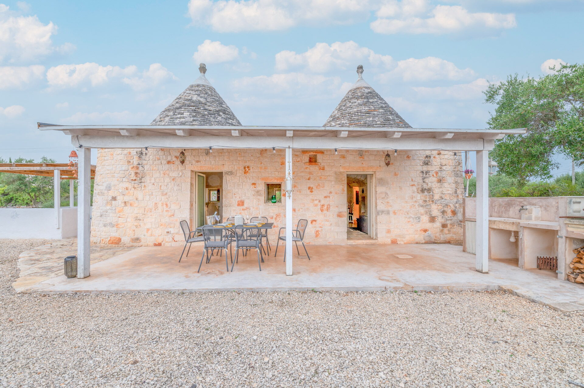 The access by car to the Trullo is via the electric. The property is fancy with authentic Apulian stone walls.