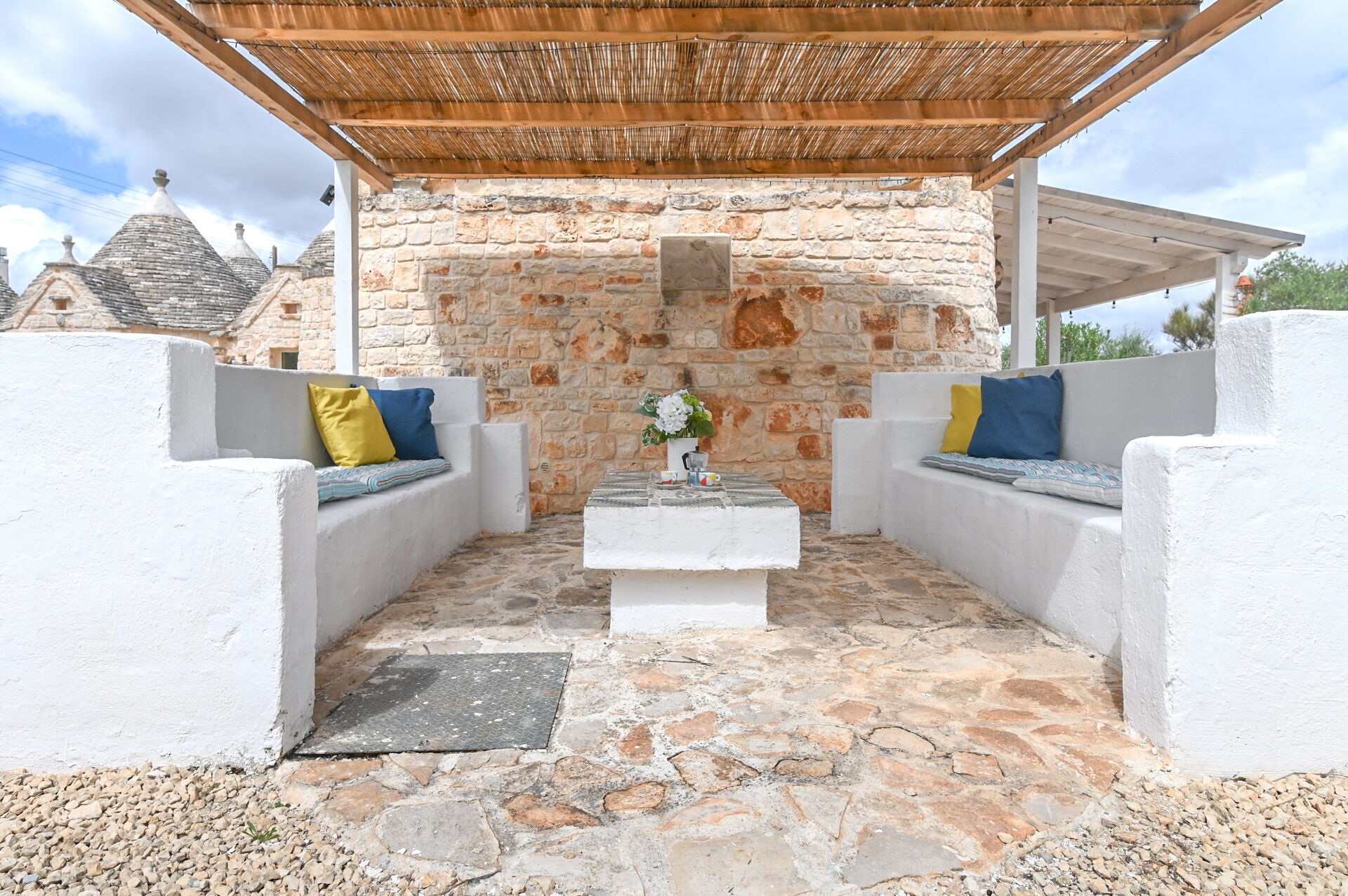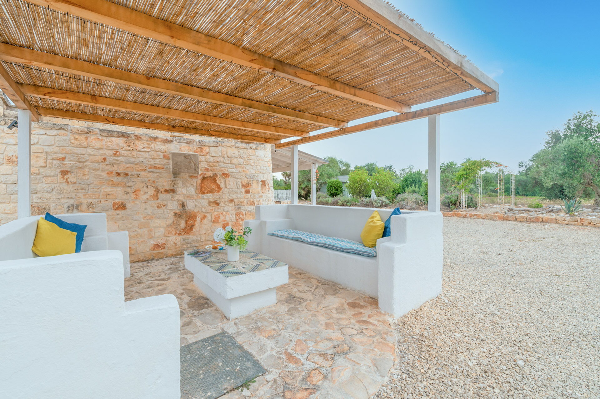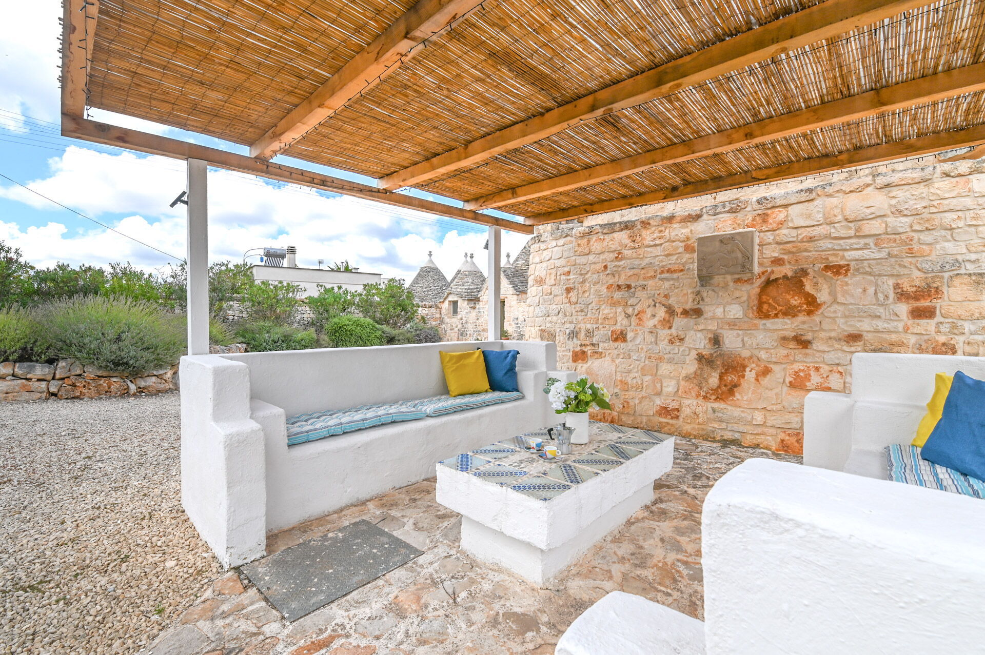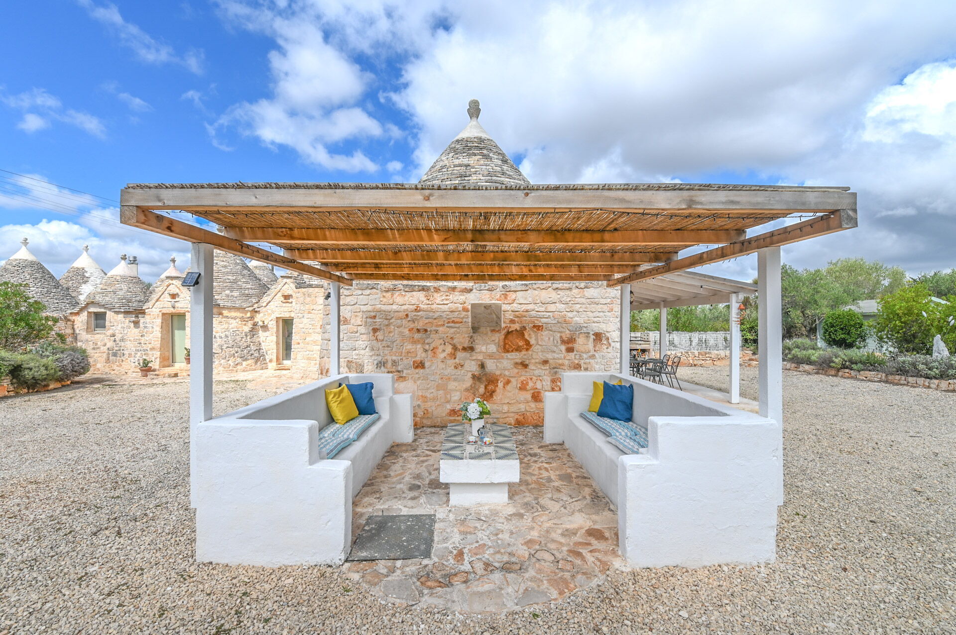 The access by car to the Trullo is via the electric. The property is fancy with authentic Apulian stone walls.