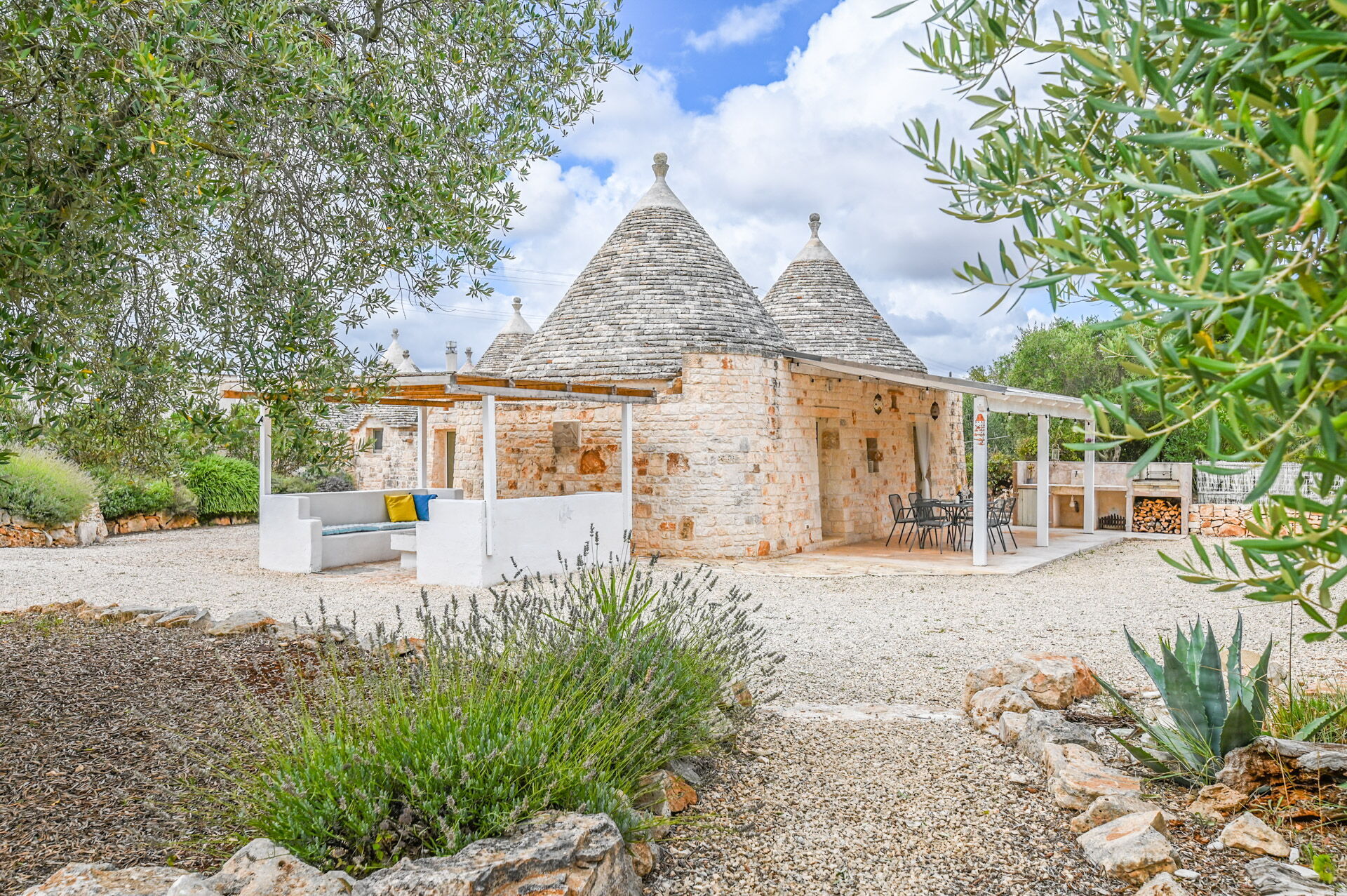 Trullo Ulivo is a villa for rent with a swimming pool consisting of a Trullo with seven cones entirely made of expertly restored local stone. The trulli are rural houses, typical of the Apulian tradition, perfect for experiencing an authentic holiday and reliving the local past.