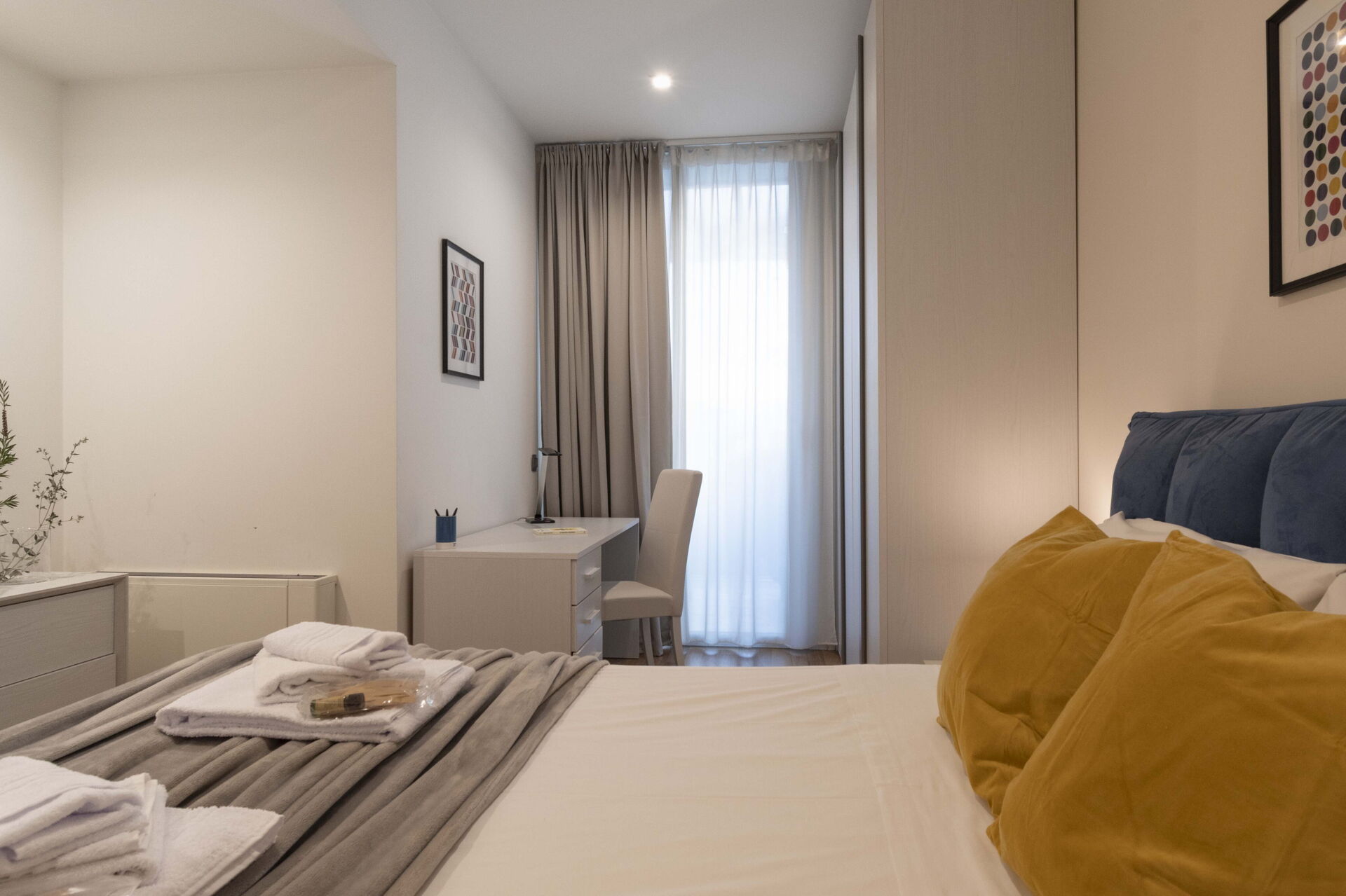 Habitación: cama doble, WIFI internet, aire acondicionado, sillón, escritorio, acceso a la terraza.